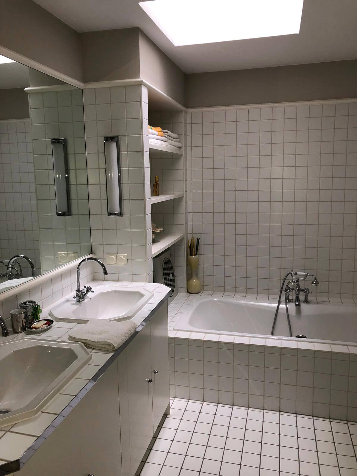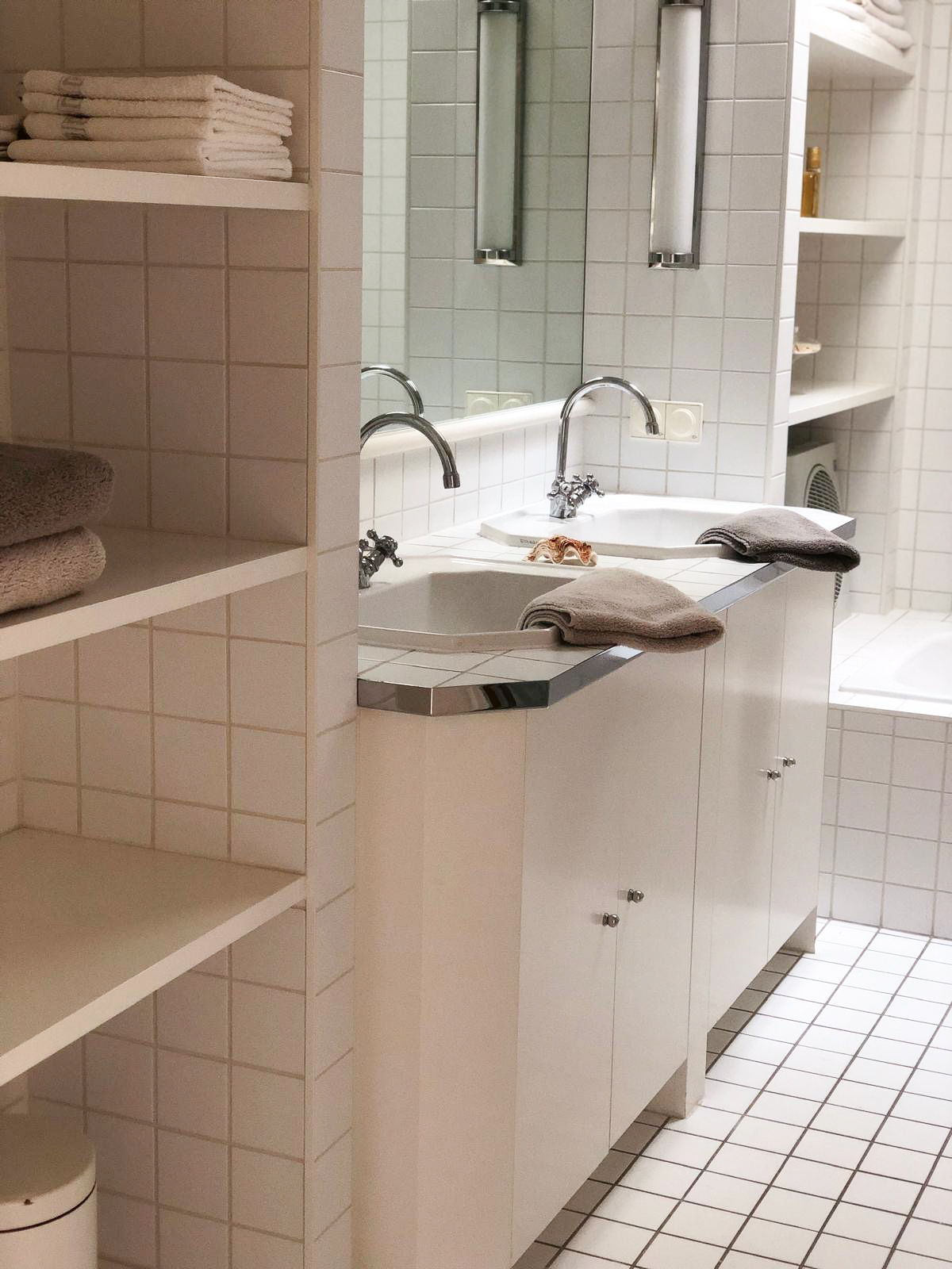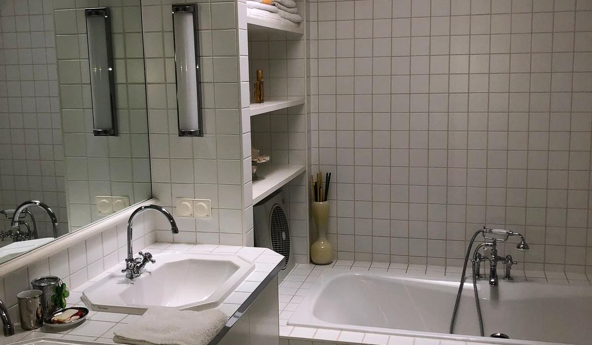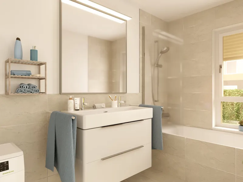 Der großzügige Vorraum sorgt für klare Strukturen beim Betreten der Wohnung und bietet ausreichend Platz für Garderobe und Stauraum. Das moderne Badezimmer ist mit einer Badewanne , einem Doppelwaschbecken sowie einem separaten WC ausgestattet – durchdacht und hochwertig gestaltet.