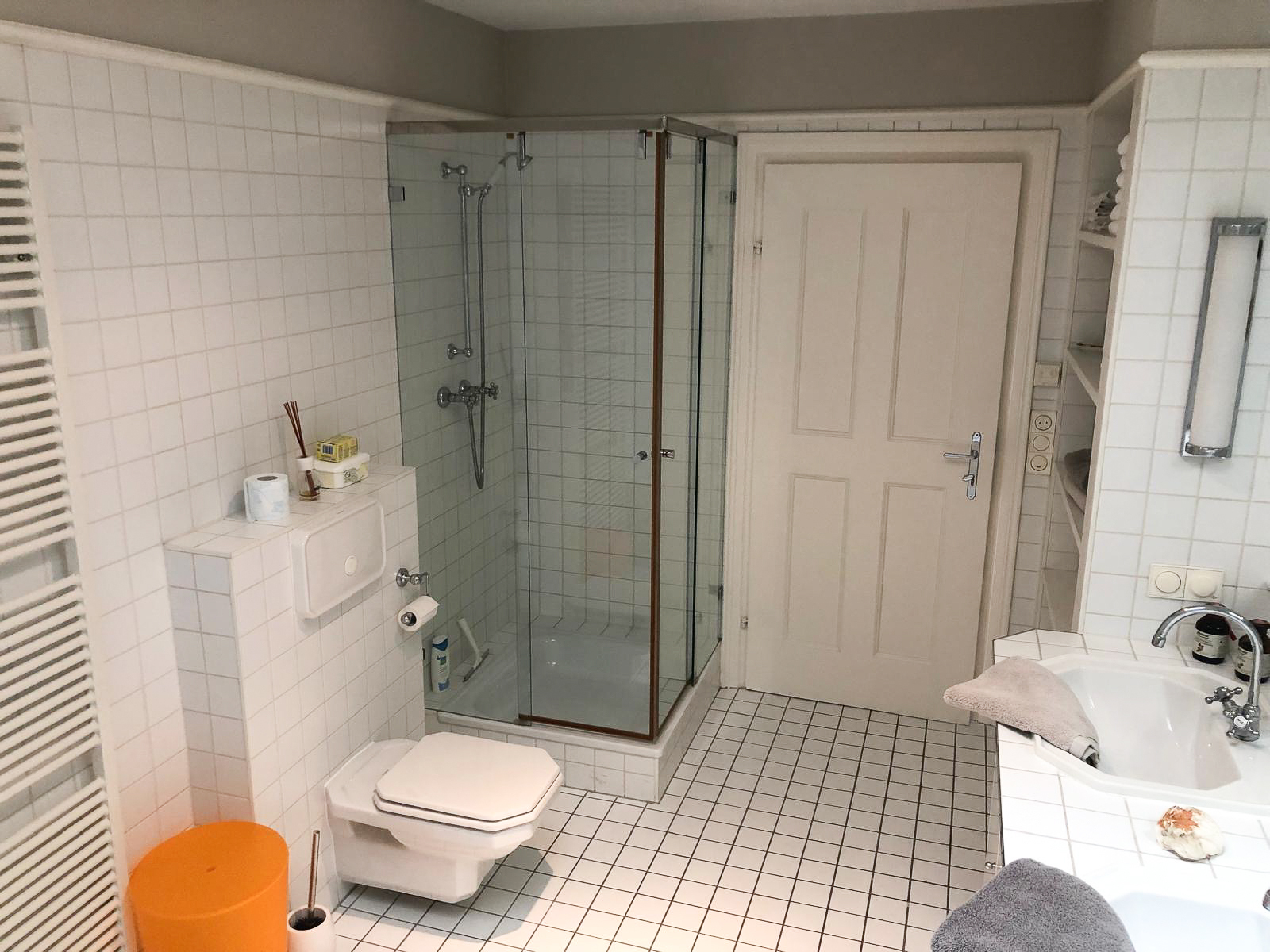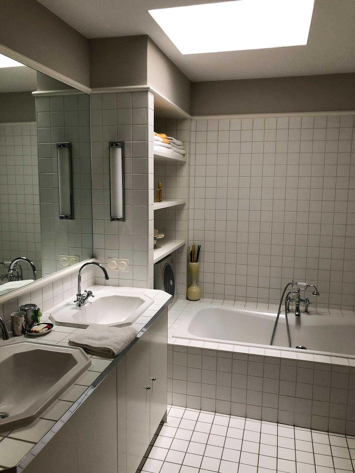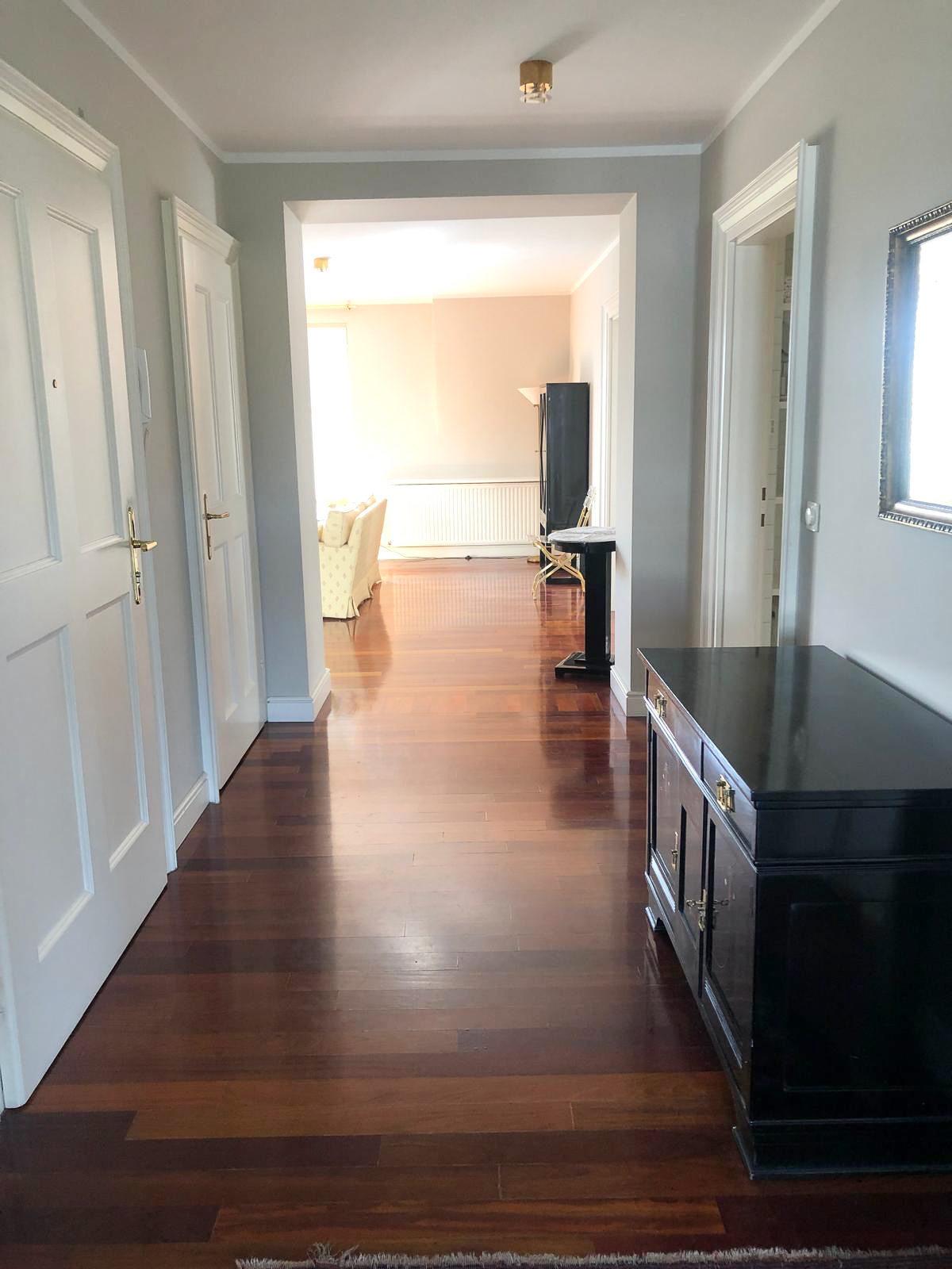 Der großzügige Vorraum sorgt für klare Strukturen beim Betreten der Wohnung und bietet ausreichend Platz für Garderobe und Stauraum. Das moderne Badezimmer ist mit einer Badewanne , einem Doppelwaschbecken sowie einem separaten WC ausgestattet – durchdacht und hochwertig gestaltet.