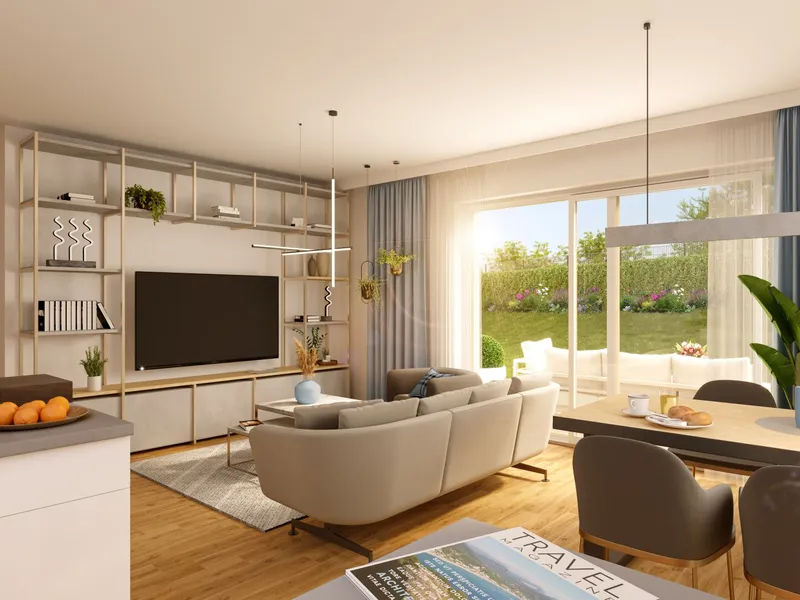 Die Wohnung verfügt über drei großzügige Zimmer , die flexibel als Wohn-, Schlaf- und Arbeitsbereich nutzbar sind. Besonders attraktiv ist der offene Wohn-/ Essbereich , der sich perfekt in den Alltag integrieren lässt. Die gut ausgestattete Einbauküche mit modernen Geräten bietet ausreichend Platz zum Kochen und Genießen.