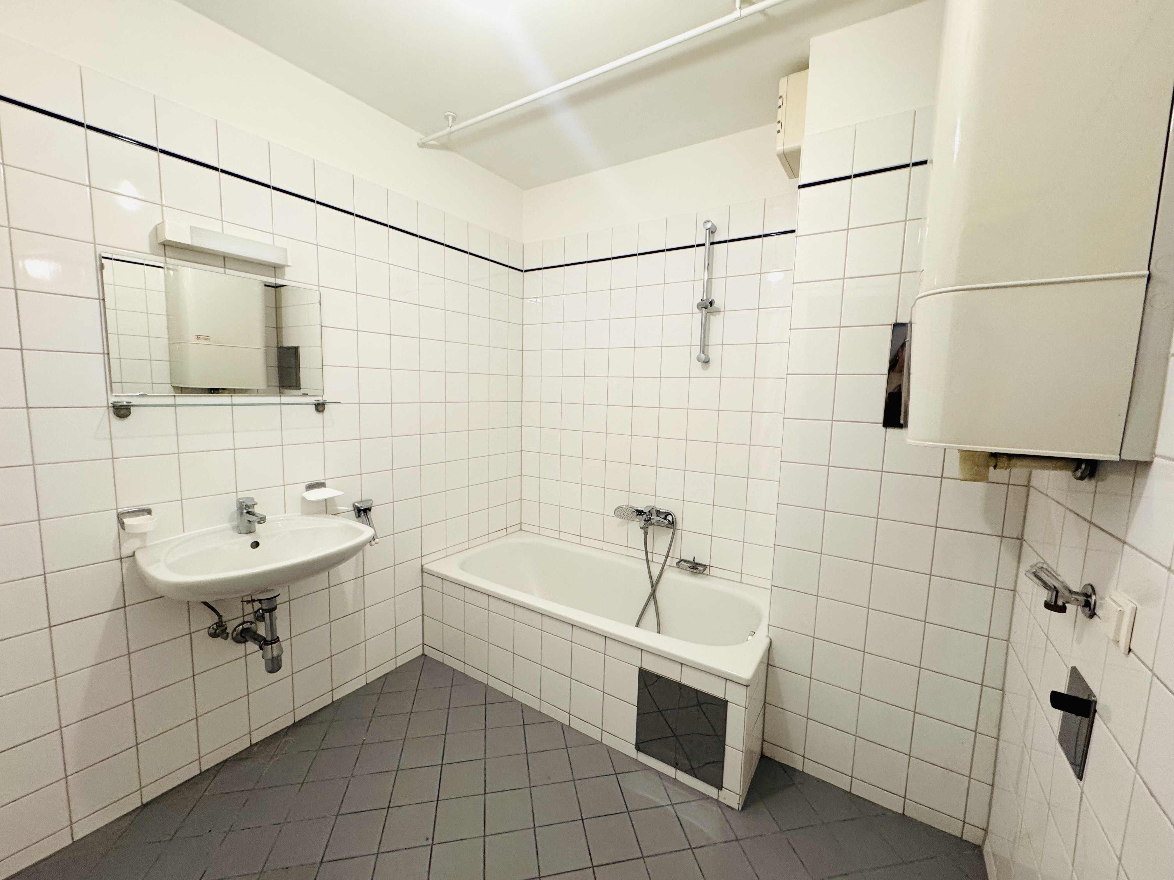 Vollständig ausgestattet: Bad mit komplett verfliesten Oberflächen, separates WC, Badewanne