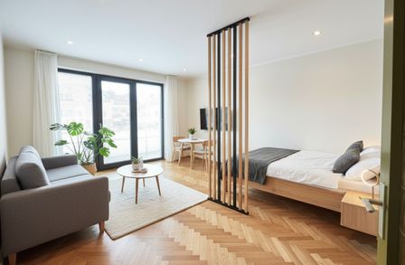 Die Wohnung bietet eine Fläche von ca. 42,49 m2 zzgl. einer ca. 8,50 m2 Loggia. Die Liegenschaft befindet sich im Erdgeschoss und besticht mit 1 großzügigen Zimmer, einem Vorraum, separatem WC, einer separaten Küche sowie einem Badezimmer. Die großen Fenster sorgen für ein helles Wohnambiente.
