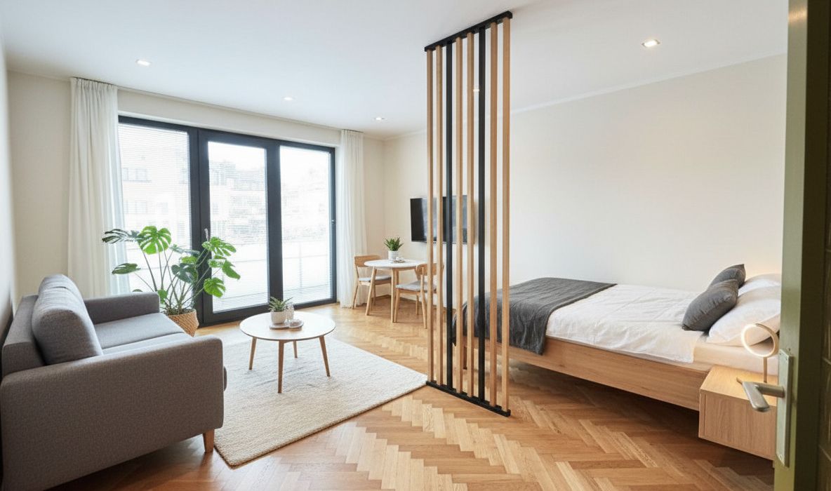Die dargestellten möblierten Räume sind KI-generierte Visualisierungen und dienen lediglich der Veranschaulichung möglicher Einrichtungskonzepte . Die Möblierung und Sanierung ist nicht im Kaufpreis enthalten .