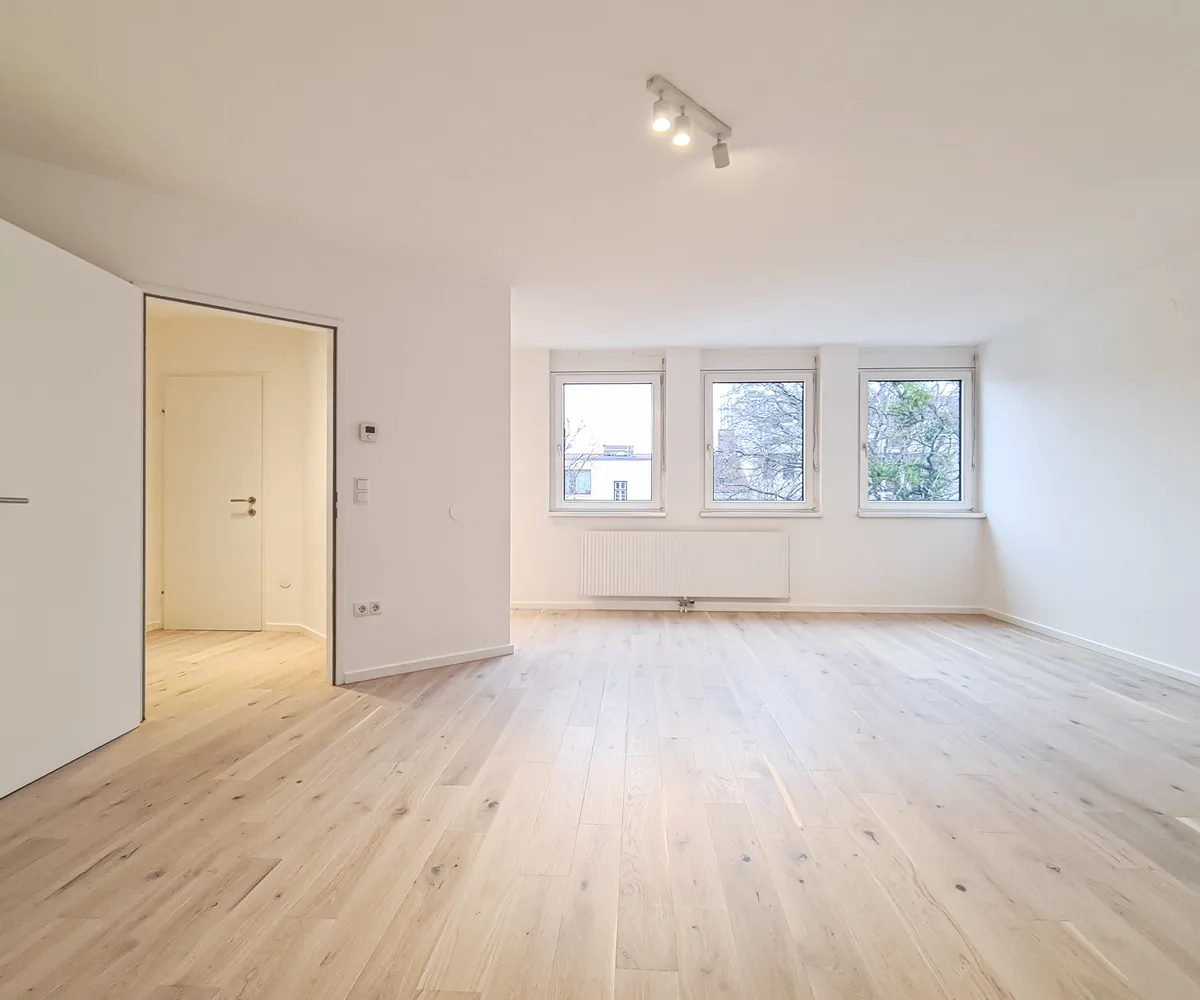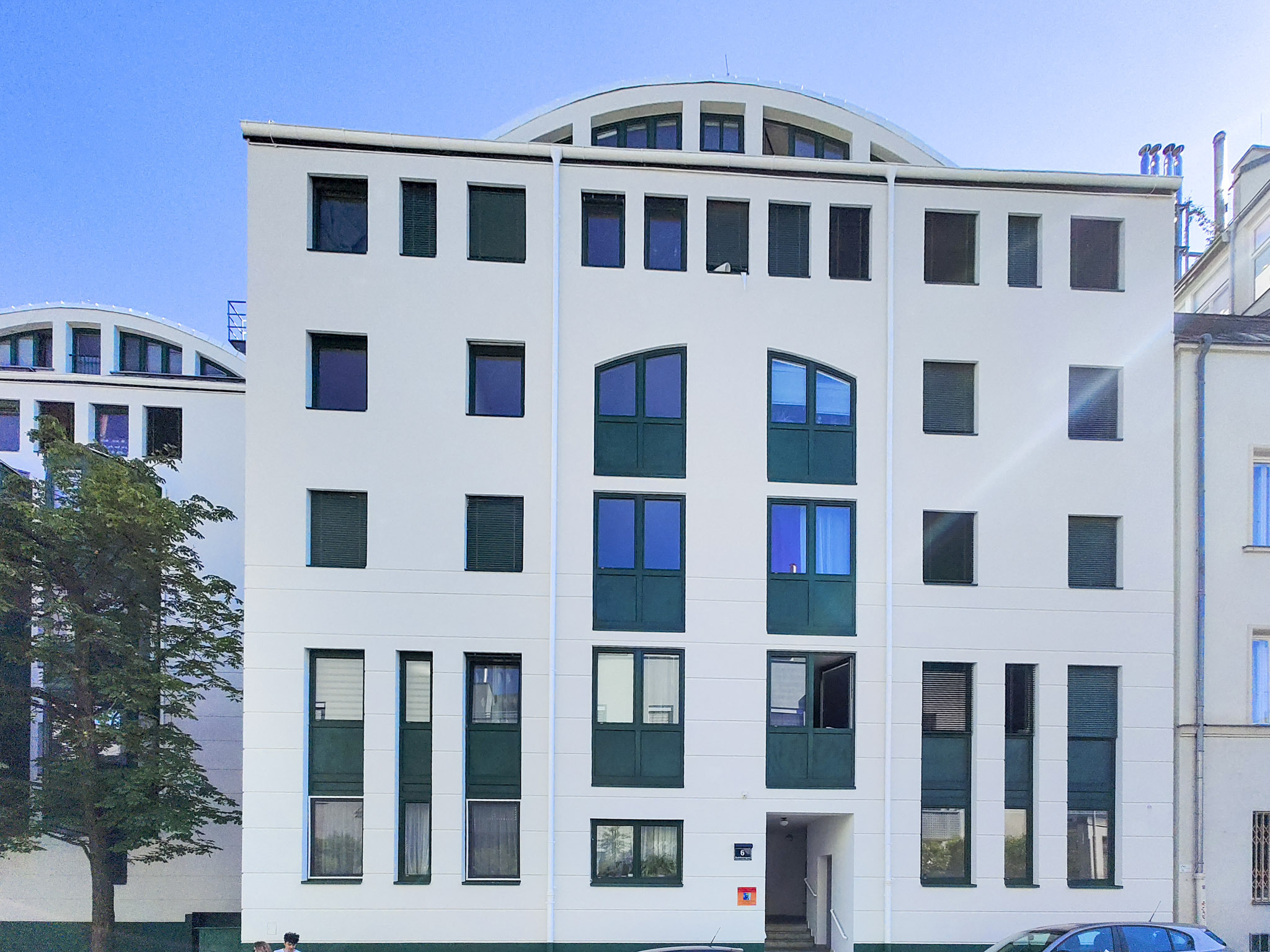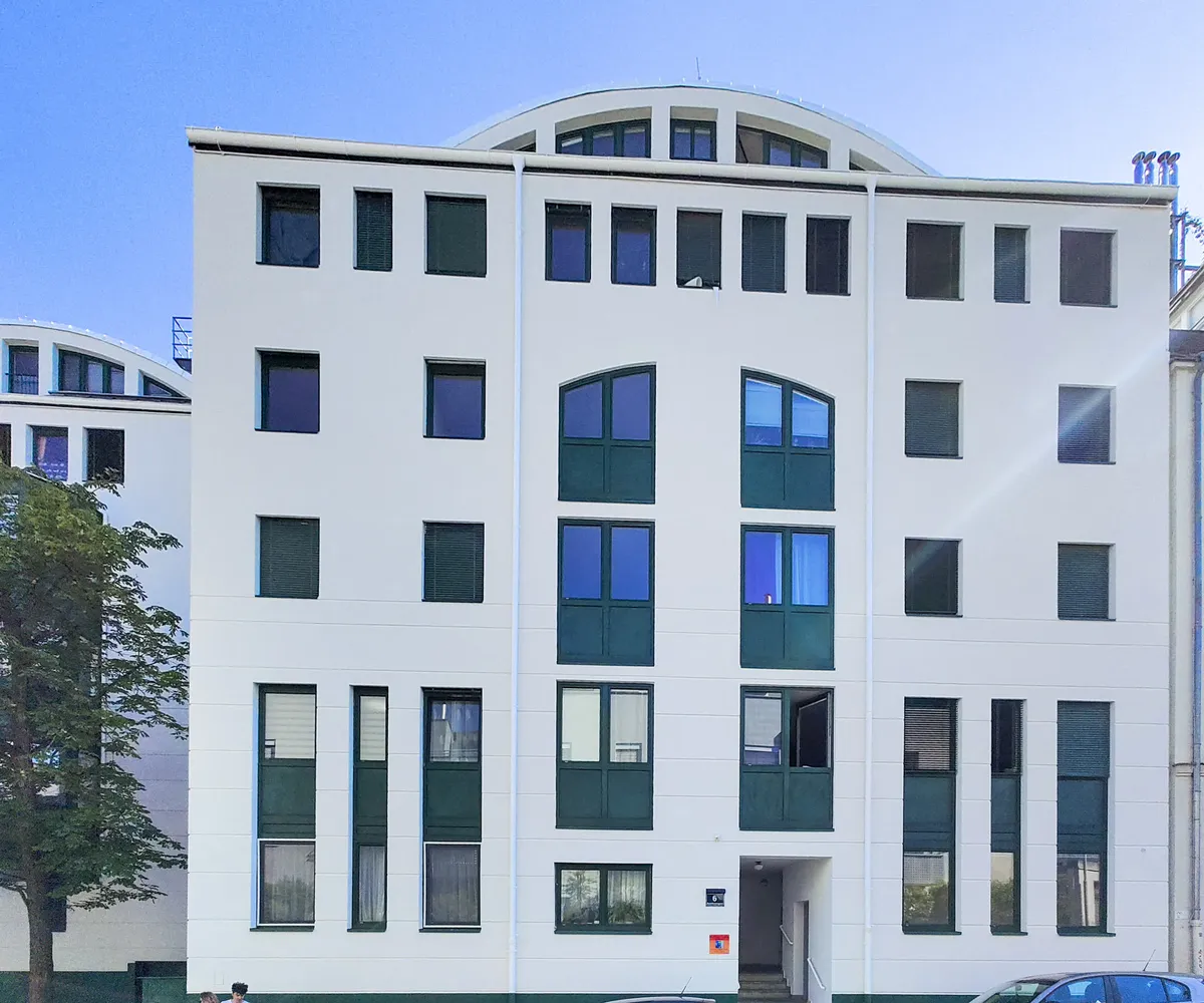 Die moderne Architektur des Gebäudes harmoniert perfekt mit der urbanen Umgebung und bietet mit durchdachten Grundrissen und hochwertiger Ausstattung ein stimmiges Wohnkonzept.