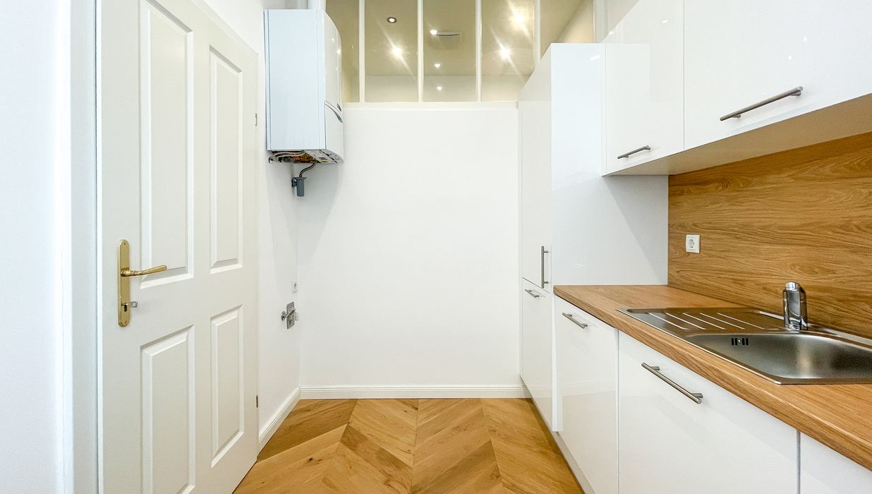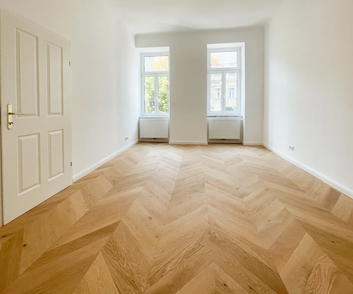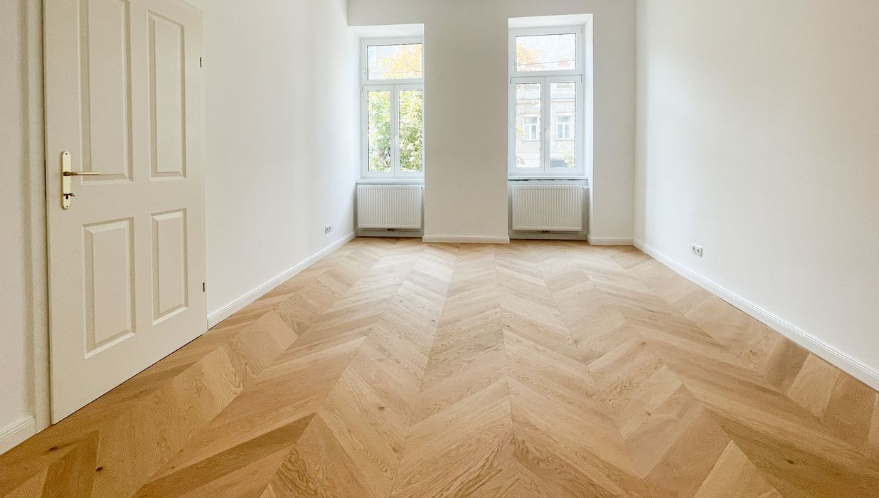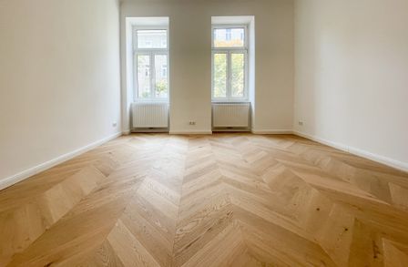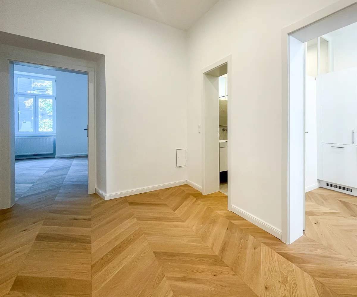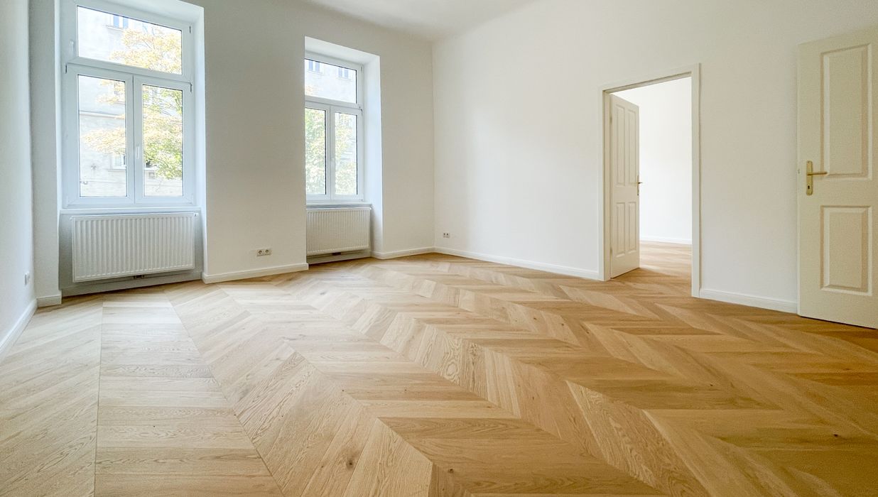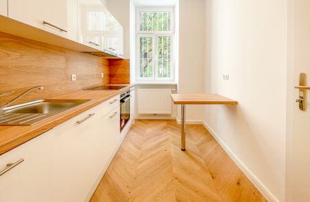 Derzeit entsteht eine stilvoll sanierte 2-Zimmer-Altbauwohnung mit separat neu ausgestatteter Küche inklusive Essgelegenheit. Hochwertiger Fischgrät-Parkettboden unterstreicht die gelungene Verbindung aus klassischer Eleganz und modernem Wohnkomfort.