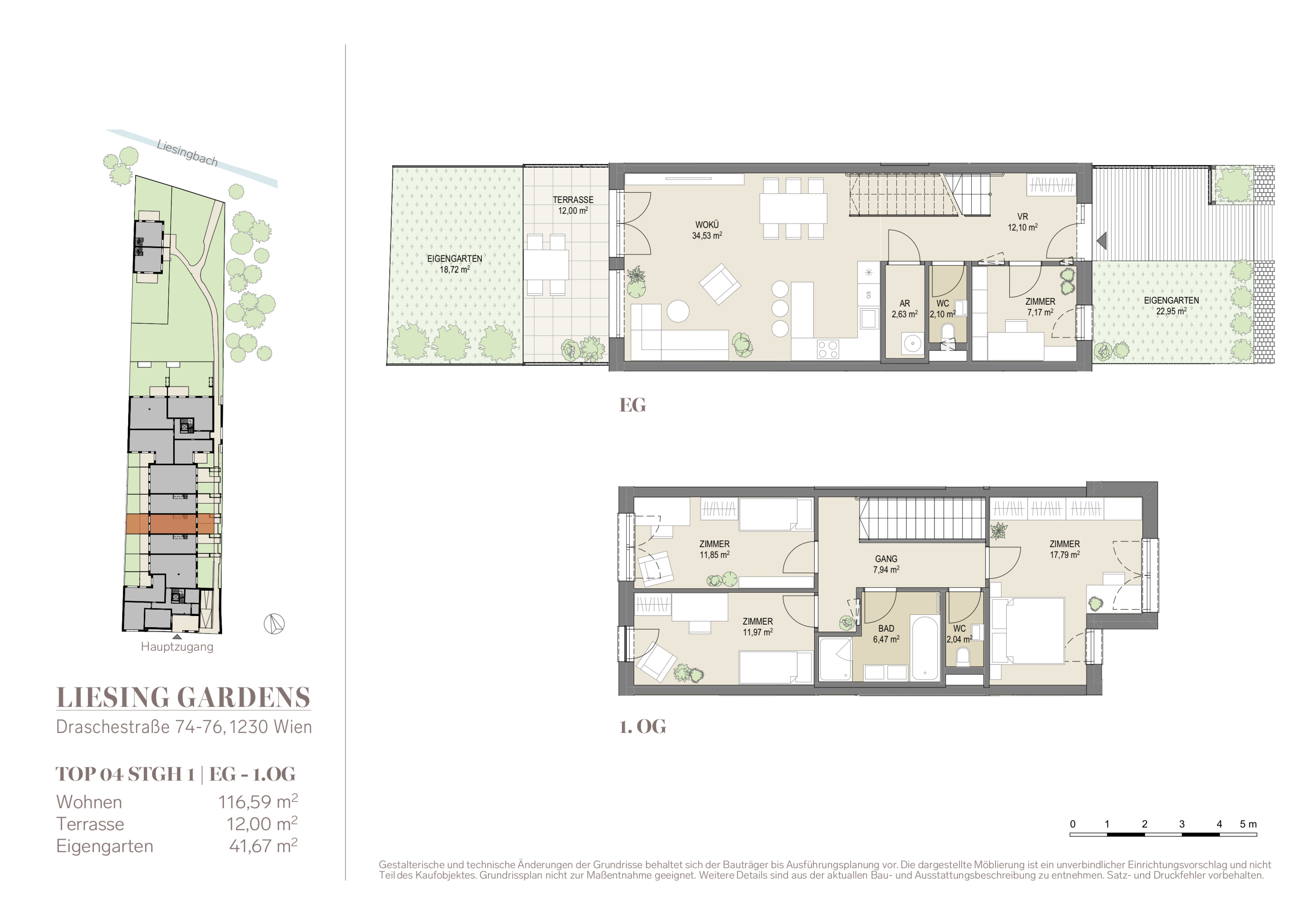 Die Lage von Liesing Gardens verspricht eine perfekte Verbindung von urbanem Komfort und naturnaher Idylle. Eingebettet zwischen Atrien- und Reihenhäusern sowie den Grünanlagen entlang des Liesingbachs bietet dieses Projekt eine Oase der Ruhe und Erholung direkt vor der Haustür.