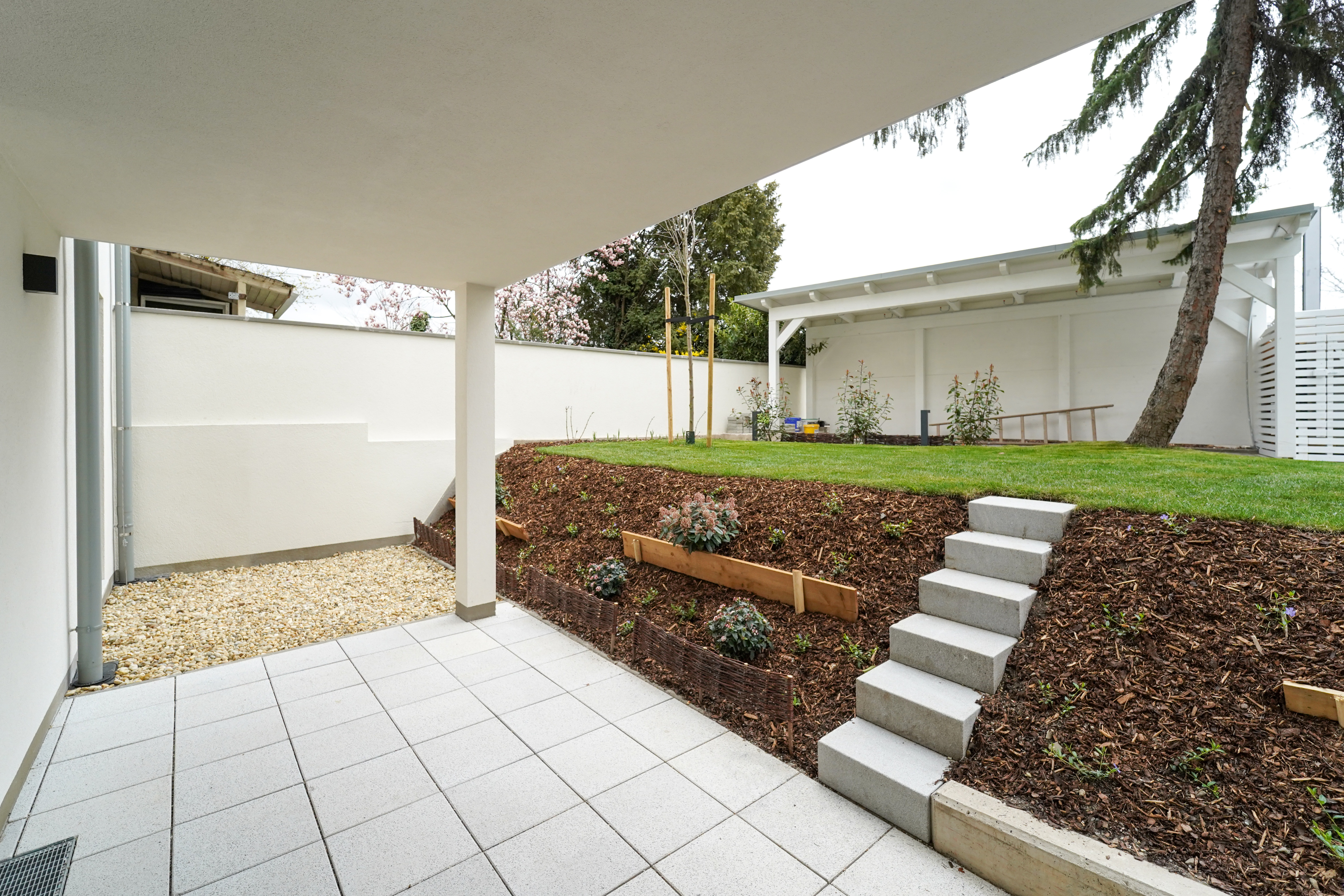 Die Beheizung und Warmwasseraufbereitung erfolgen umweltfreundlich durch ein modernes Luft- und Wasserwärmepumpensystem – eine nachhaltige Lösung für zeitgemäßes Wohnen.