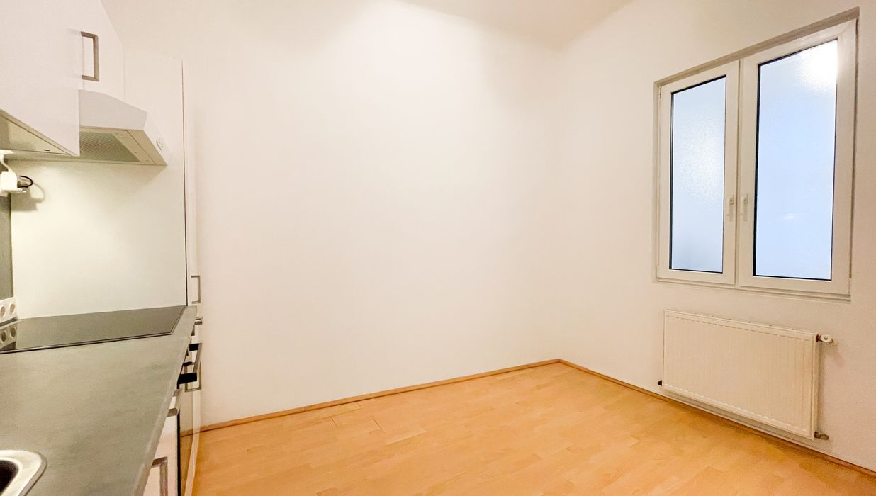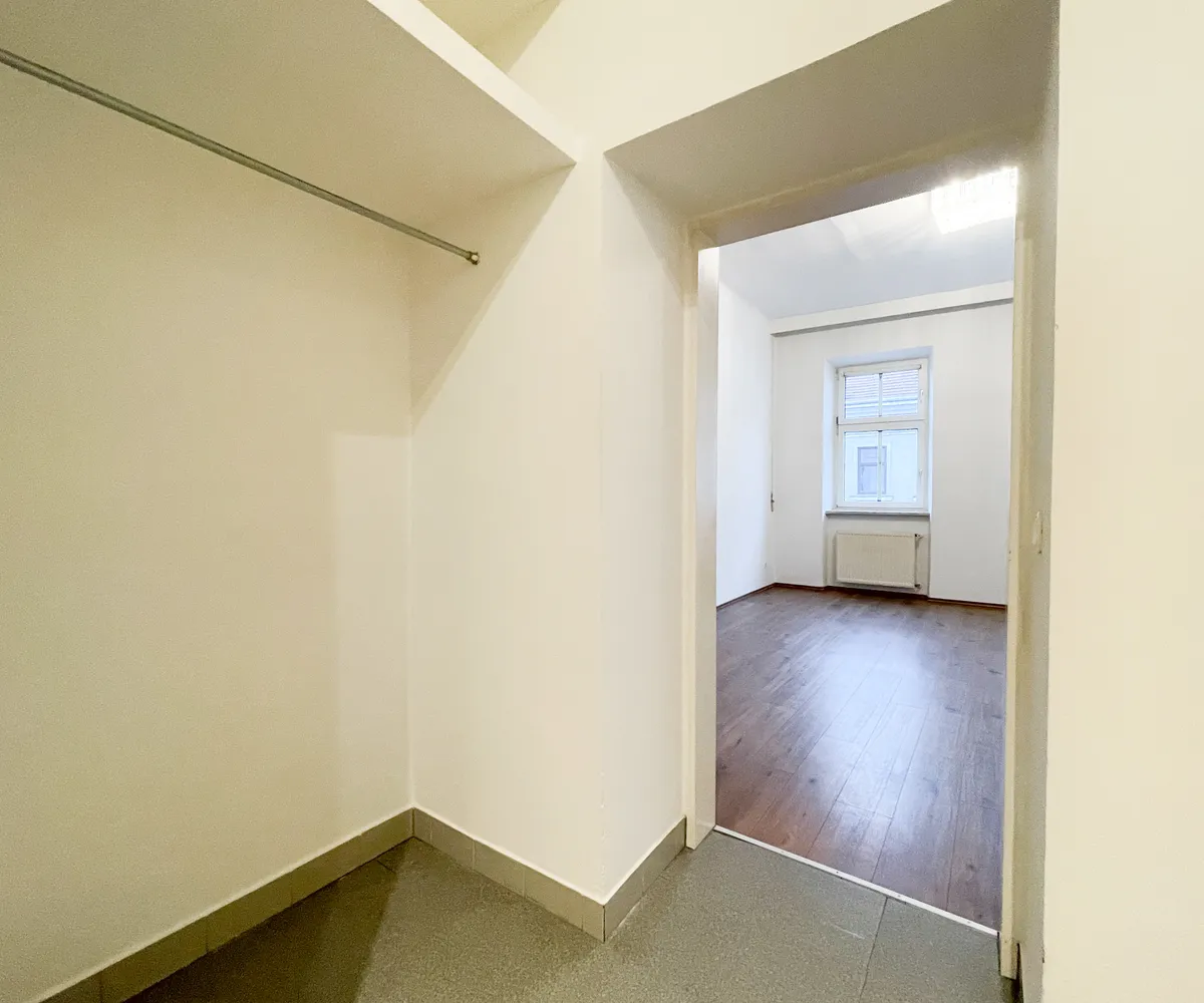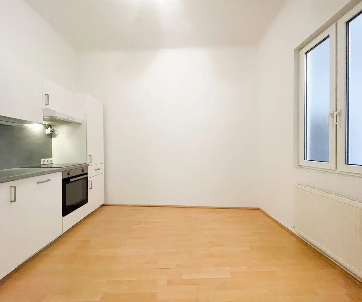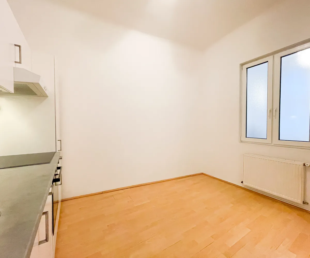 Bereits beim Betreten überzeugt der einladende Vorraum mit einer praktischen Nische, die sich ideal als Garderobe nutzen lässt. Die separate, geräumige Küche mit öffenbarem Fenster zum Gang bietet vielfältige Gestaltungsmöglichkeiten: Ob gemütlicher Essplatz oder erweiterte Küchenzeile – hier ist ausreichend Raum für individuelle Wohnideen.