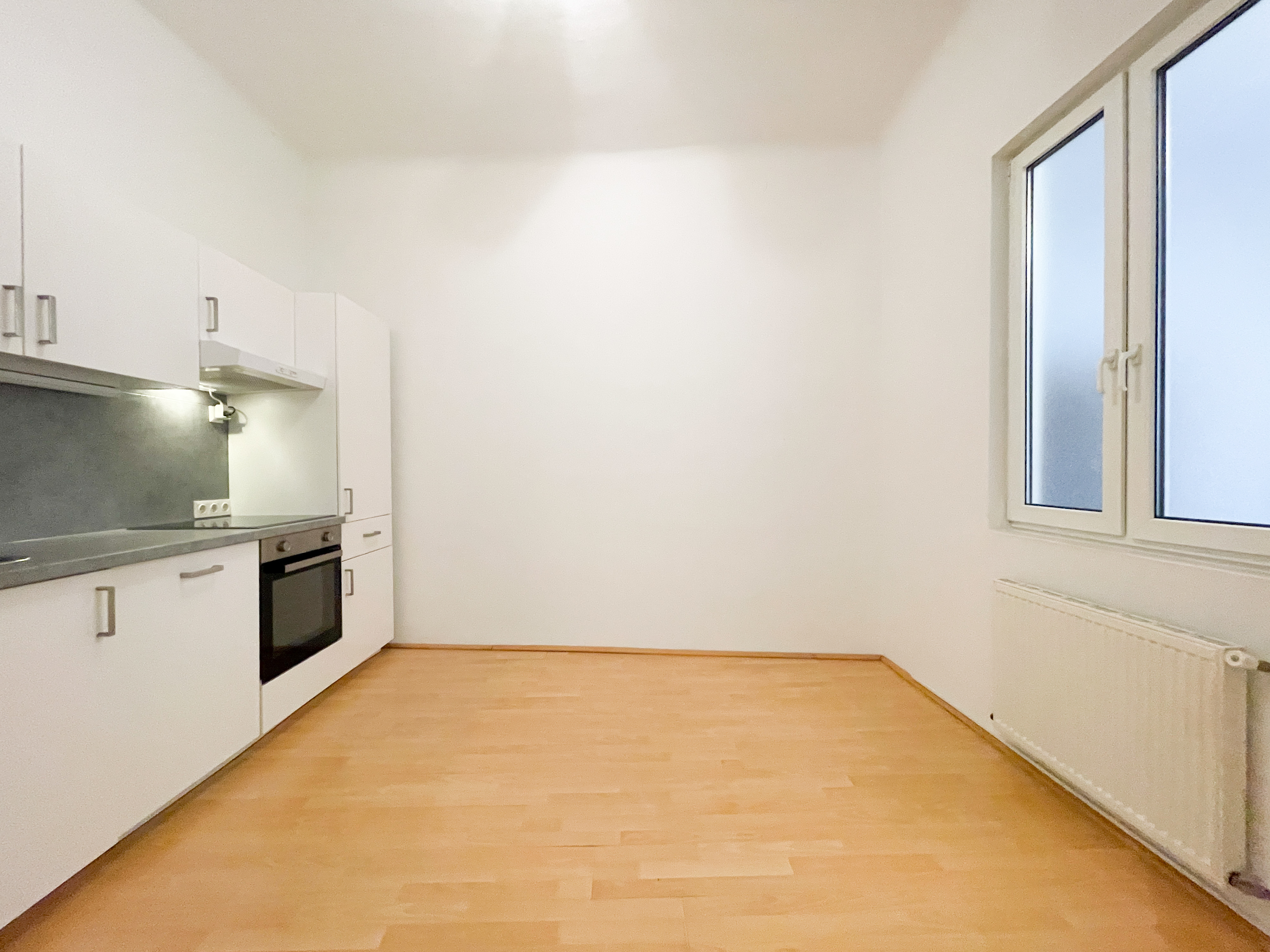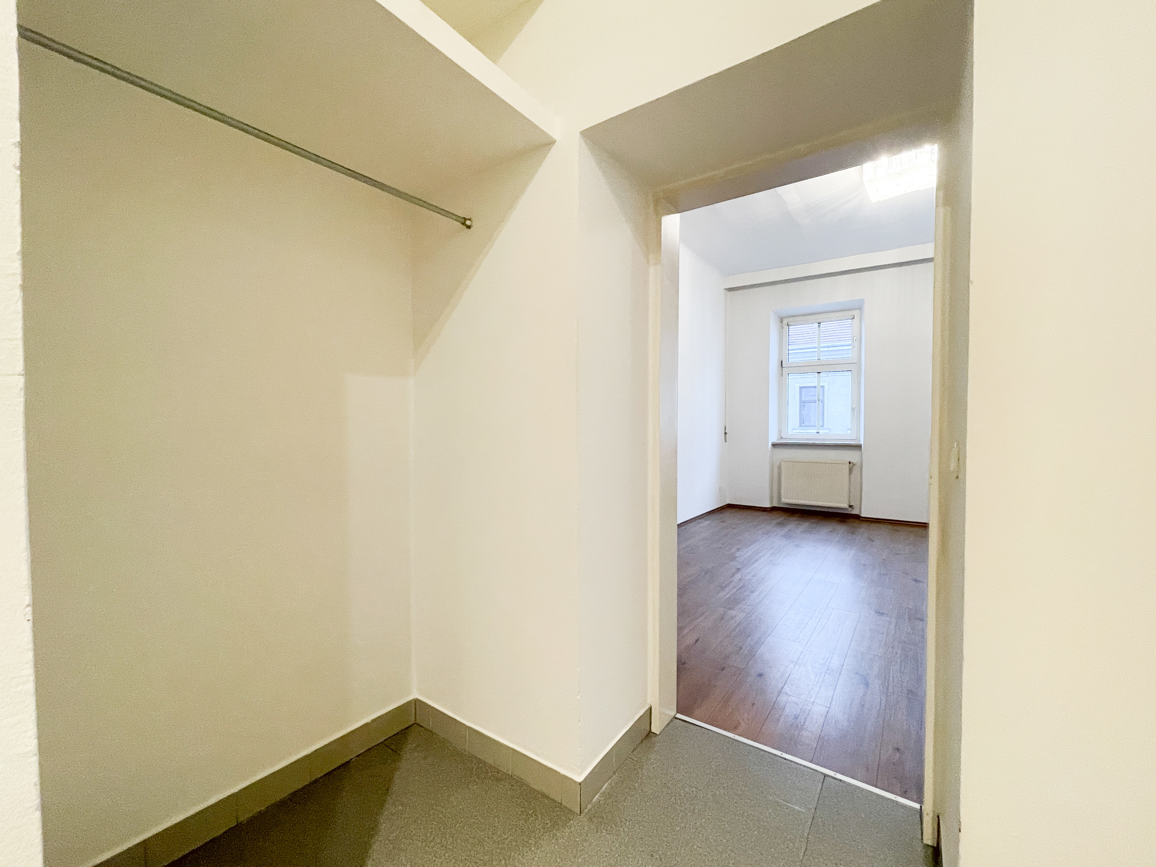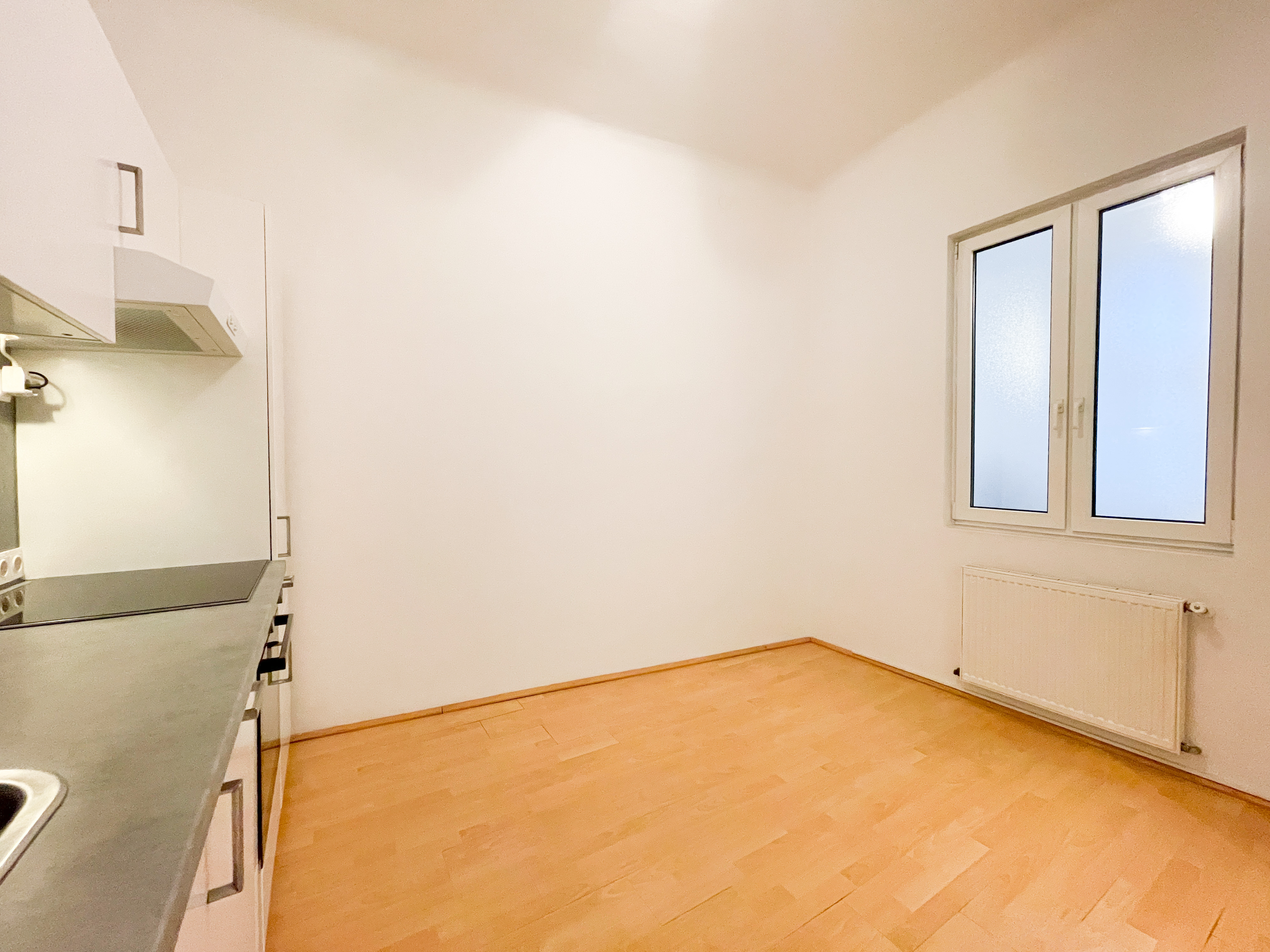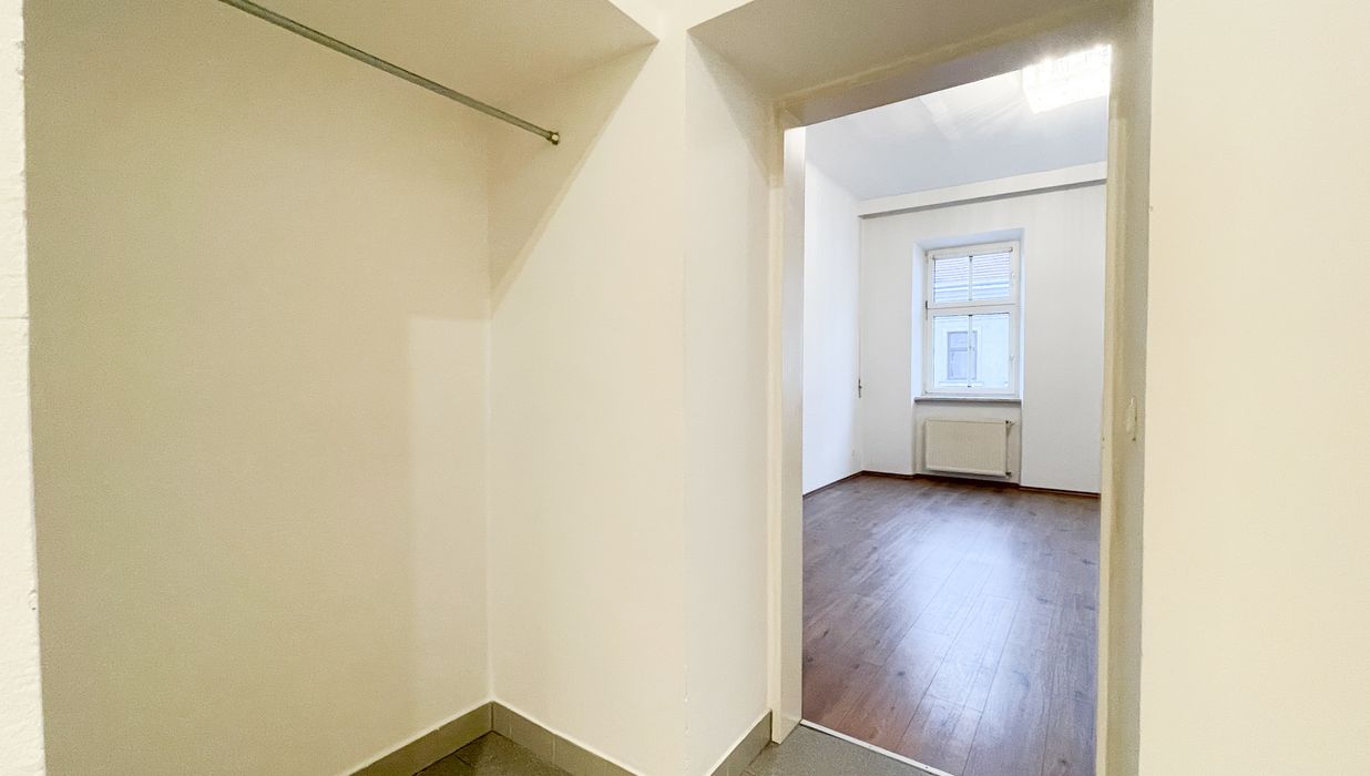 Bereits beim Betreten überzeugt der einladende Vorraum mit einer praktischen Nische, die sich ideal als Garderobe nutzen lässt. Die separate, geräumige Küche mit öffenbarem Fenster zum Gang bietet vielfältige Gestaltungsmöglichkeiten: Ob gemütlicher Essplatz oder erweiterte Küchenzeile – hier ist ausreichend Raum für individuelle Wohnideen.