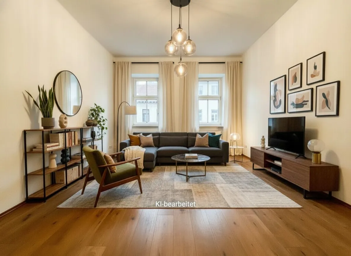 Zwei großzügige, nahezu quadratische Zimmer mit beeindruckenden, typischen Altbaudecken schaffen ein luftiges Wohngefühl und bieten vielseitige Nutzungsmöglichkeiten – ob als Wohn-, Schlaf- oder Arbeitszimmer. Die Ausrichtung Richtung Webergasse sorgt für eine freundliche Atmosphäre.