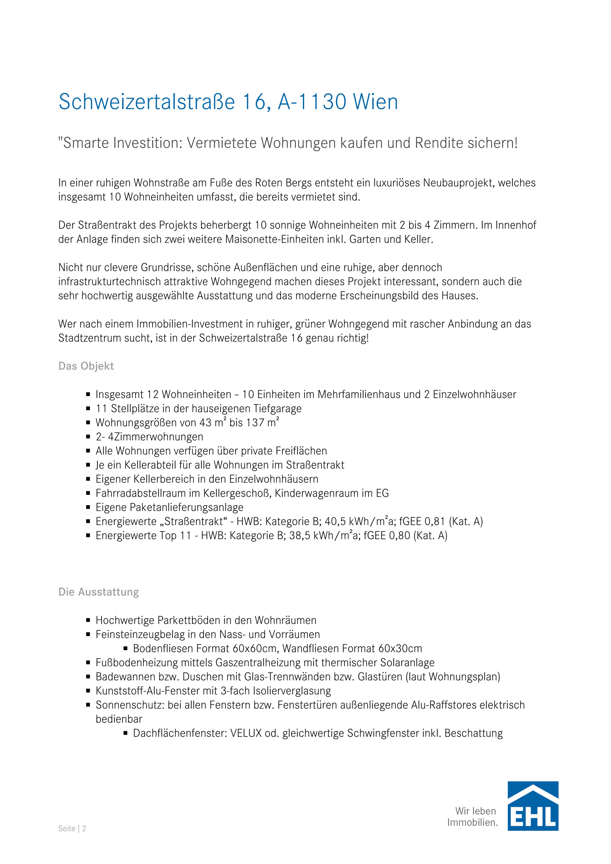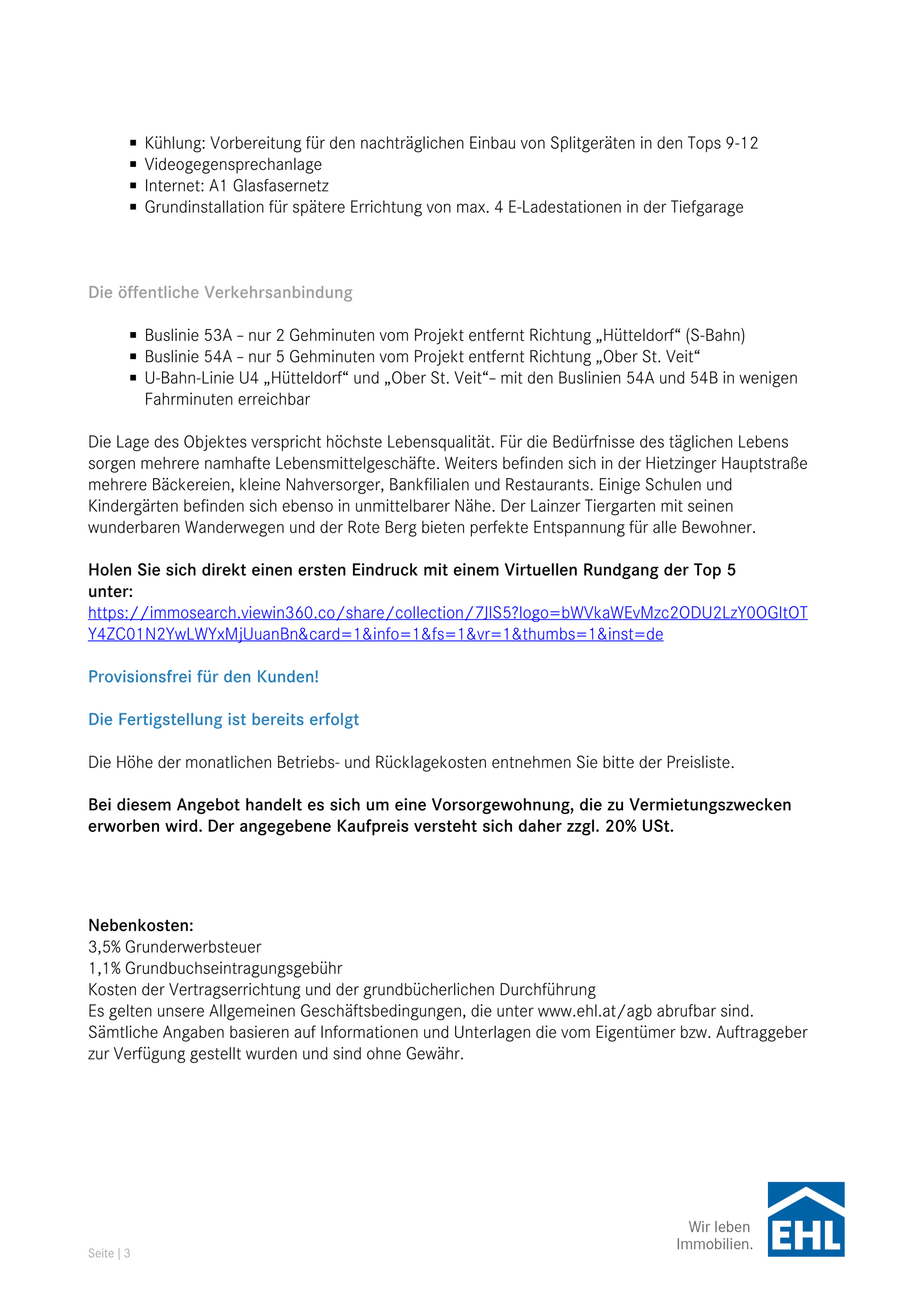 Bei diesem Angebot handelt es sich um eine Vorsorgewohnung, die zu Vermietungszwecken erworben wird. Der angegebene Kaufpreis versteht sich daher zzgl. 20% USt.