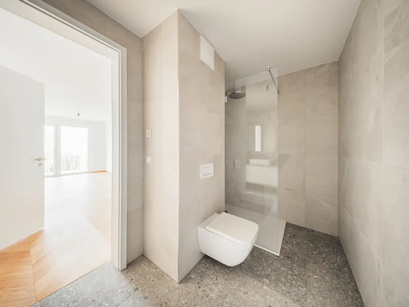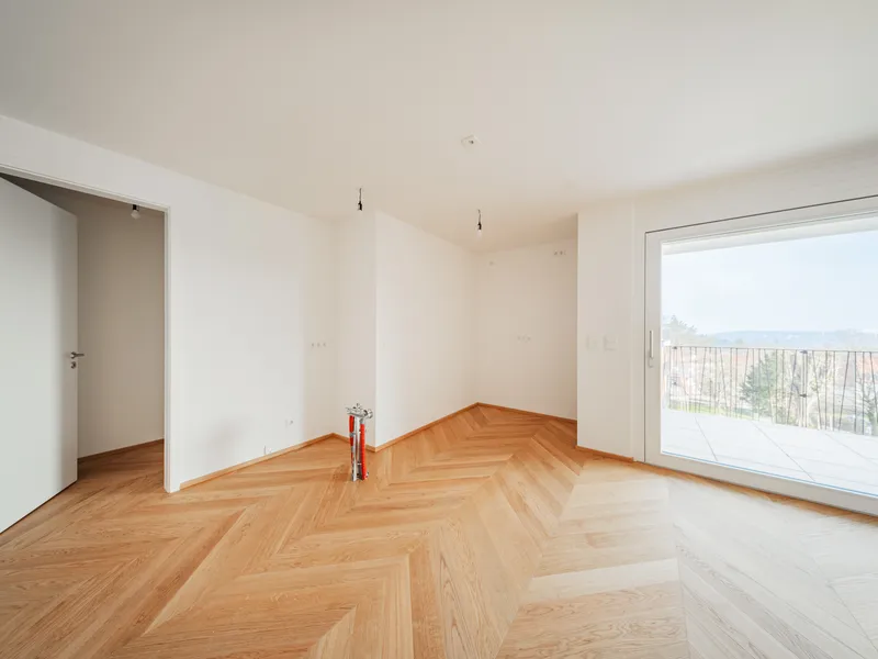 Die Wohnungen überzeugen mit hochwertigen Materialien und modernen Ausstattungsdetails. Langlebige Holz-Alu-Fenster mit Isolierverglasung sowie elektrisch angesteuerte Außenbeschattungselemente bieten hervorragenden Wohnkomfort. Edle Fischgrät-Parkettböden, großformatiges Feinsteinzeug in Bad und WC sowie Marken-Armaturen unterstreichen die Exklusivität der Ausstattung. Eine Fußbodenheizung sowie eine Deckenkühlung mittels Betonkernaktivierung sorgen für angenehmes Raumklima zu jeder Jahreszeit. Zudem sind alle Elektroinstallationen für ein Smart-Home-System vorbereitet. Ein umfassendes Sicherheitspaket mit Sicherheitstür und Videogegensprechanlage rundet das Angebot ab.