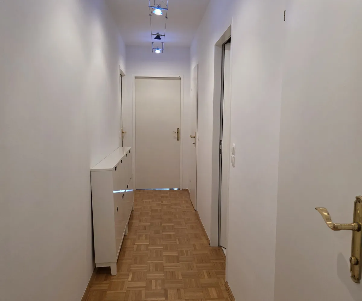 Die Wohnung teilt sich wie folgt auf: Einladender Vorraum, eine komplett eingerichtete Küche, ein helles Wohnzimmer, zwei ruhige Schlafzimmer, eine separate Toilette mit Handwaschbecken, ein Badezimmer mit Wanne sowie ein praktischer Abstellraum. Sämtliche Räume sind zentral begehbar und bieten dadurch ein flexibles Wohnkonzept.