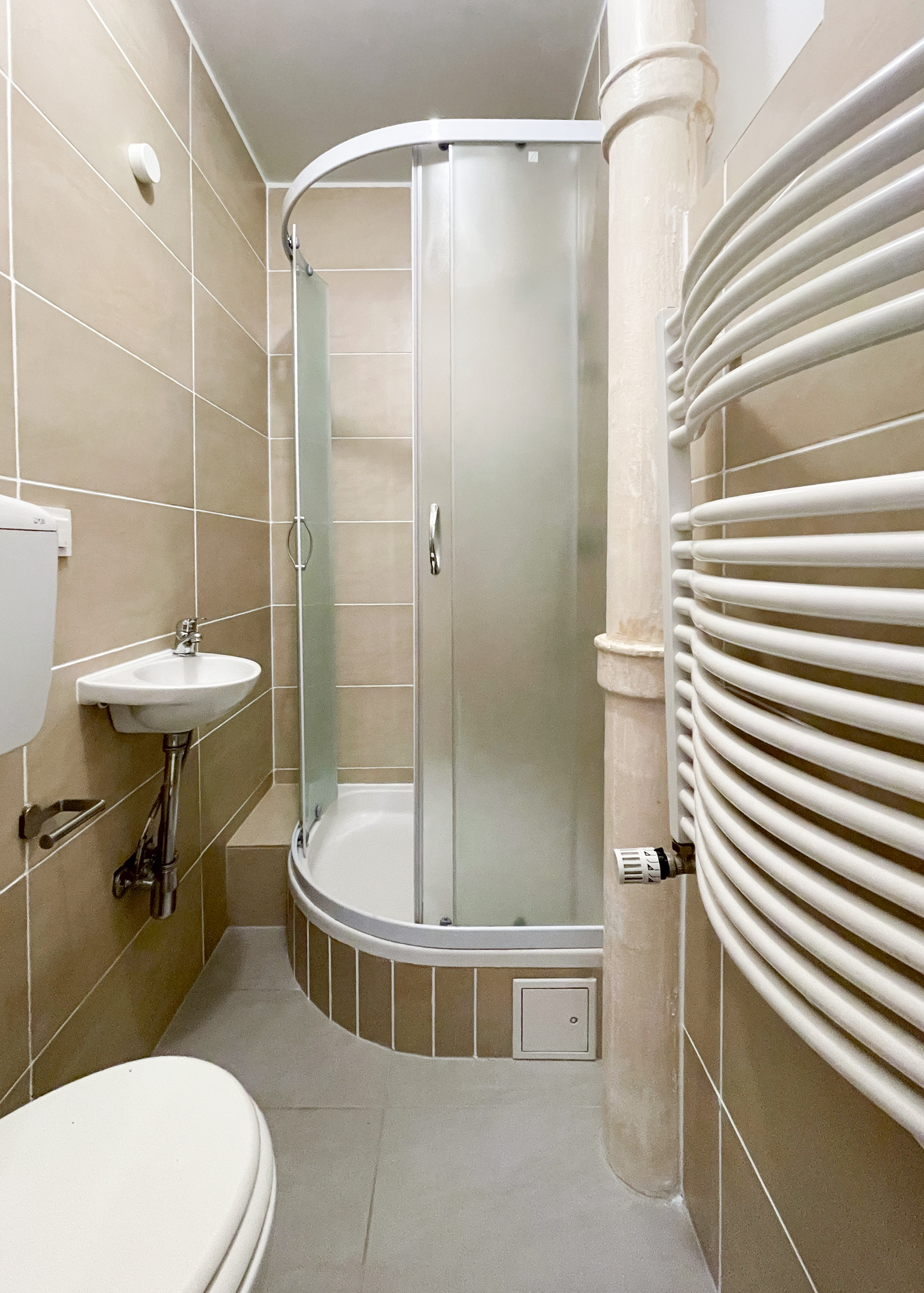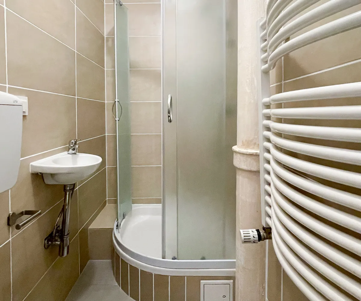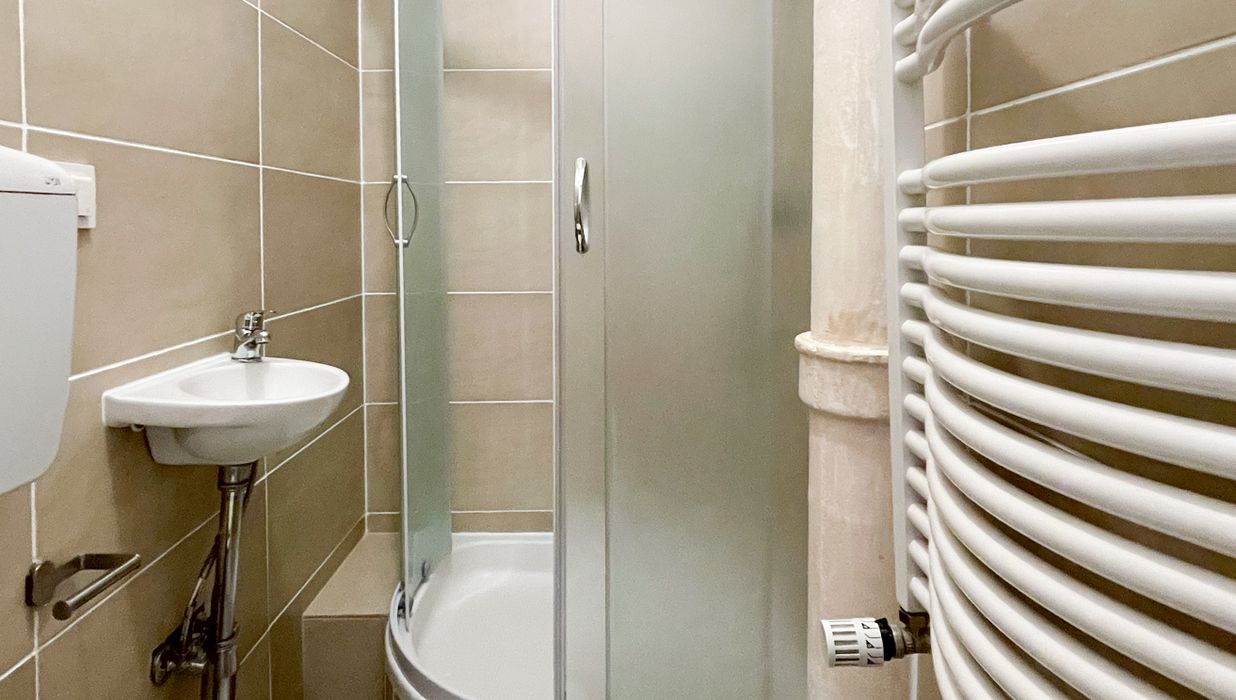 Modernisiertes Badezimmer mit Dusche und WC