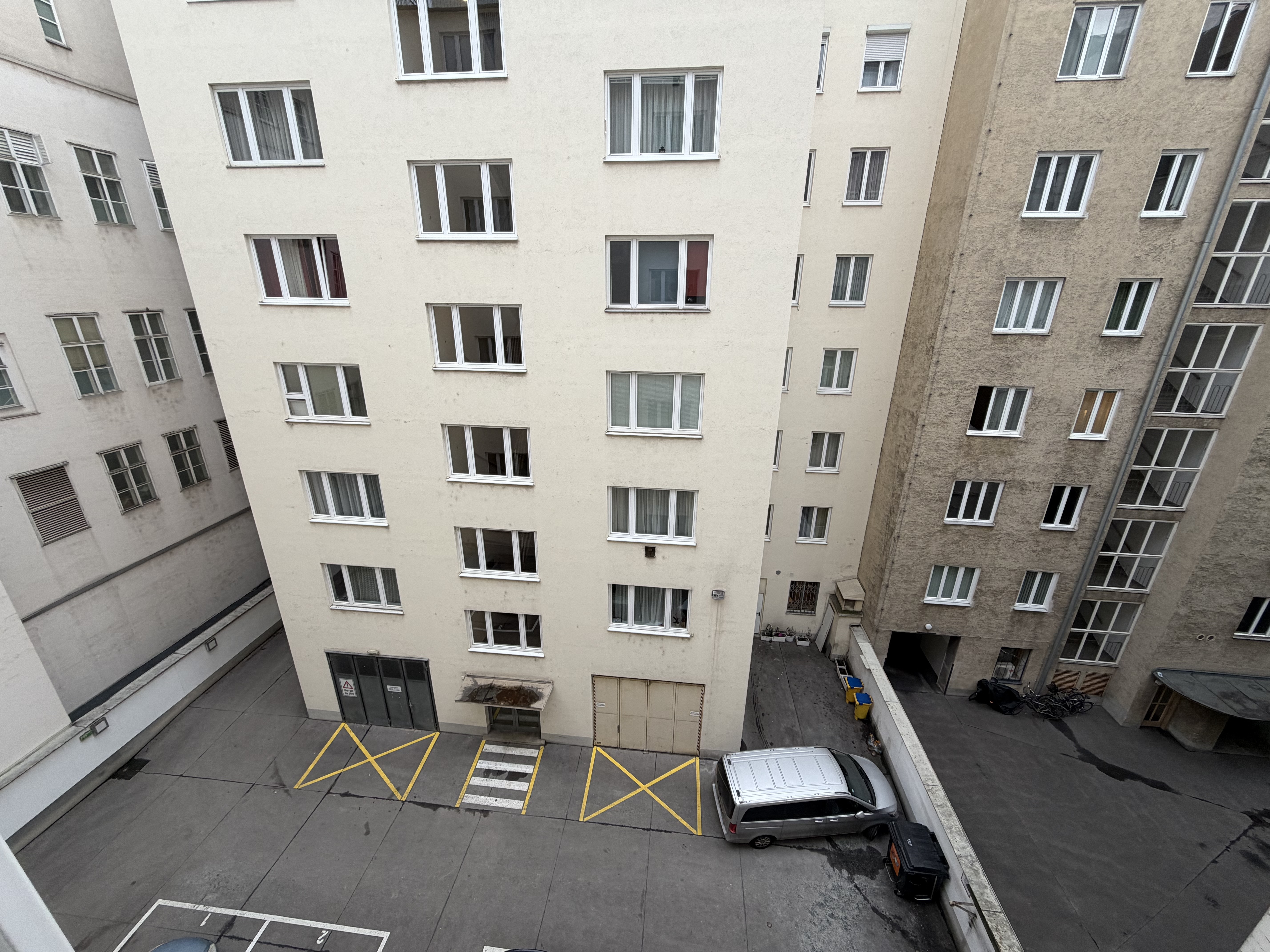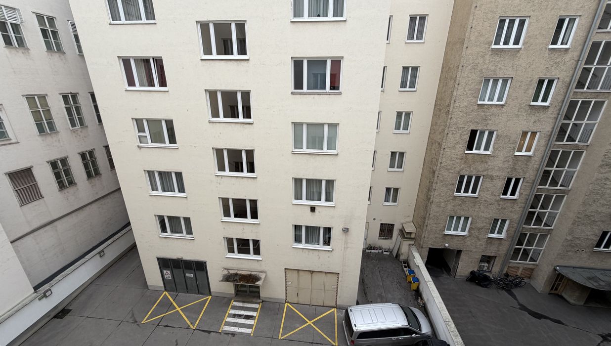 Komfort ist ebenfalls gewährleistet: Ein Aufzug bringt Sie bequem in den 4. Stock, ein Kellerabteil bietet zusätzlichen Stauraum. Besonders attraktiv sind die Stellplätze im Innenhof, die nach dem First-come-first-serve-Prinzip genutzt werden können – ein seltener Vorteil in der City, der den urbanen Alltag deutlich erleichtert.