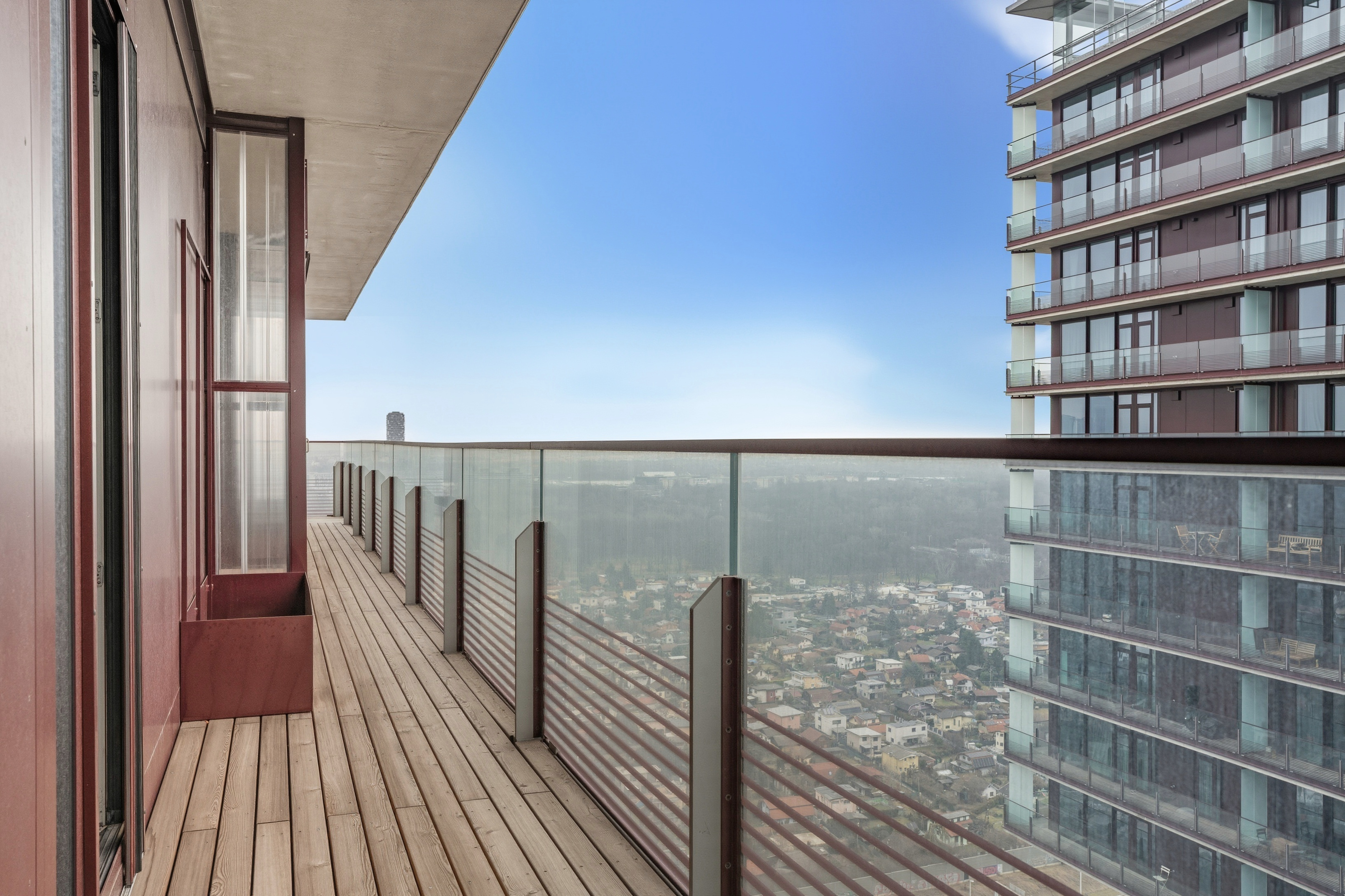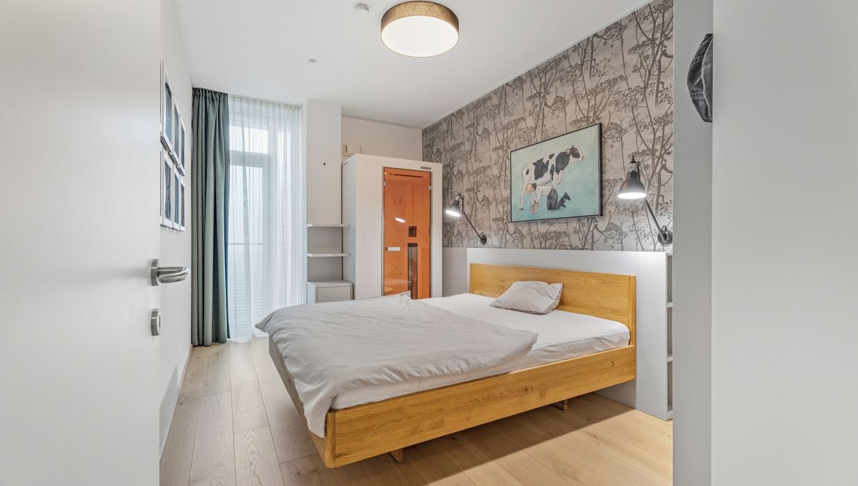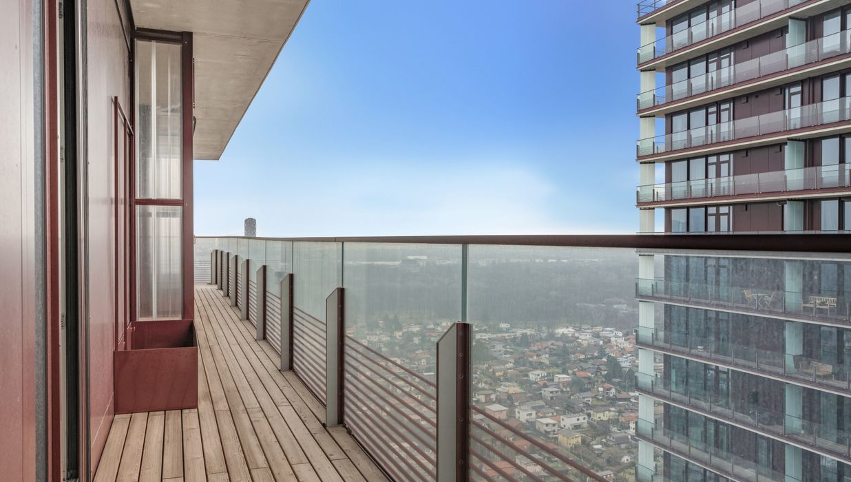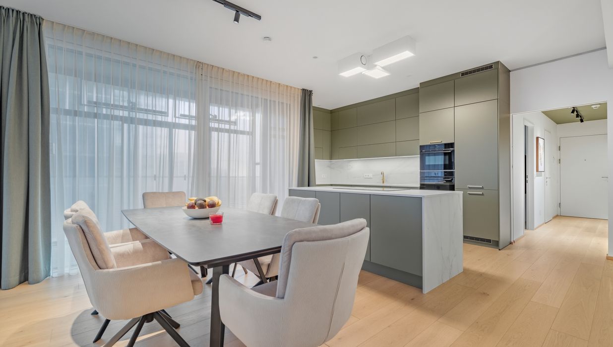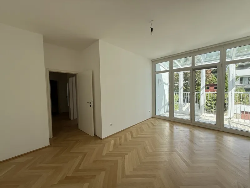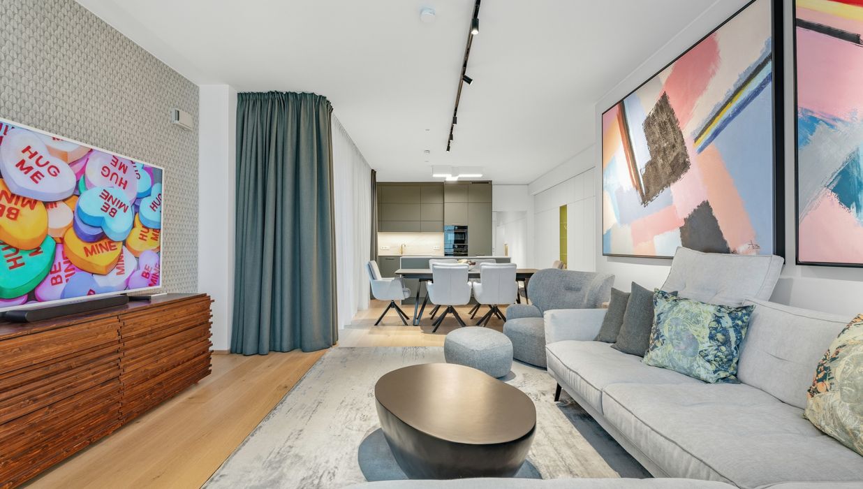 Mit ihrem Blick über den Grünen Prater verbindet sie urbanes Wohnen mit der beruhigenden Wirkung weiter Grünflächen. Die optische Leichtigkeit der Architektur, kombiniert mit der Offenheit der Räume, schafft ein Wohngefühl voller Weite und Eleganz. Auch hier sorgen große Fensterfronten und großzügige Außenflächen für ein beeindruckendes Zusammenspiel von Innen- und Außenraum.