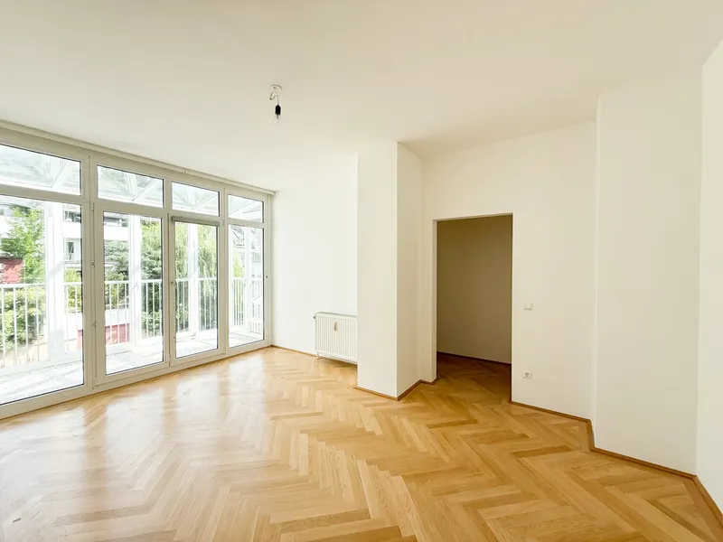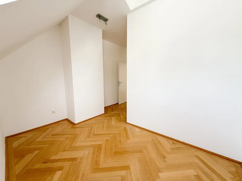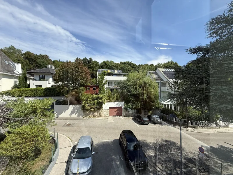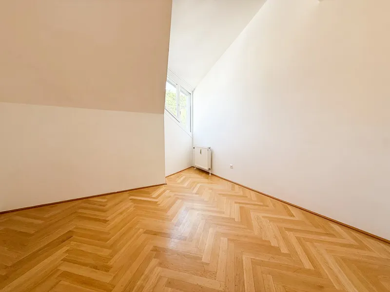 Lichtdurchflutet durch großzügige Fensterflächen eröffnet sie ein Panorama auf die Wiener Hausberge. Besonders in den Abendstunden, wenn die Sonne langsam hinter den Hügeln versinkt und den Himmel in warme Gold- und Rottöne taucht, entsteht ein beinahe magisches Schauspiel. Die großzügige Freifläche erweitert den Wohnraum ins Freie – perfekt für stille Momente über den Dächern der Stadt.