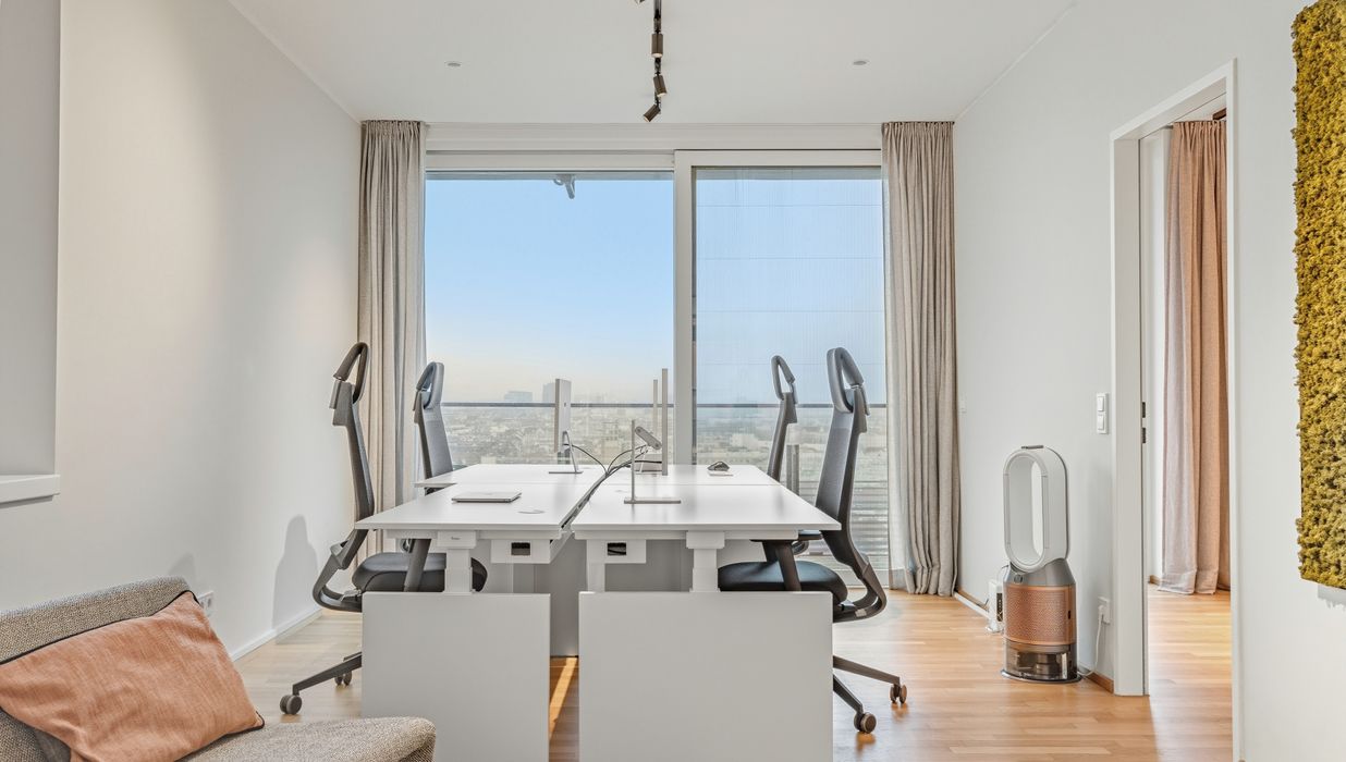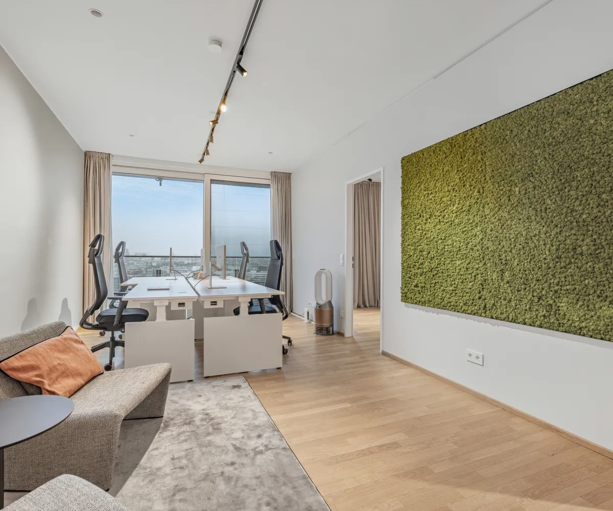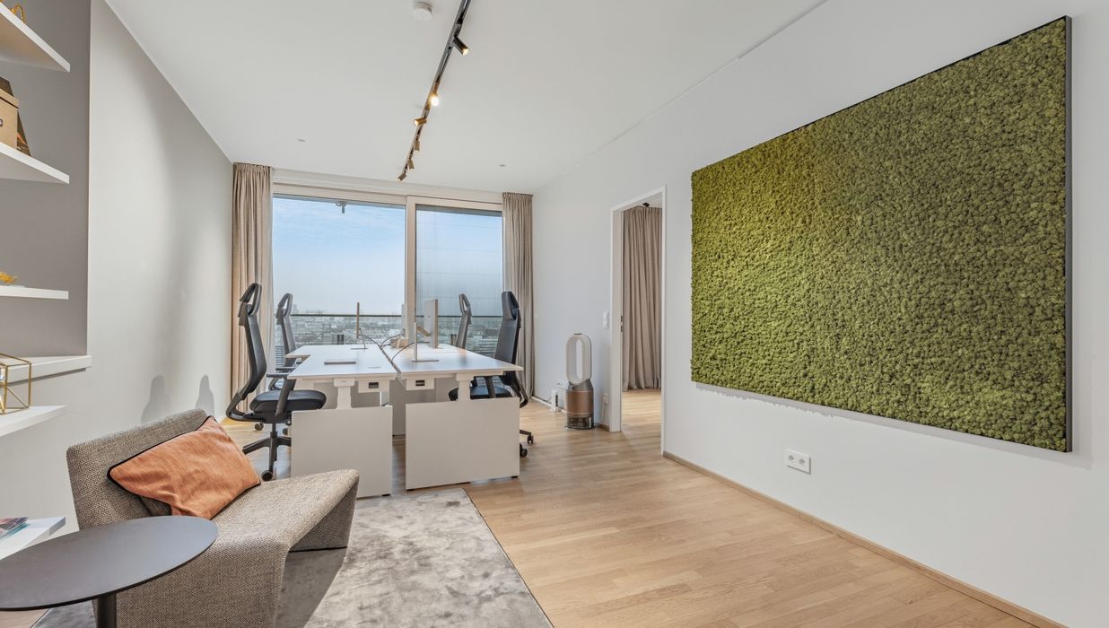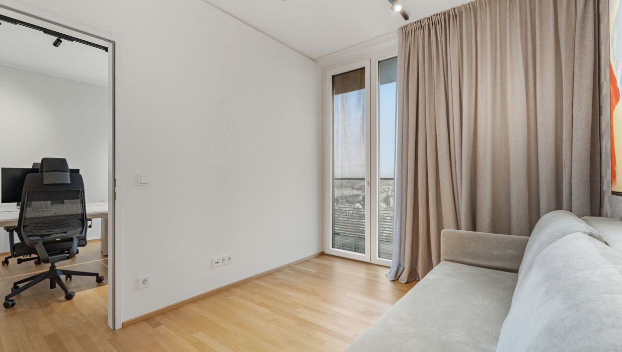 Mit ihrem Blick über den Grünen Prater verbindet sie urbanes Wohnen mit der beruhigenden Wirkung weiter Grünflächen. Die optische Leichtigkeit der Architektur, kombiniert mit der Offenheit der Räume, schafft ein Wohngefühl voller Weite und Eleganz. Auch hier sorgen große Fensterfronten und großzügige Außenflächen für ein beeindruckendes Zusammenspiel von Innen- und Außenraum.