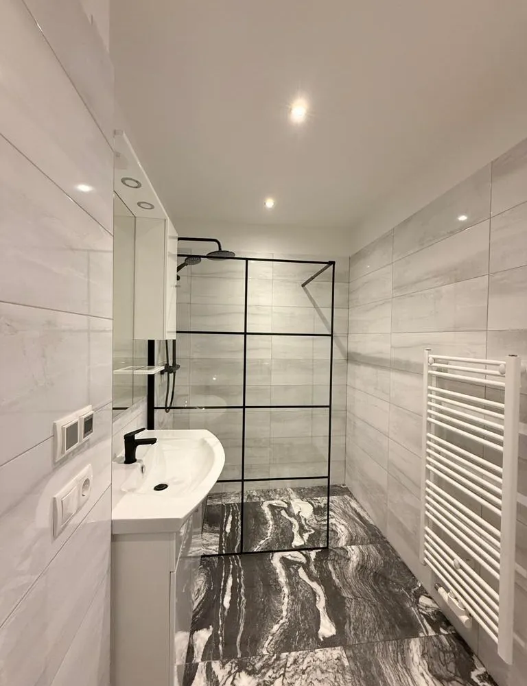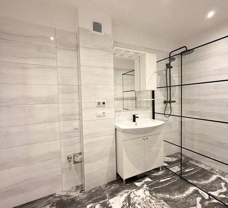 Vom zentralen, relativ großen Vorzimmer, erreicht man das Wohnzimmer, Schlafzimmer, eine voll eingerichtete Küche, das Badezimmer mit einer bodengleichen Dusche und Waschmaschinenanschluss sowie das WC mit einem Handwaschbecken.
