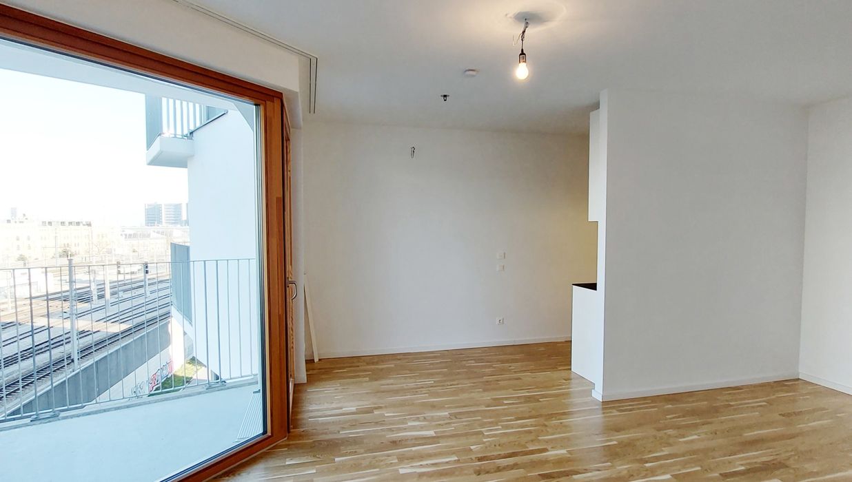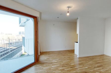 Sonnwendviertel: 1-Zimmer-Wohnung mit Balkon in der 10. Etage – Fitnessraum, Co-Working & Rooftop-Terrasse inklusive!