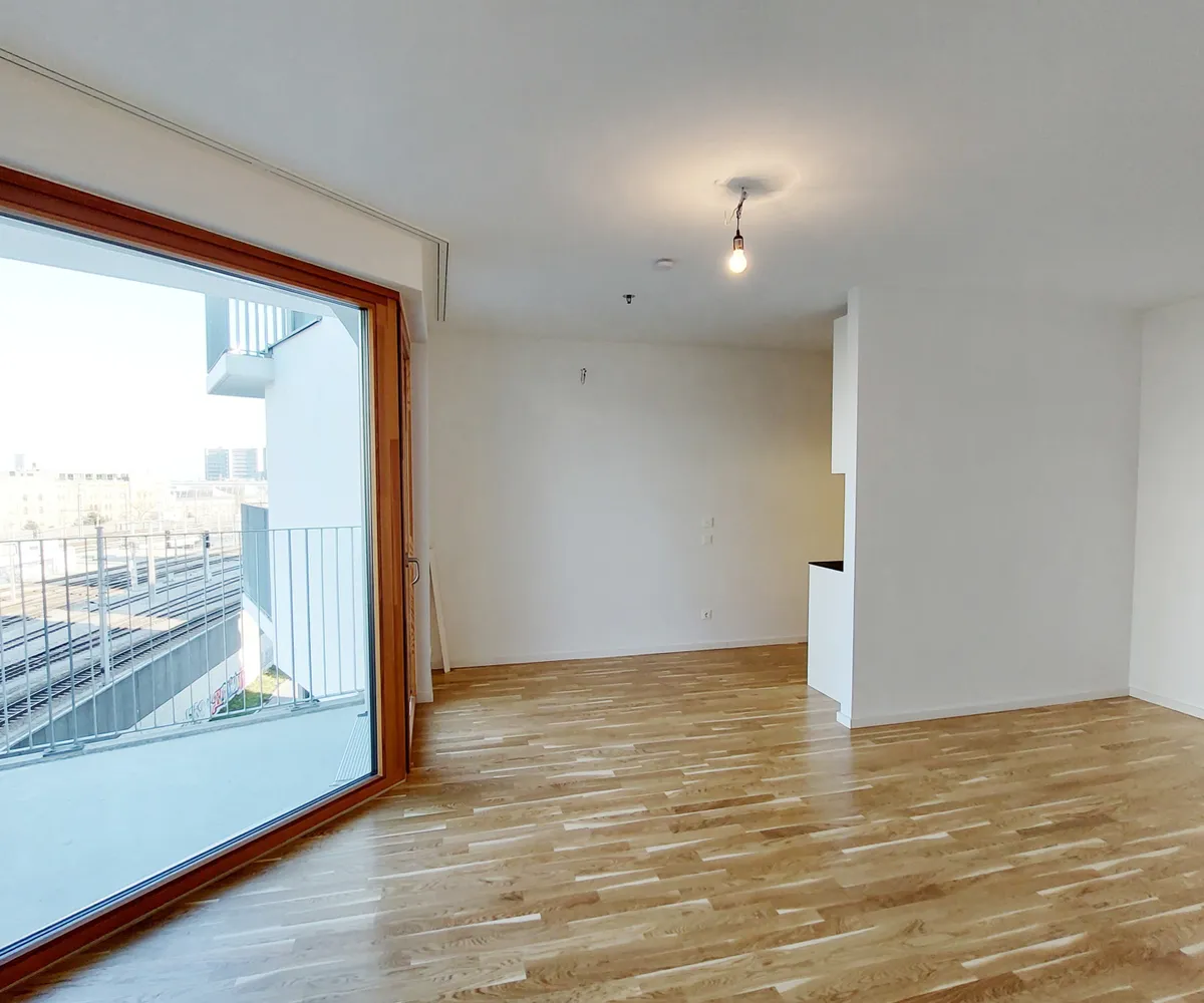 Sonnwendviertel: 1-Zimmer-Wohnung mit Balkon im 18. OG – Fitnessraum, Co-Working & Rooftop-Terrasse inklusive!