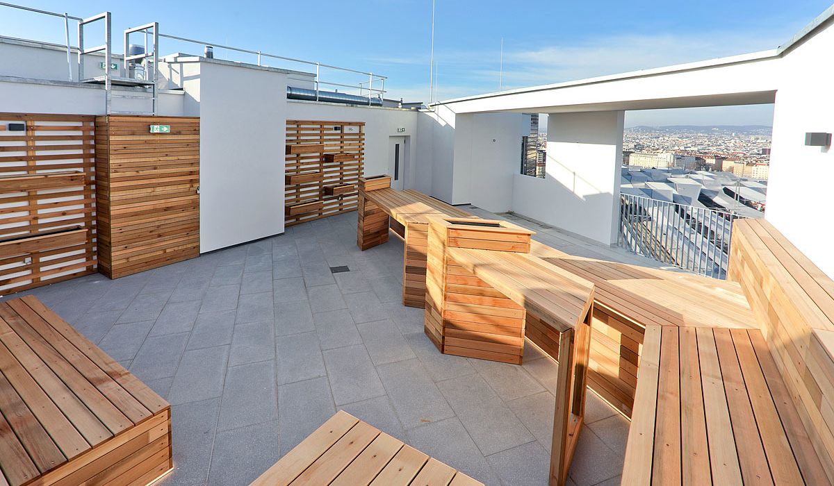 Inmitten des auflebendem Sonnwendviertel, bietet der moderne Wohnbaukomplex einen hauseigenen, hochwertig ausgestatteten Indoor-Fitnessbereich, sowie einen Co-Working-Space und eine Rooftop-Terrace.