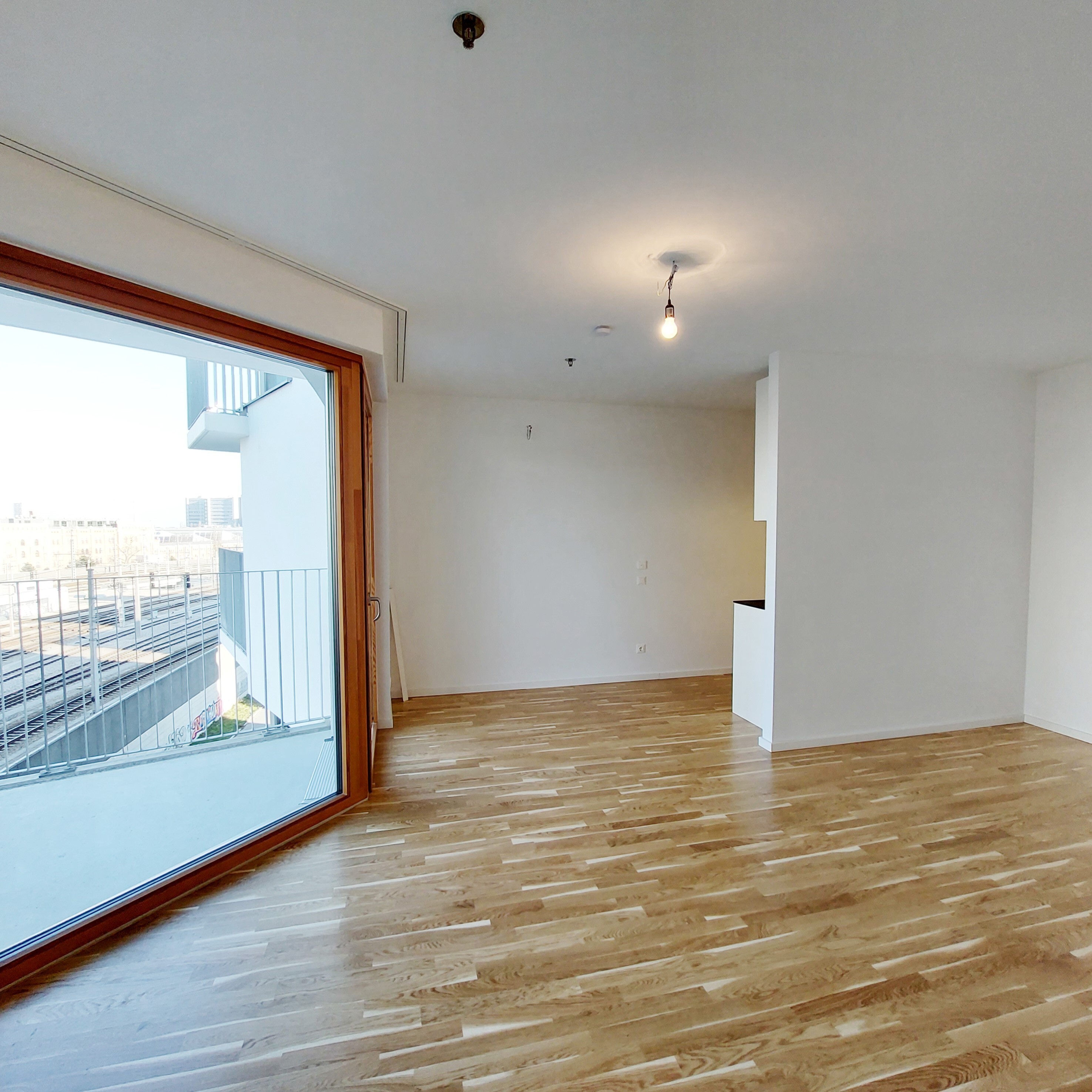 Sonnwendviertel: 1-Zimmer-Wohnung mit Balkon im 10. OG – Fitnessraum, Co-Working & Rooftop-Terrasse inklusive!