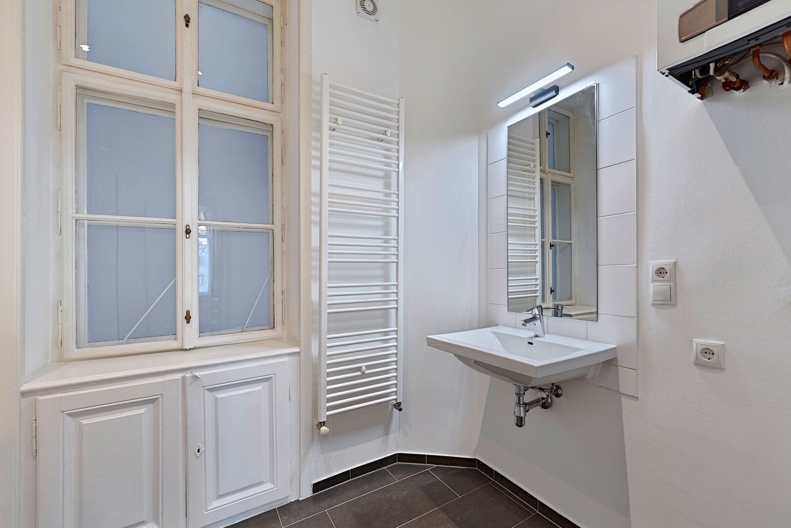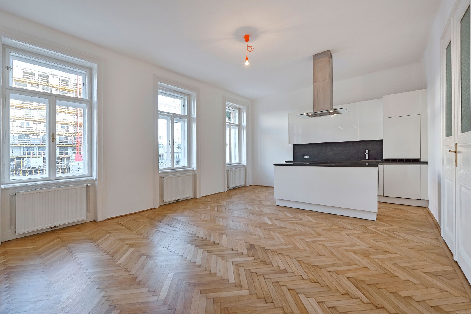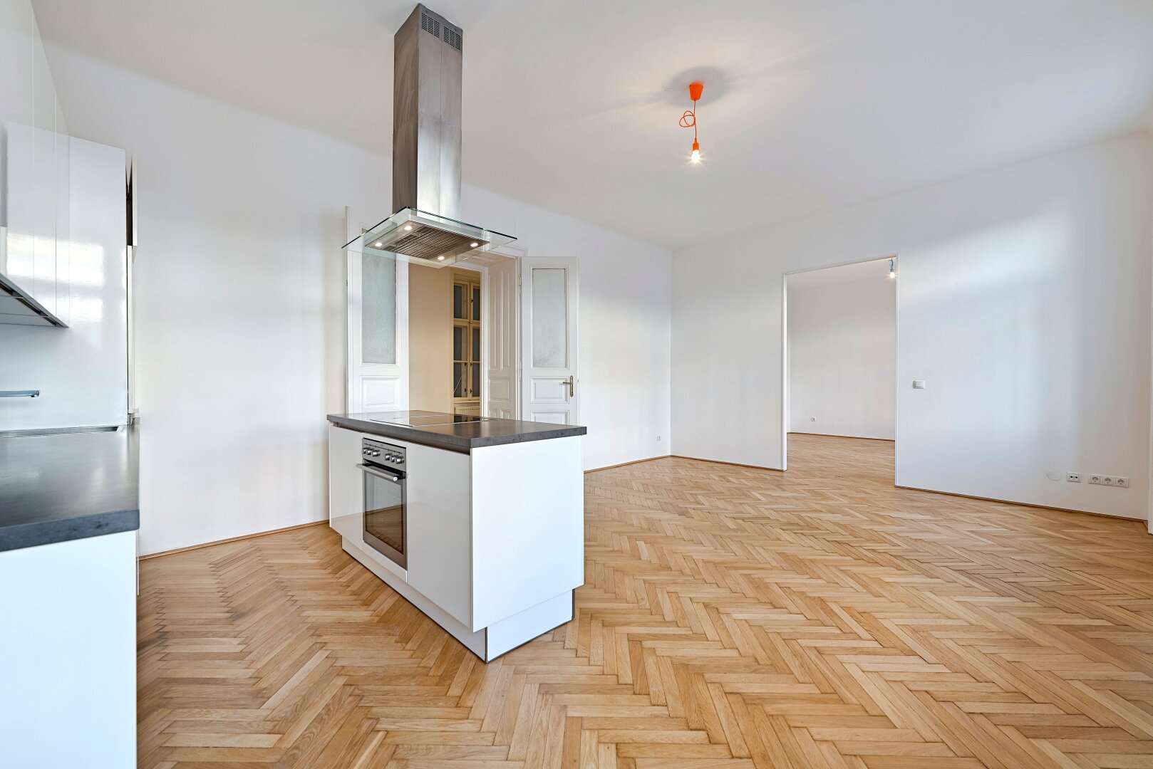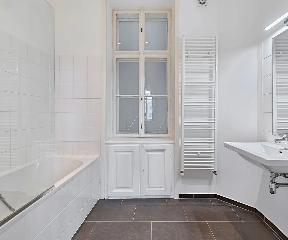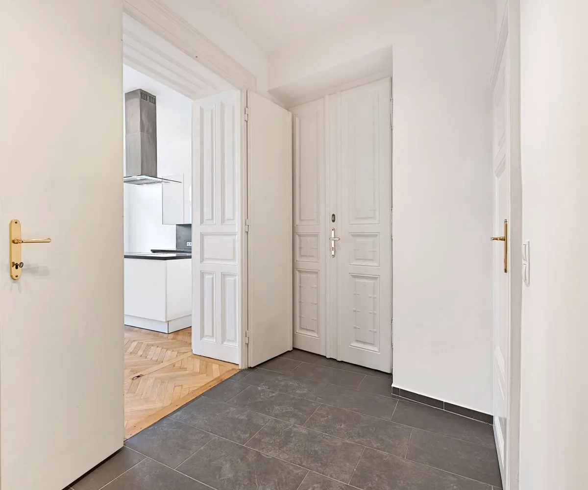 Im hinteren Trakt des Hauses im Mezzanin (1. Stock) gelegen, bietet Ihnen dies 2-Zimmer Wohnung neben einer fantastischen Wohnküche über ein großes Schlafzimmer mit direktem Zugang ins Badezimmer, einen Vorraum sowie ein separates WC.