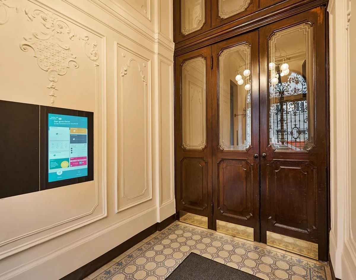 Das Gebäude besticht durch ein wunderschönes Entree und eine stuckreiche Fassade.