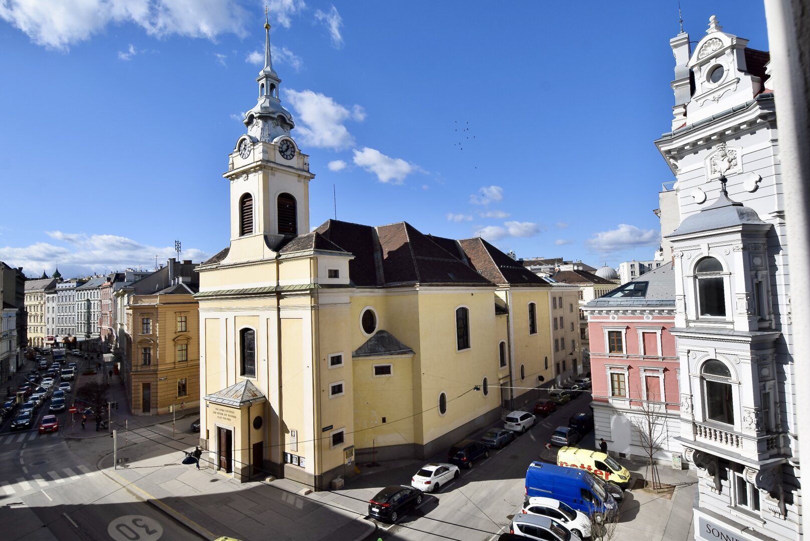 In fußläufiger Umgebung befinden sich ebenso eine Vielzahl an Einkaufsmöglichkeiten. Darüber hinaus liegen zahlreiche kleinere Gewerbebetriebe, gastronomische Einrichtungen wie das Schlossquadrat und Naschmarkt, Schulen, Kindergärten und diverse Arztpraxen in diesem beliebten und trendigen Wohnviertel.