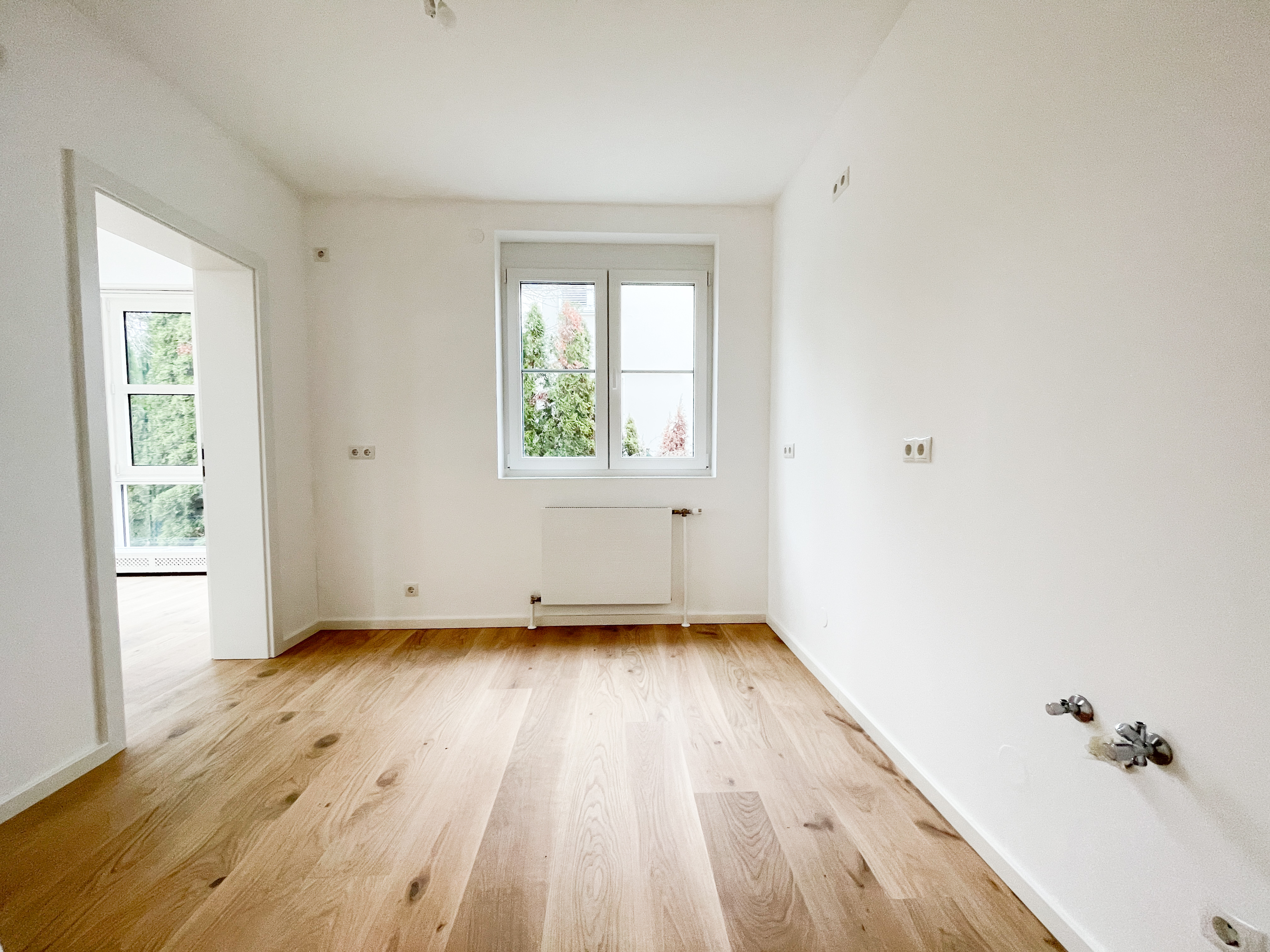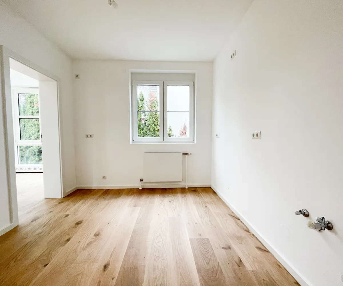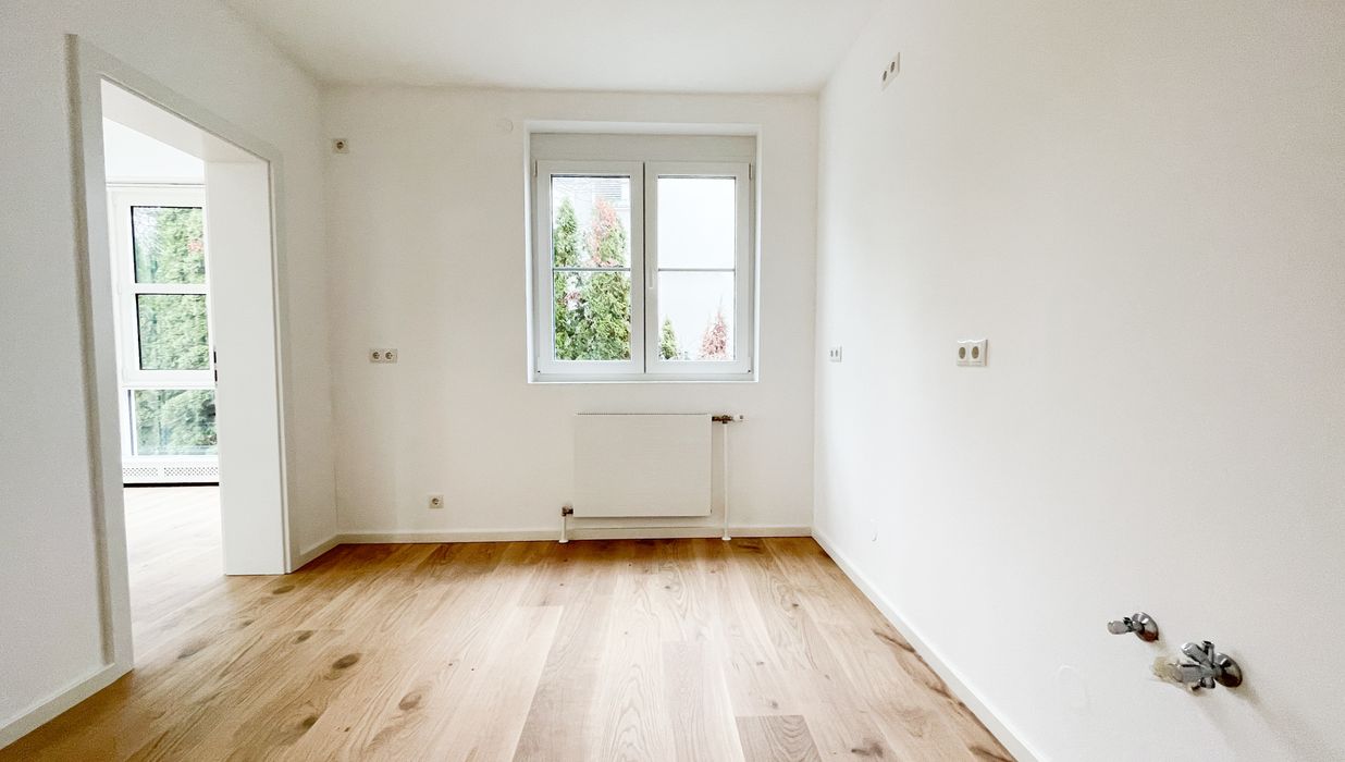 Die Immobilie befindet sich im Erstbezug nach Generalsanierung : Ein hochwertiger Parkettboden wurde in allen Wohnräumen neu verlegt, der moderne neue Stiegenabgang in den Keller und sämtliche Sanitärbereiche wurden modernisiert.