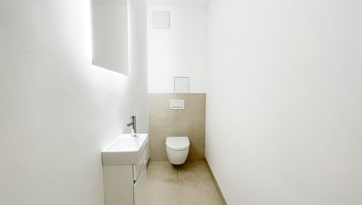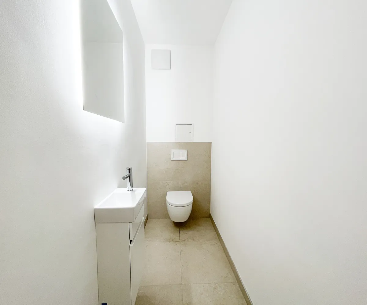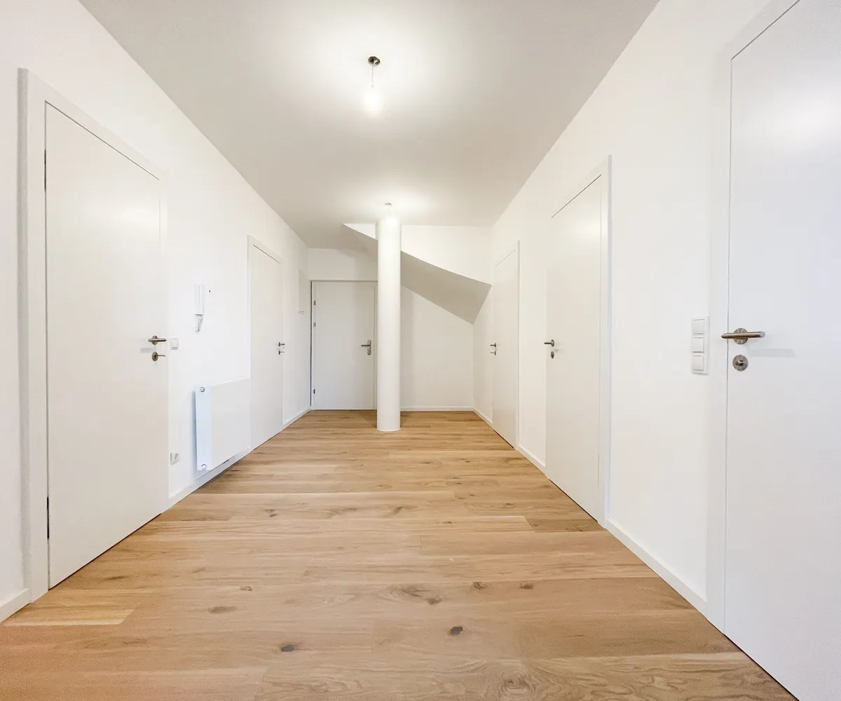 Die Immobilie befindet sich im Erstbezug nach Generalsanierung : Ein hochwertiger Parkettboden wurde in allen Wohnräumen neu verlegt, der moderne neue Stiegenabgang in den Keller und sämtliche Sanitärbereiche wurden modernisiert.