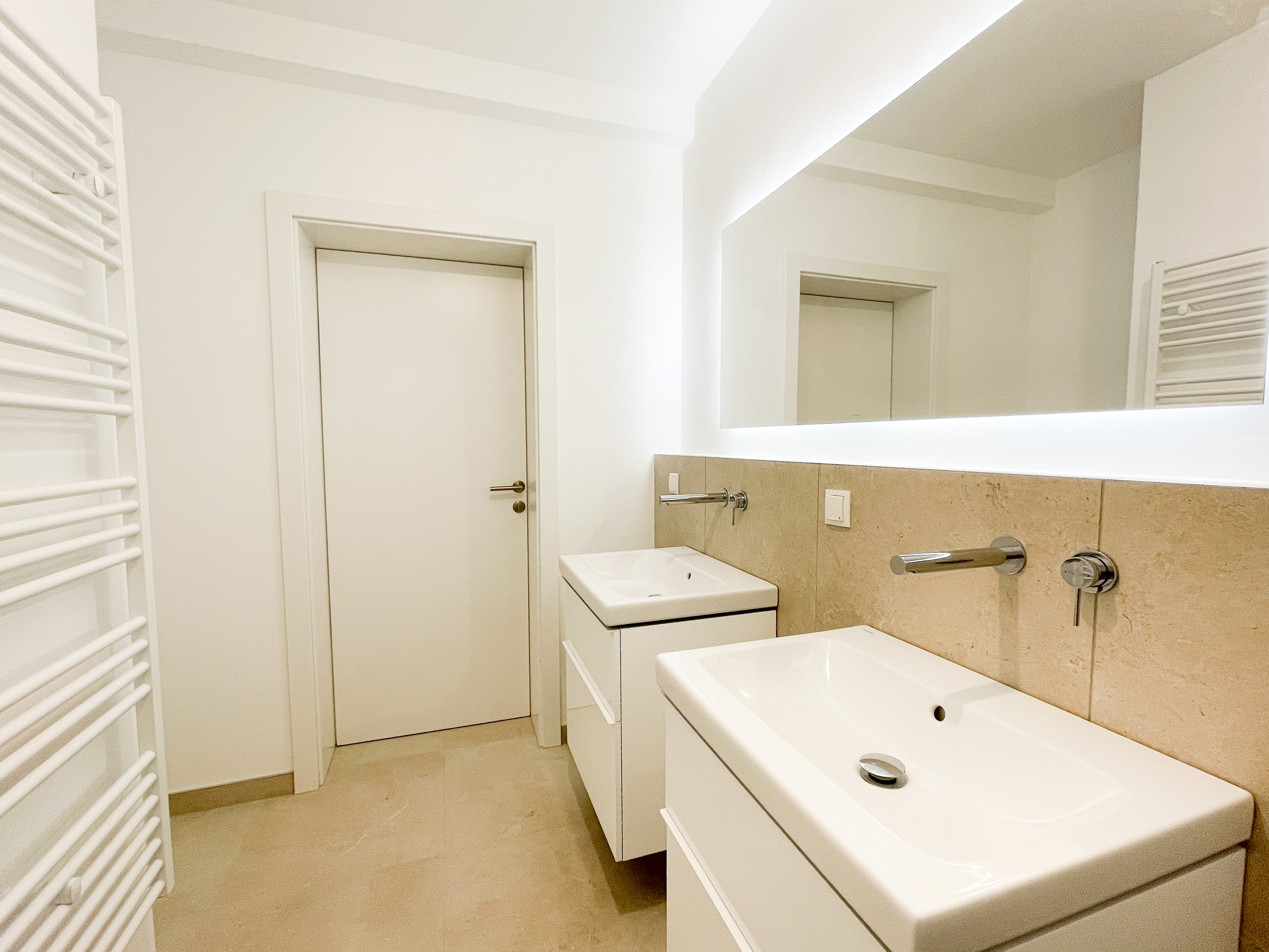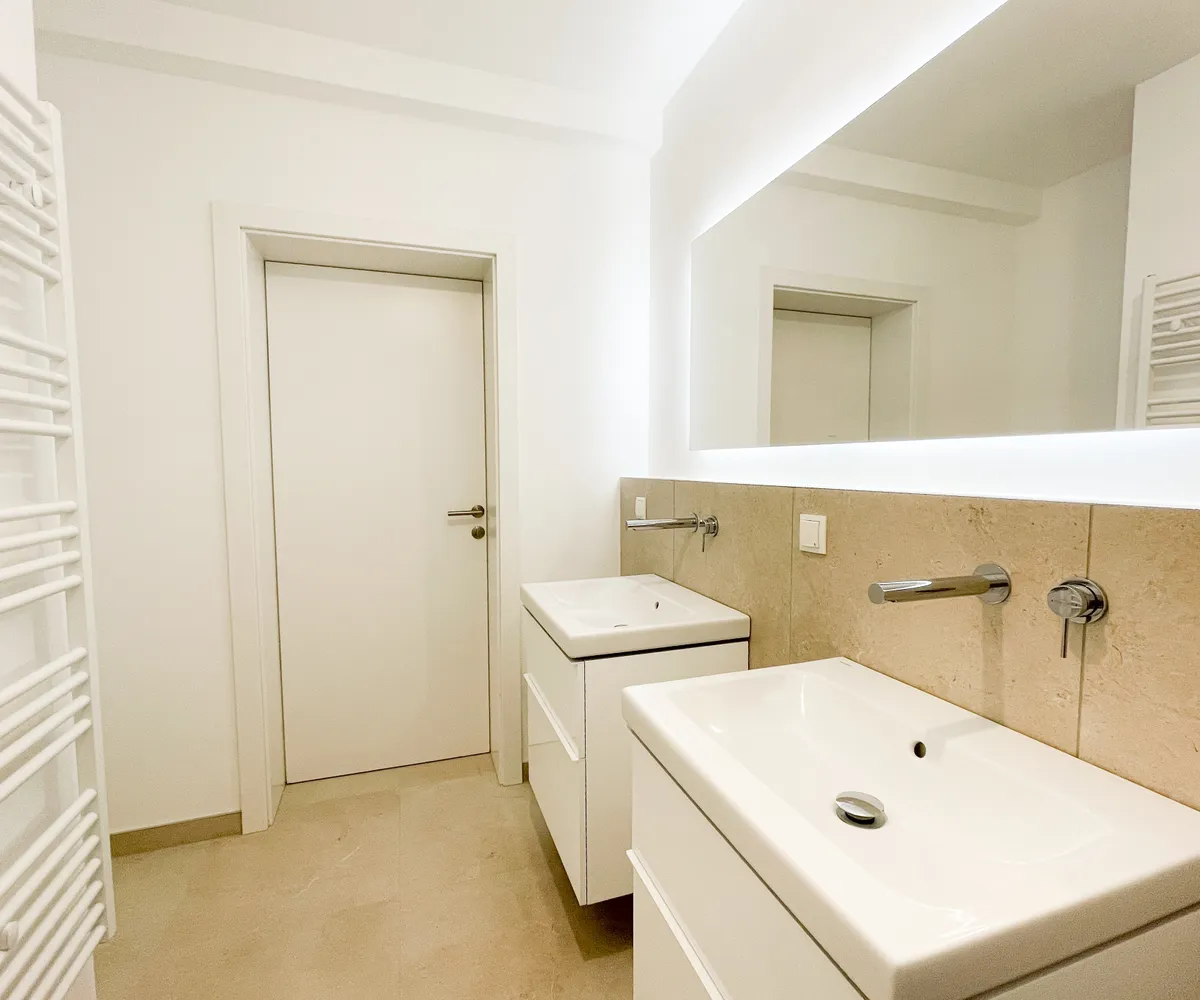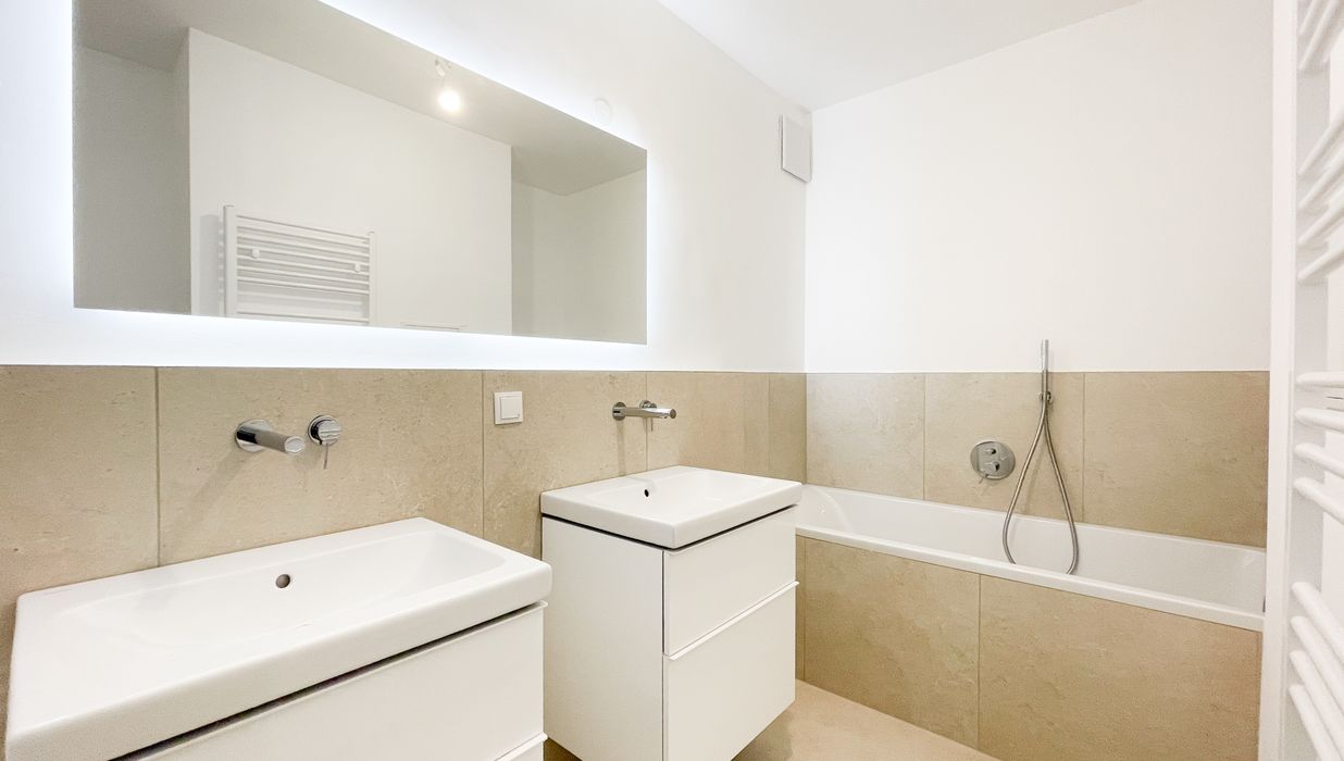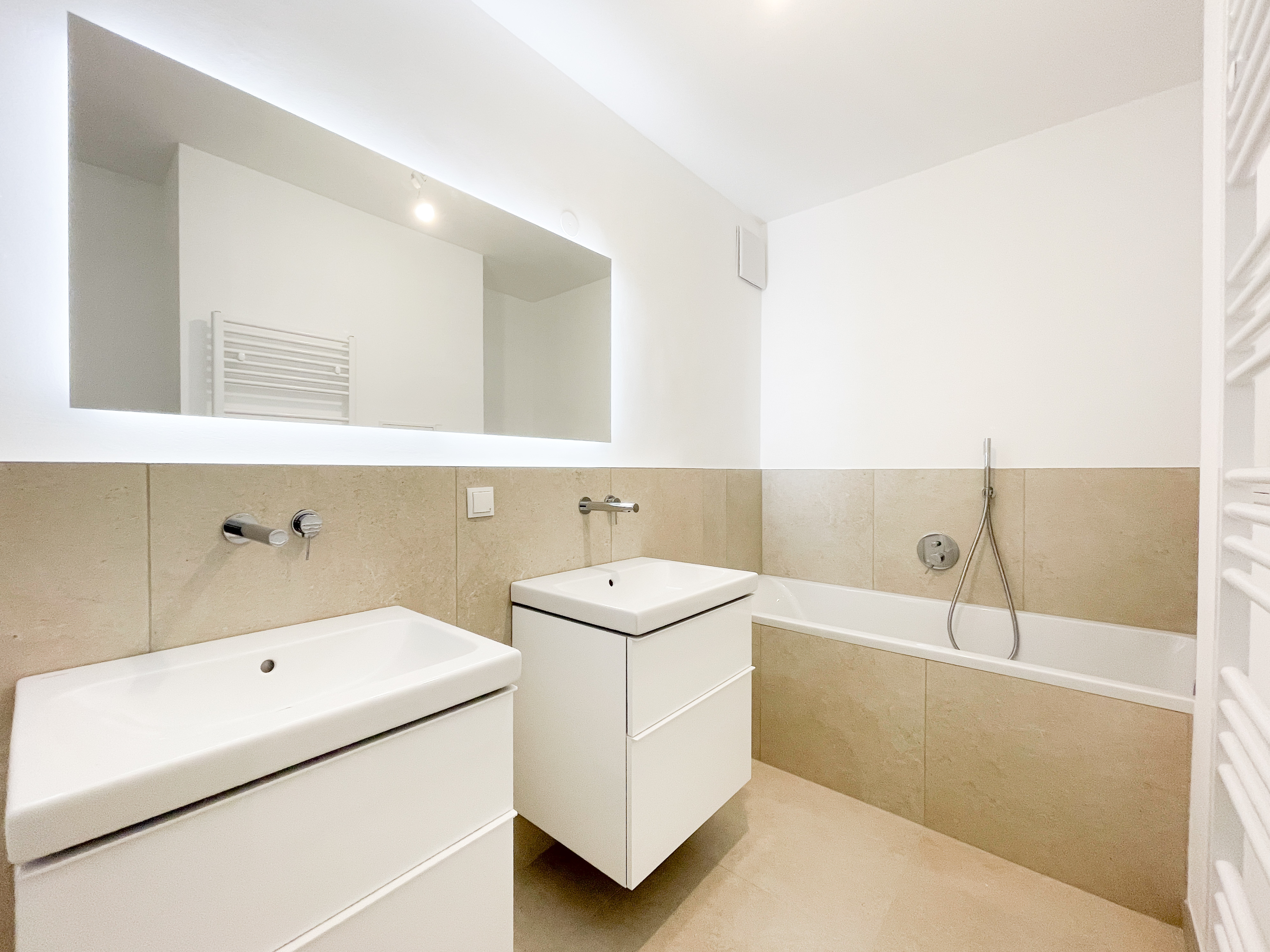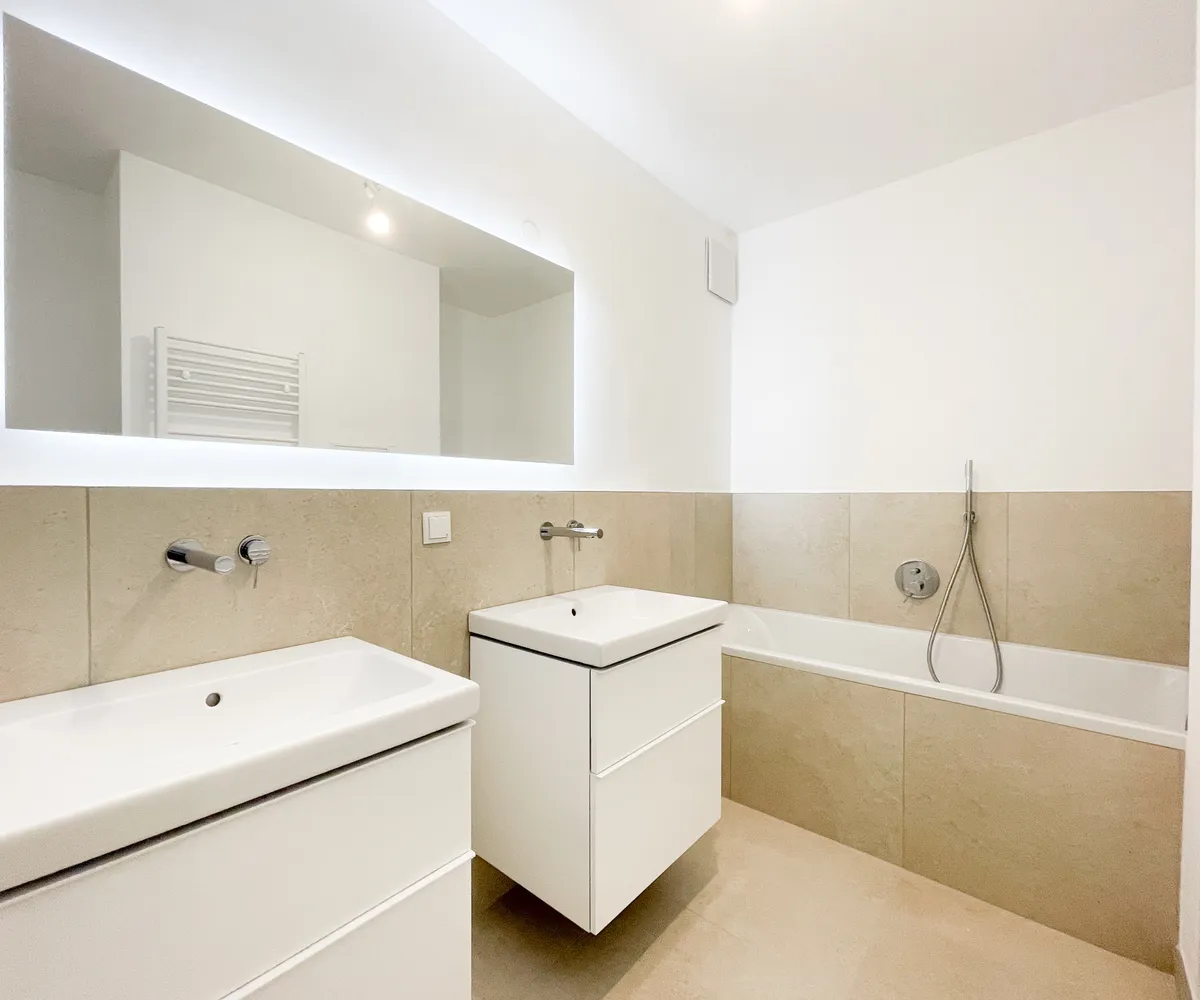 Design-Sanitärbereiche mit Wanne, Dusche, Doppelwaschbecken, WM-Anschluss