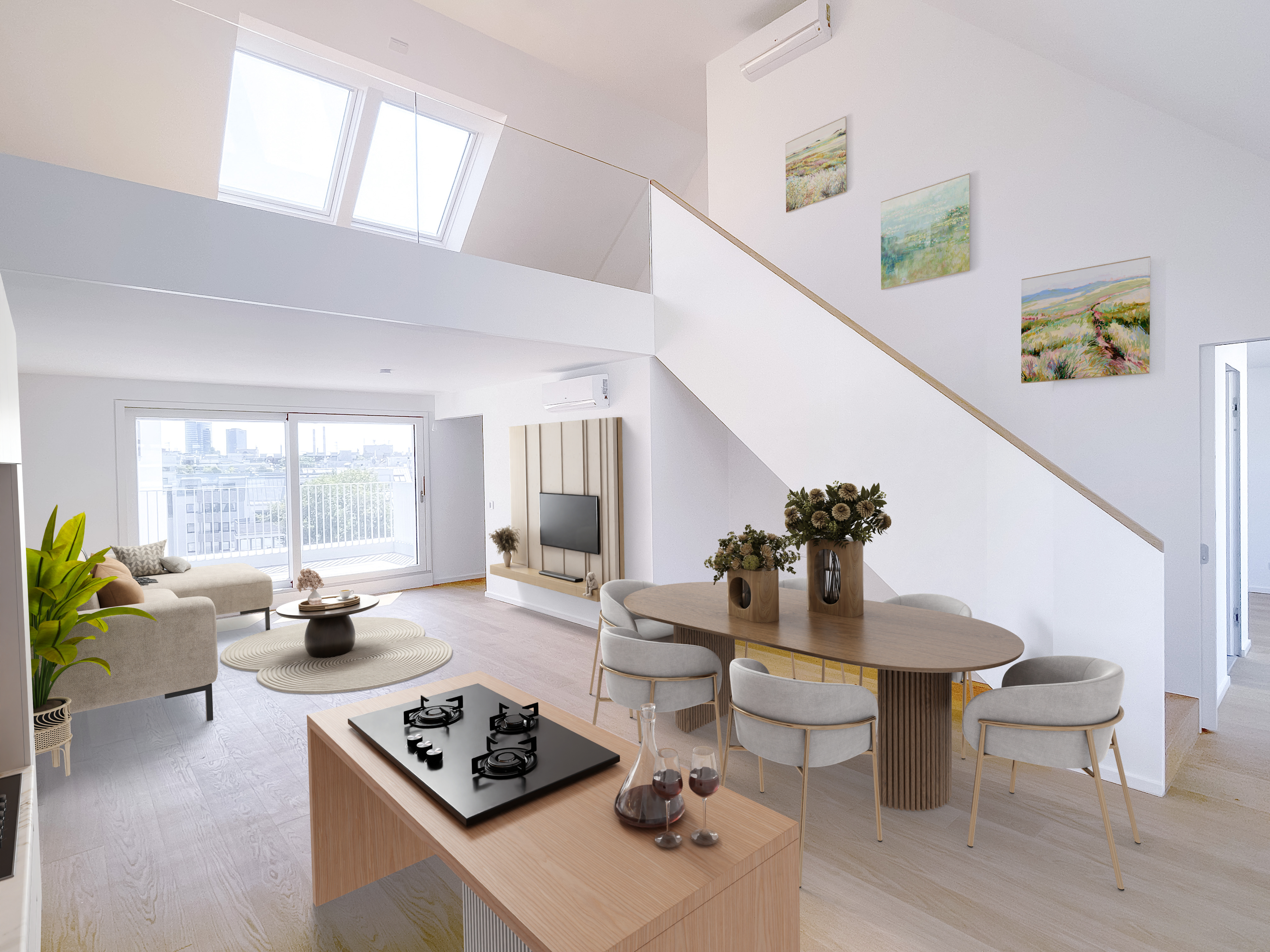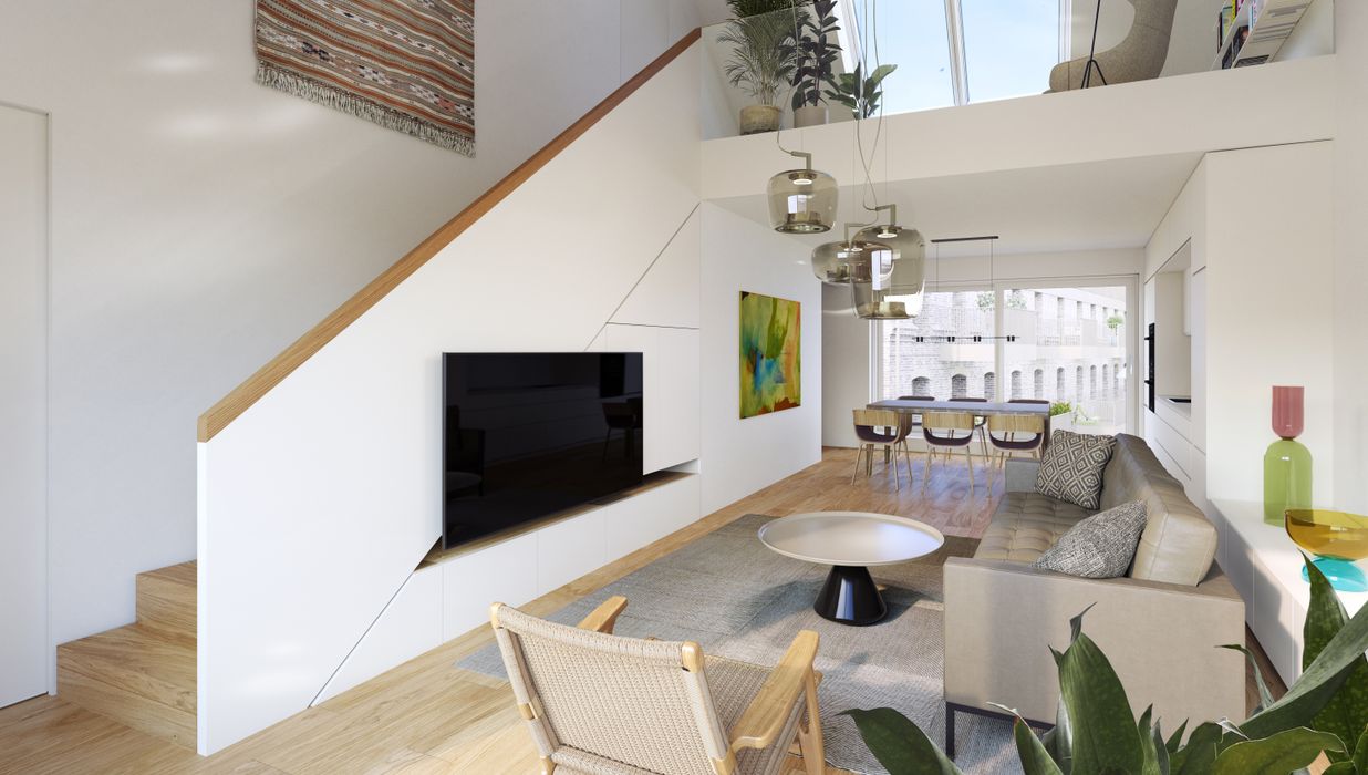 Alle vier Bautrakte bieten eine Vielzahl an Wohnungen unterschiedlicher Größe und Ausstattung, von gemütlichen Ein-Zimmer-Apartments bis hin zu geräumigen Penthouse-Wohnungen mit Terrassen und Blick auf die Stadt.