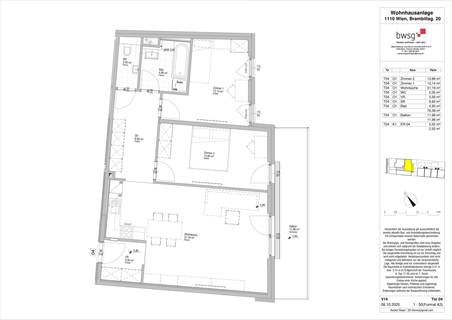In der Brambillagasse 20, im 11. Wiener Bezirk, entstehen bis Ende Sommer 2026 attraktive Wohnhäuser mit insgesamt 16 Wohnungen und 4 Stadthäusern. Das Objekt bietet Wohneinheiten zwischen 50 und 92 m² und wird ab sofort auch in einer Mietkauf-Modell-Variante angeboten.