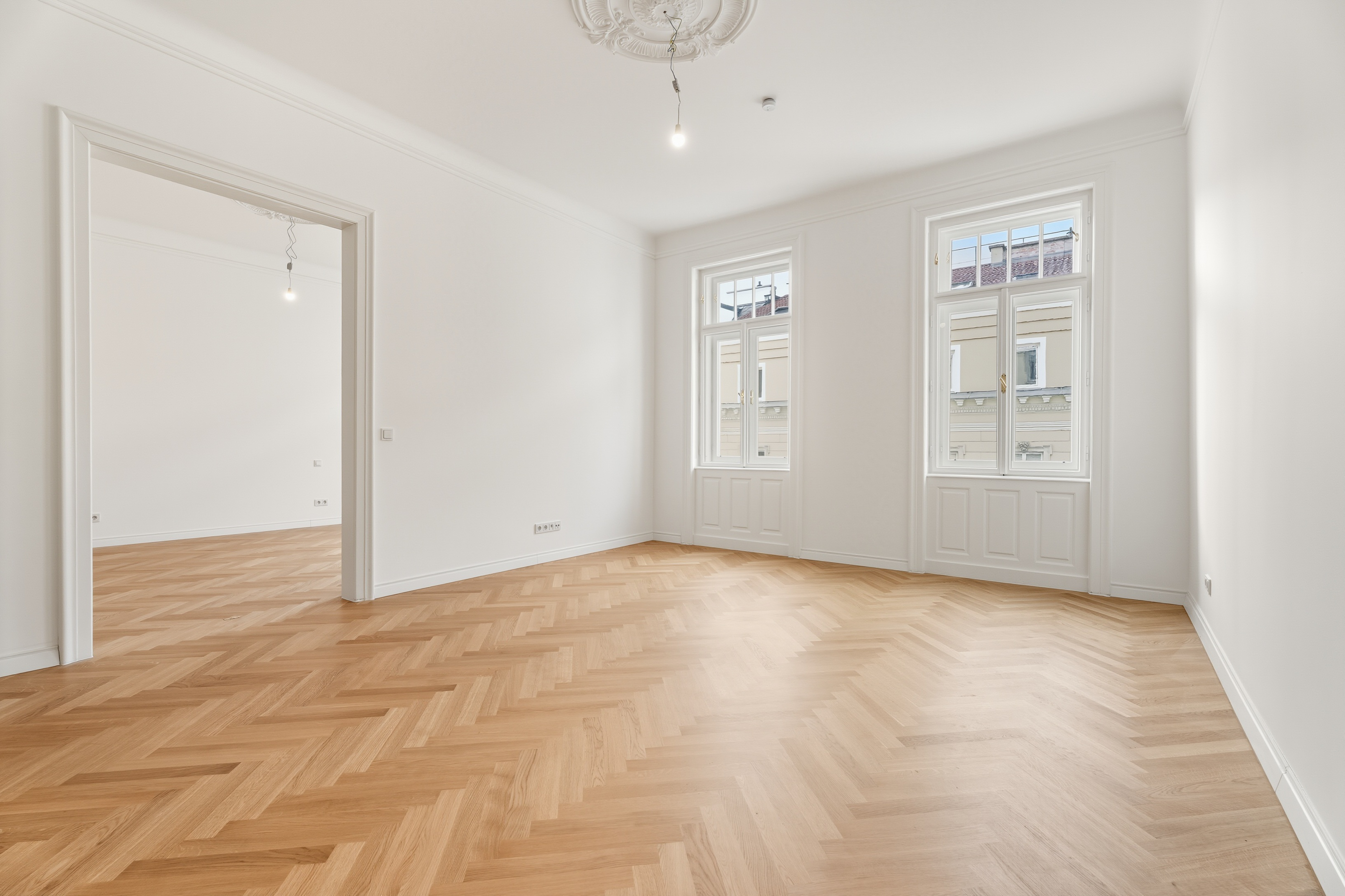 In einem prachtvollen Altbau im Herzen des 3. Wiener Gemeindebezirks wurden 15 klassische Regelschoss-Wohnungen umfassend und mit höchstem Qualitätsanspruch saniert. Ergänzt wurde das historische Gebäude durch einen neu ausgebauten Dachgeschossbereich, in dem fünf exklusive Terrassenwohnungen mit beeindruckenden Ausblicken entstanden sind.