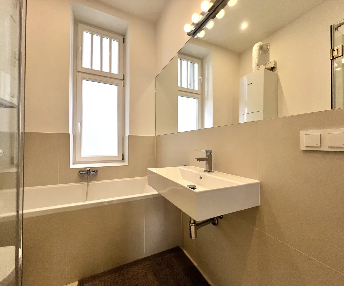 Die Wohnung wurde umfassend und hochwertig generalsaniert und präsentiert sich in bestem Zustand. Sie besteht aus einem großzügigen Wohnzimmer mit Zugang zu einem gemütlichen Balkon, einer separaten Küche mit ausreichend Platz für einen Essbereich, einem großzügigen Badezimmer mit einer Badewanne und einer Dusche, einem ruhigen und hofseitig gelegenen Schlafzimmer sowie einem weiteren vielseitig nutzbaren Zimmer. Alle Räume sind zentral begehbar und bieten eine durchdachte und funktionale Raumaufteilung und somit einen maximalen Wohnkomfort.
