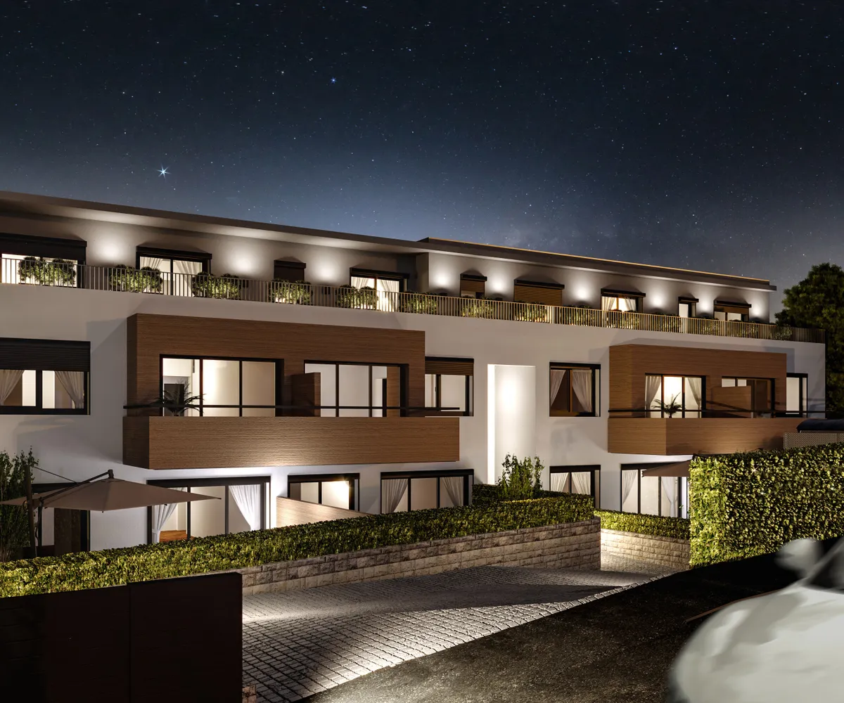 Großzügige, private Freiflächen sowie großflächige Fenster lassen das Tageslicht herein und verleihen ein helles, einladendes Ambiente. Hochwertige Holzböden sowie eine behagliche Fußbodenheizung sorgen für maximalen Wohnkomfort zu jeder Jahreszeit. Die modernen Bäder und die Niedrigenergiebauweise garantieren nicht nur höchsten Wohnstandard, sondern auch eine nachhaltige Lebensweise.