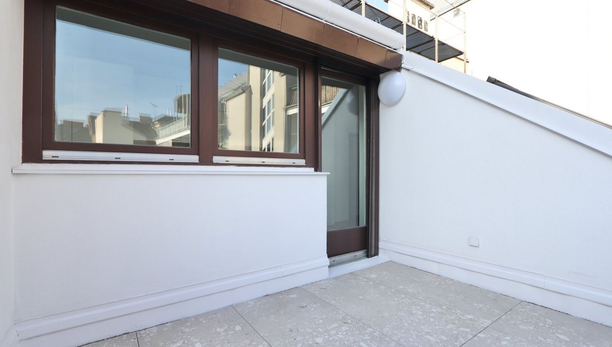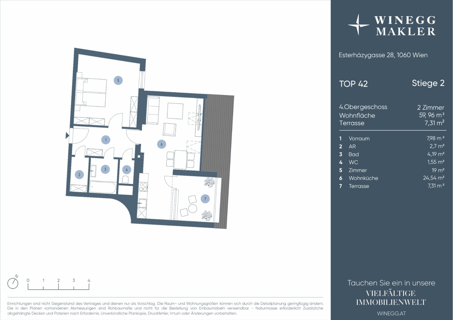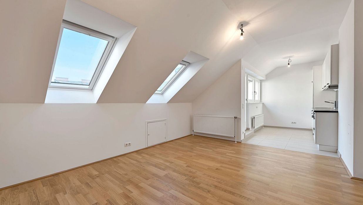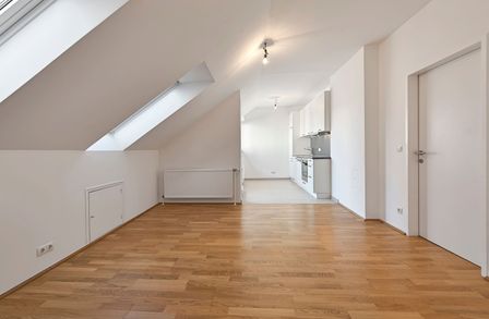 Die 2-Zimmer-Wohnung verfügt über ca. 60 m² Wohnfläche sowie eine Terrasse mit ca. 7,31 m² und befindet sich im 4. Obergeschoss (= Dachgeschoß) .