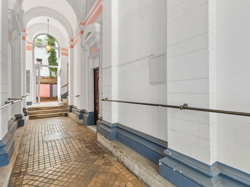 Diese ca. 71,29 m² große sanierungsbedürftige Wohnung inkl. ca. 16,63 m² Loggia befindet sich im erhöhten Erdgeschoss eines gepflegten Neubaus und ist nach Osten ausgerichtet.