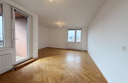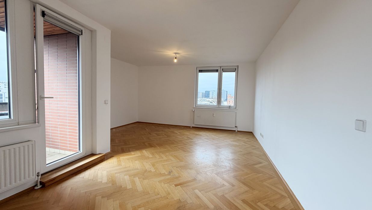 Die Wohnung befindet sich in der 6. Etage und verfügt über einen großzügigen Wohnraum mit vollausgestatteter Küche, zwei getrennt begehbare Schlafzimmer, ein Badezimmer mit Wanne und Waschmaschinenanschluss, eine separate Toilette, sowie einen Vorraum. Die vom Wohnzimmer aus begehbare Loggia rundet diese Angebot perfekt ab.