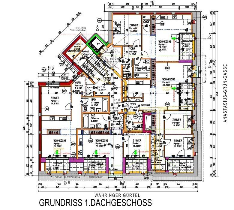 Derzeit verfügt dieses Haus über 22 Wohnung. Ein Lift wird zu einem späteren Zeitpunkt im Zuge eines Dachausbau bis Ende 2027 mit weiteren 7 modernen Wohnungen errichtet. Die Wohnungen selbst erreicht man durch das zentrale und übersichtliche Stiegenhaus. Insgesamt sind die Wohnungen in einem sehr guten gepflegten Zustand und können sofort bewohnt werden. Investitionen sind dafür keine erforderlich.