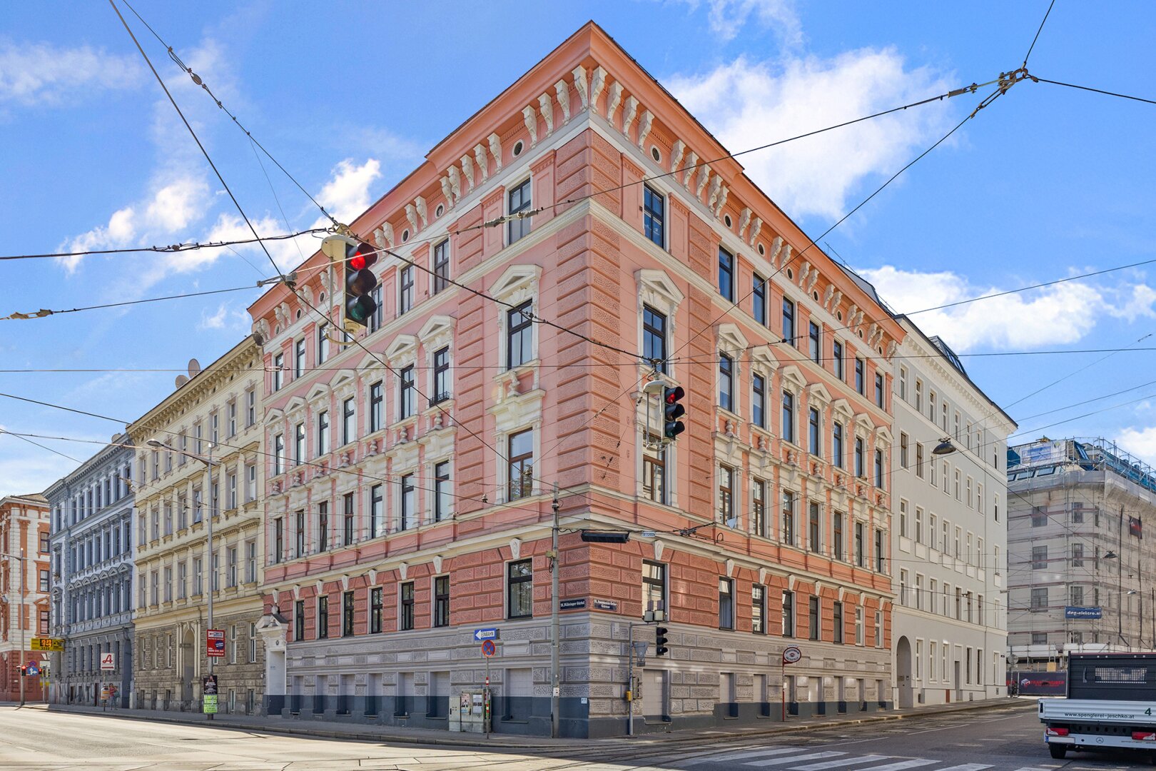 Hier wird eine Stilvolle Wohnung in einem Gründerzeit-Eckhaus zum Verkauf angeboten welches eine hervorragende Substanz besitzt. Der Grundstein wurde 1887 gelegt und das Haus zu dieser Zeit errichtet. Bis heute steht es sehr präsent am Währinger Gürtel 119 Ecke zur Anastasius-Grün-Gasse. Als Nachbar seit damals sind die Wiener Stadtbahnbögen von Bedeutung, welche heute der U6 dienen und beinahe untrennbar ein besonderes Grundzeit-Ensemble im 18. Bezirk bilden. Das Gebäude verfügt derzeit über 2 Kellergeschosse, ein Mezzanin sowie weitere 3 Obergeschosse. Die Raumhöhen sind wie damals üblich zwischen 3,1m und 3,6m und haben dadurch besonderes Flair. Die Fassade ist nicht nur in einem ausgezeichneten Zustand, sondern zeigt in vielen Details eine besondere Bauleistung vergangener Tage, welche behutsam bis in die heutige Zeit getragen wurden.