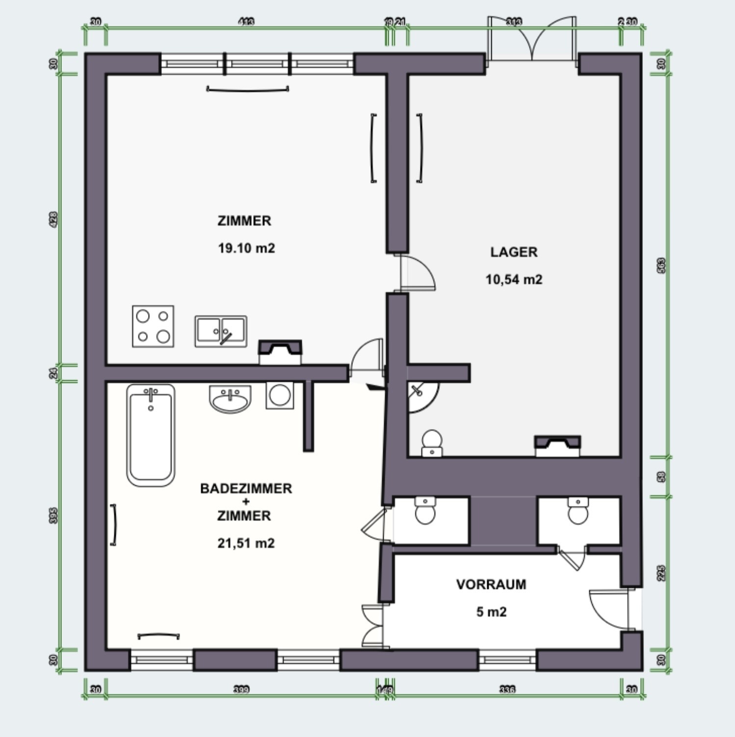 Zur Wohnung gehört eine ca. 10,54 m² große Lagerfläche und optional direktem Zugang von der Straße.