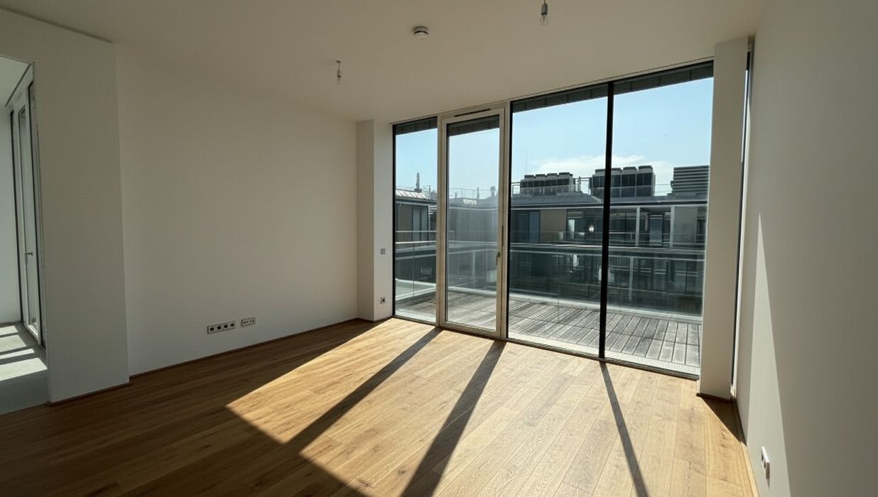 Diese charmante Penthouse bietet auf ca. 56 m² Wohnfläche ein lichtdurchflutetes, durchdachtes Raumkonzept. Die vollverglaste Fassade sorgt für eine helle, freundliche Wohnatmosphäre. Der offene Wohn-Essbereich mit integrierter Küche bildet das Herzstück der Wohnung und wird durch ein separates Schlafzimmer ergänzt, ideal für Singles oder Paare mit Anspruch an Wohnqualität.
