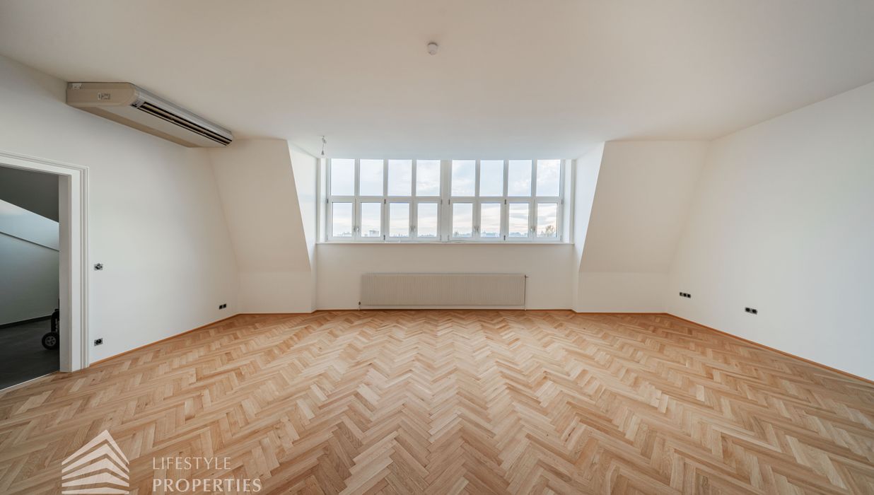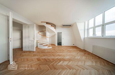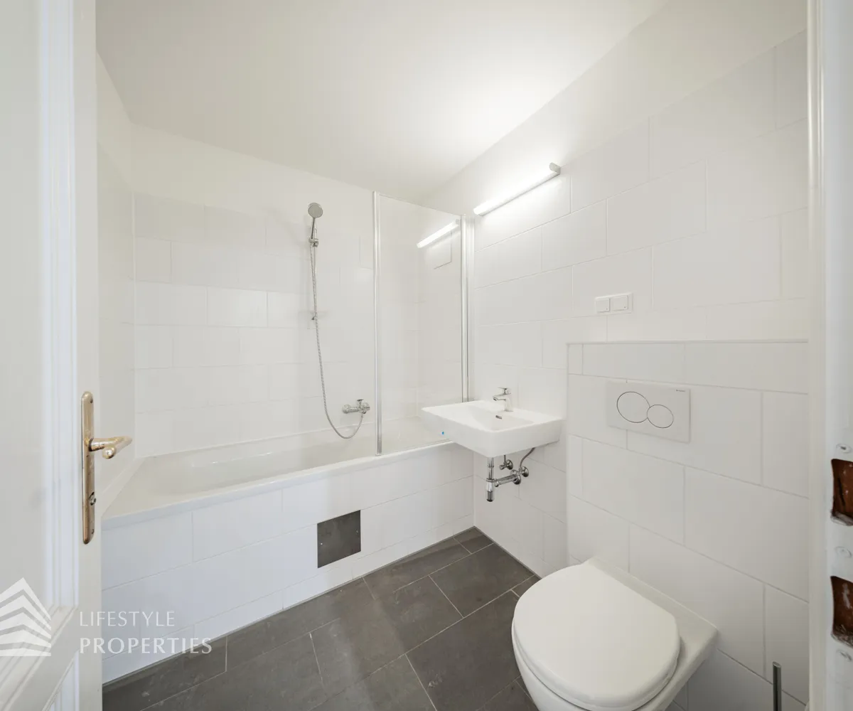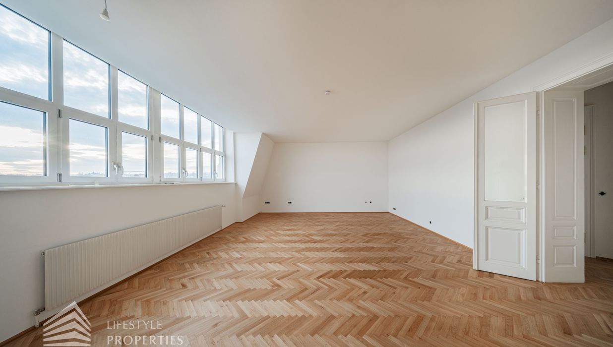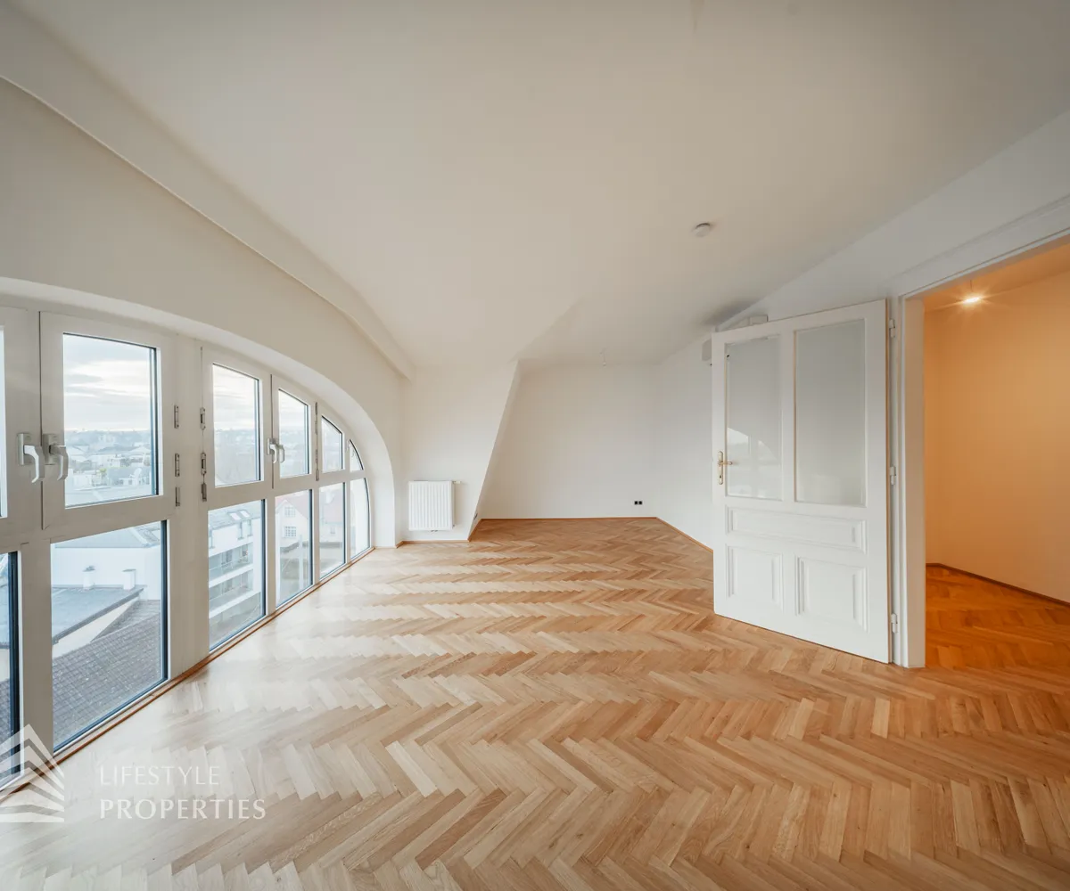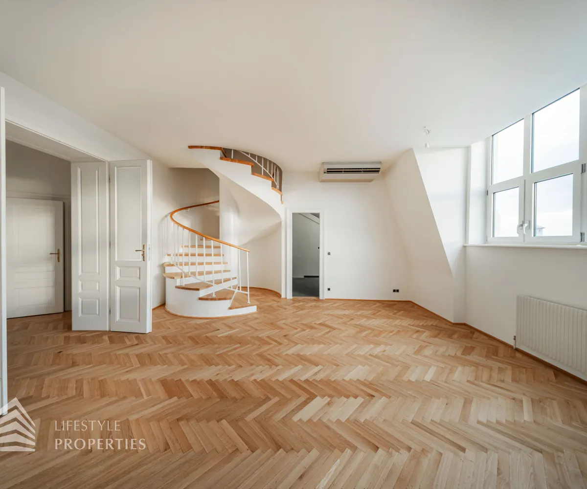 Die Wohnung befindet sich in einem prachtvollen im Jahre 1909 gebauten Altbaus, liegt im 3. Stock und ist bequem über einen Lift erreichbar. Sie verfügt über eine Größe von ca. 112 m² und gliedert sich in zwei Vorräume, einen großen Wohnraum, ein Schlafzimmer, eine Küche, ein Bad und ein separates WC.