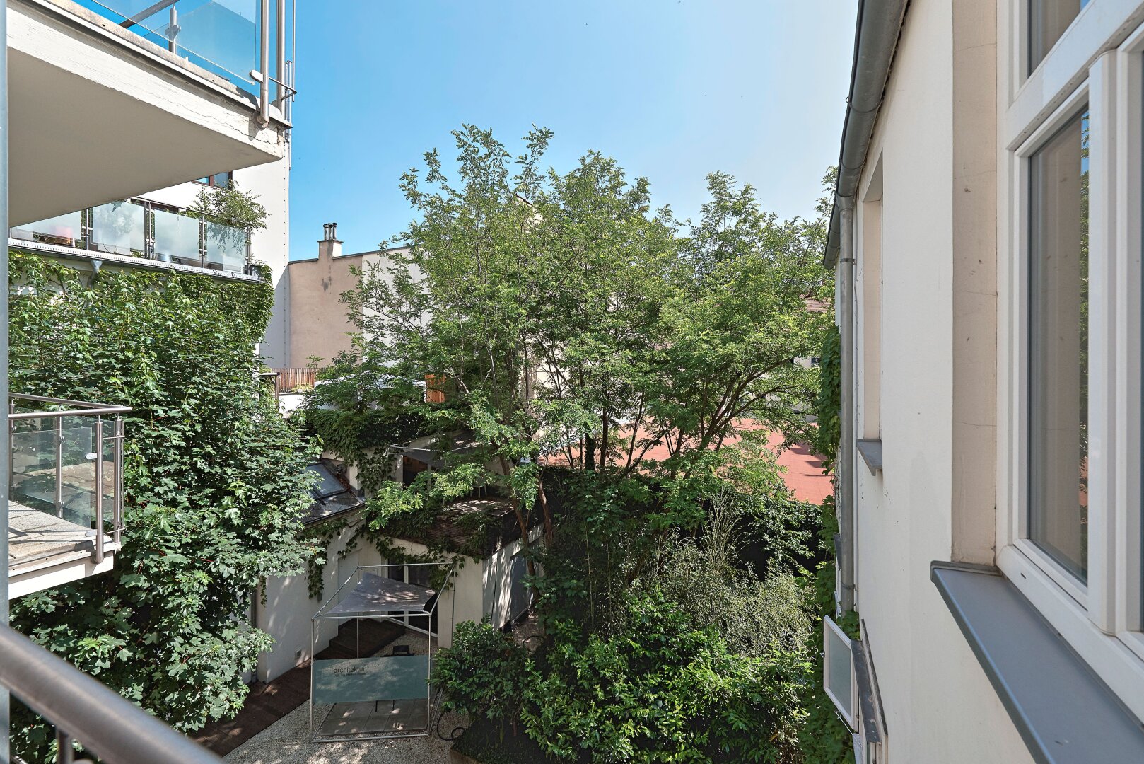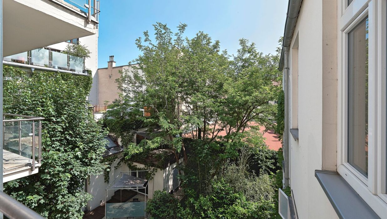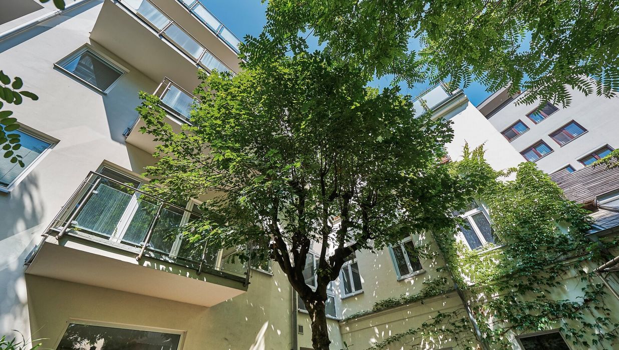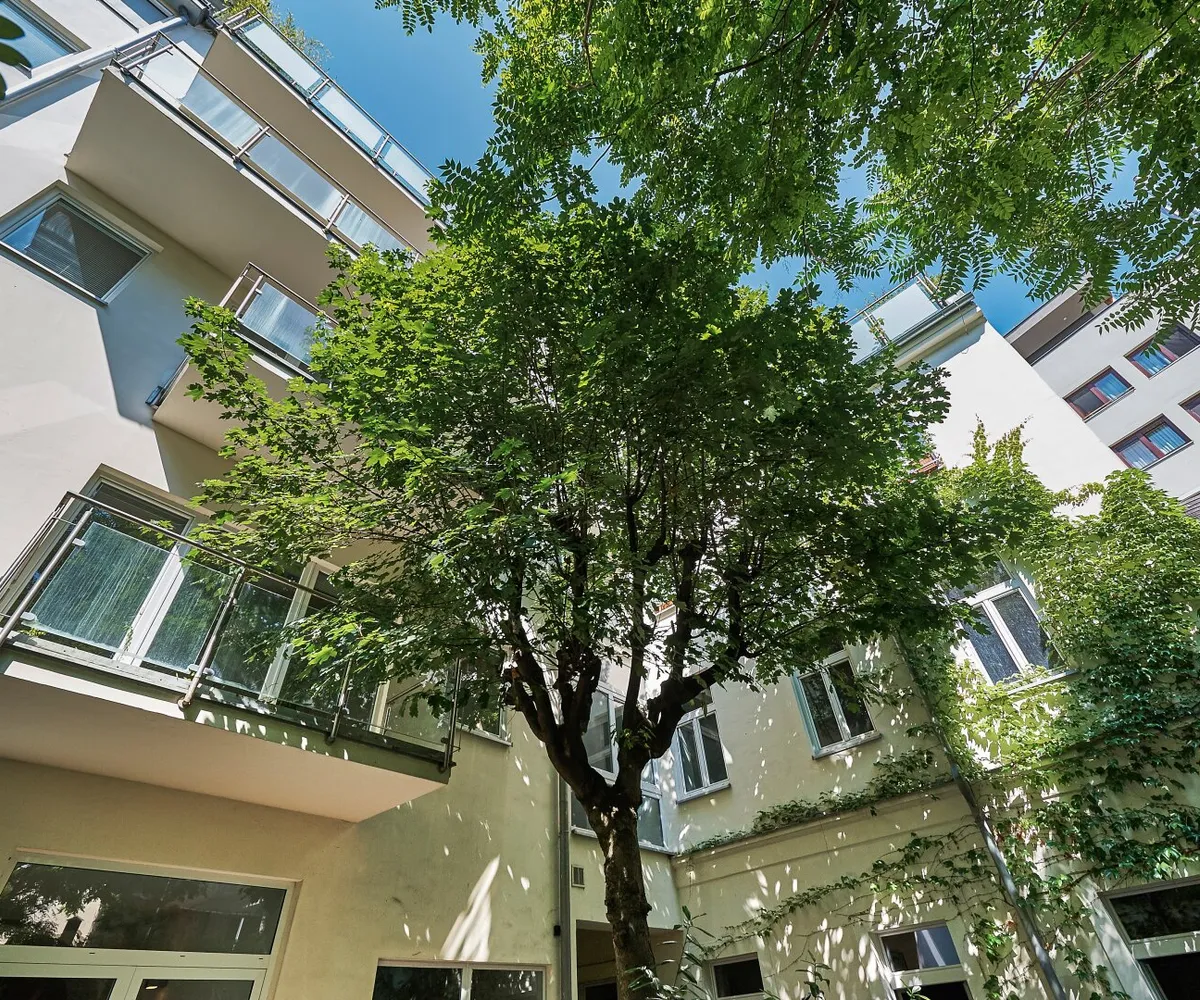 Besonders hervorzuheben ist jedenfalls die absolute Ruhelage inmitten der Stadt mitsamt großzügiger Freifläche in diesem herrlich begrünten Innenhof .