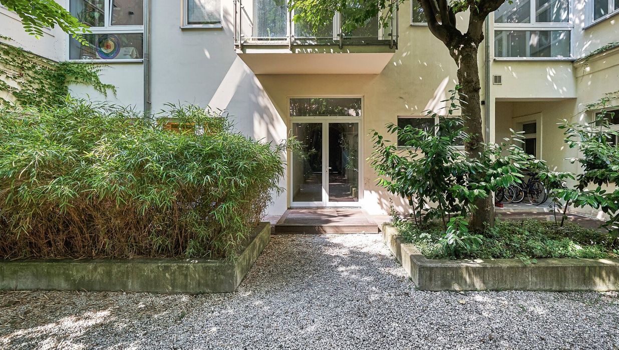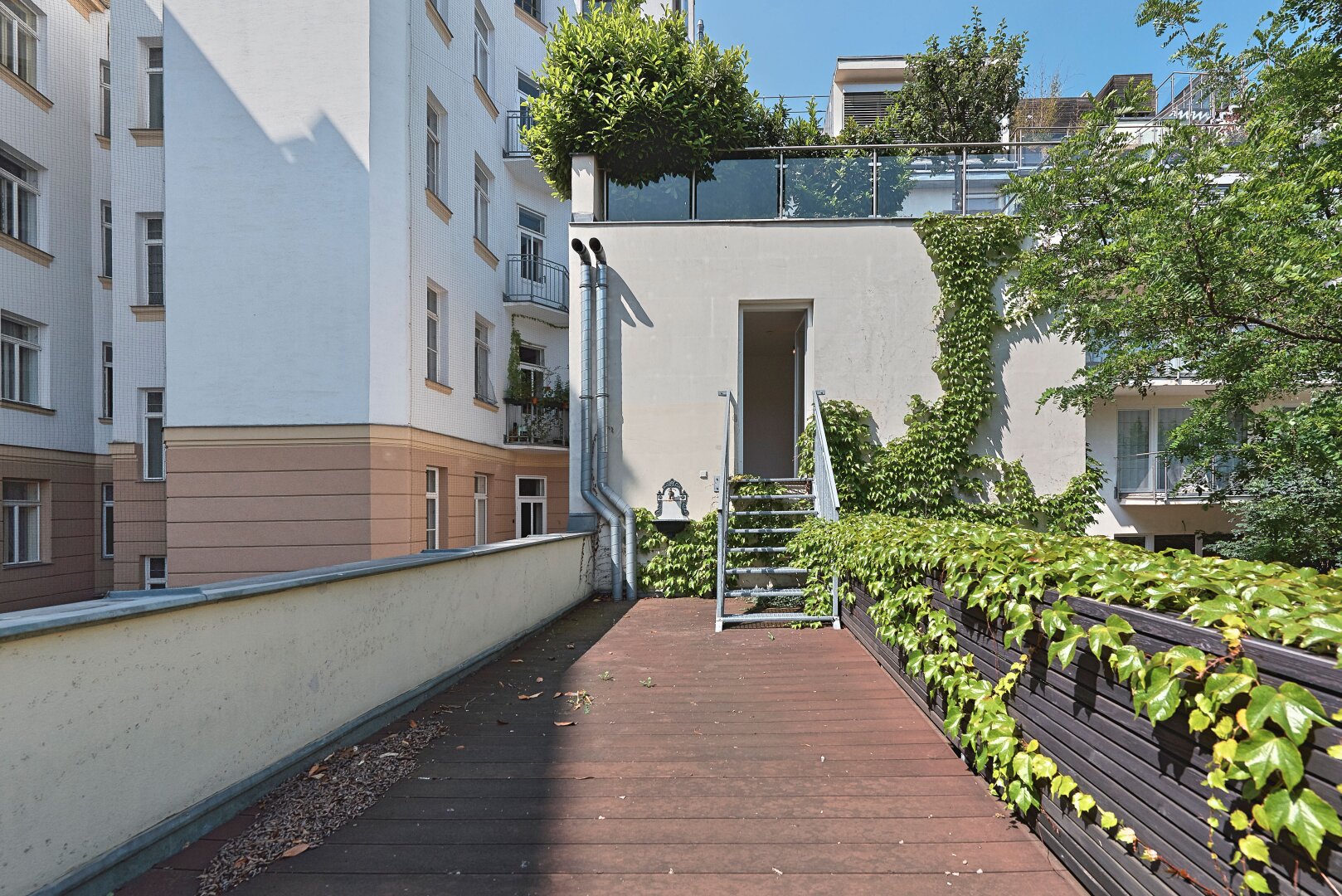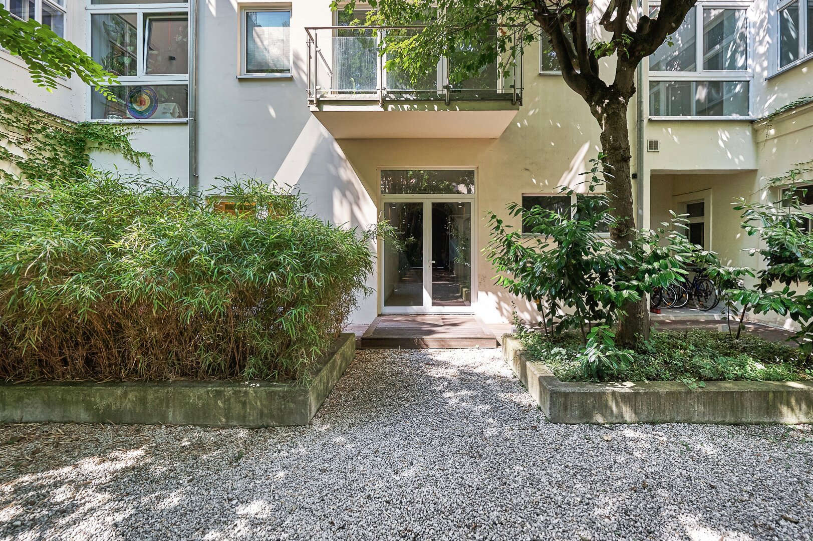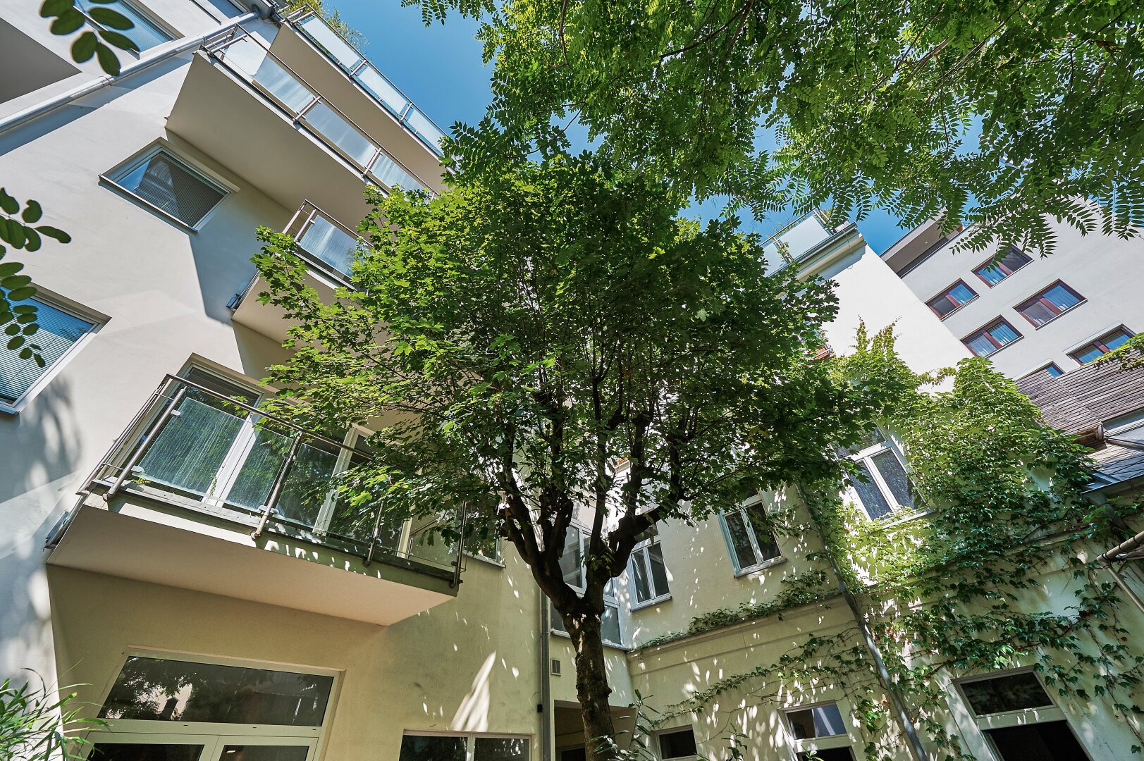 Besonders hervorzuheben ist jedenfalls die absolute Ruhelage inmitten der Stadt mitsamt großzügiger Freifläche in diesem herrlich begrünten Innenhof .