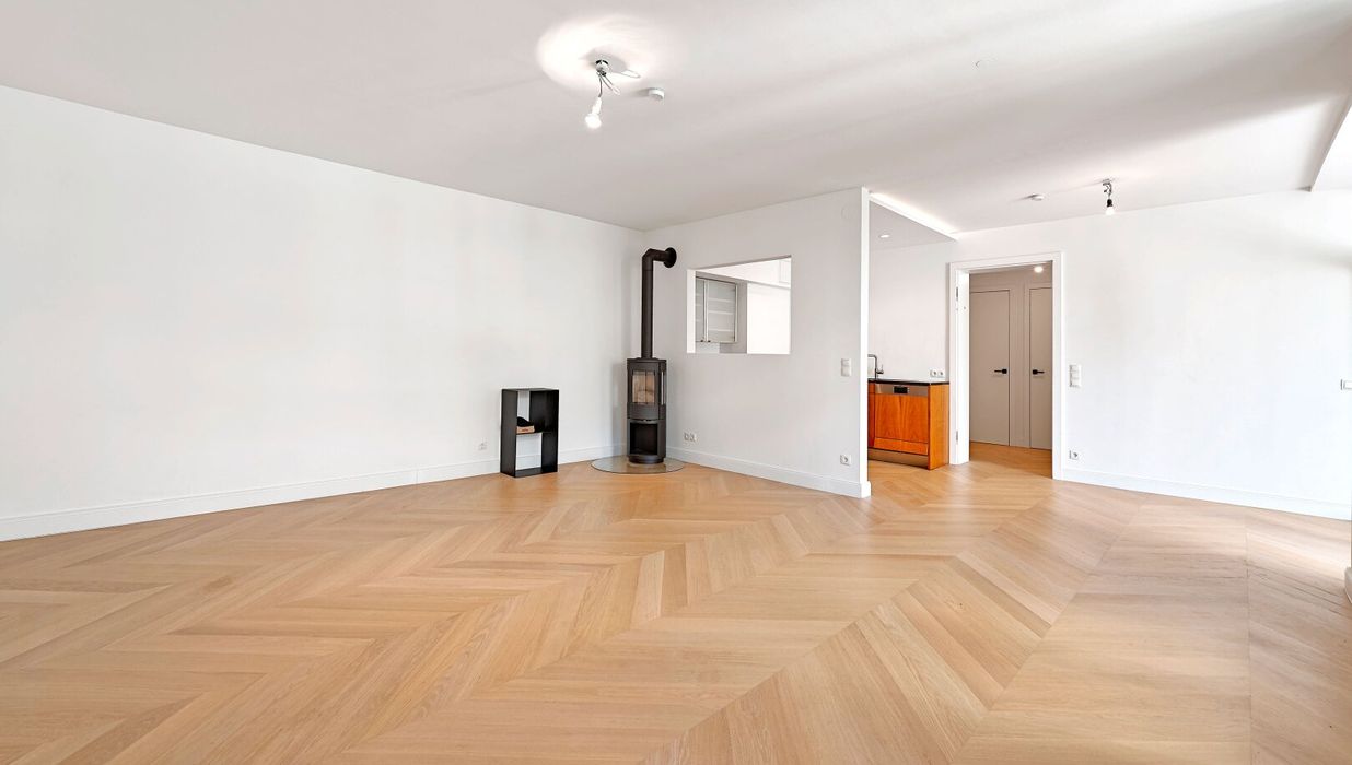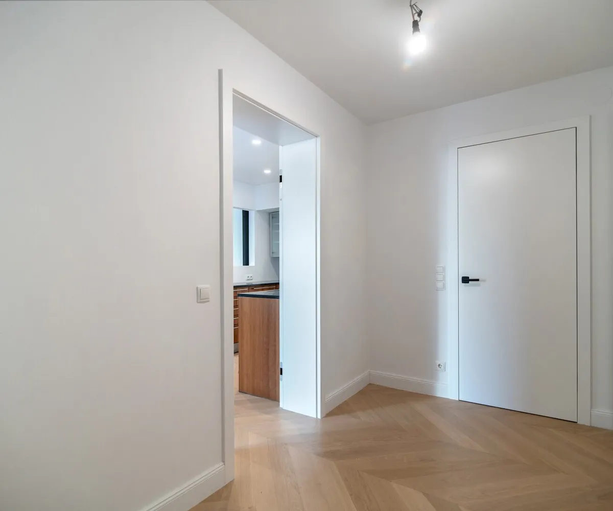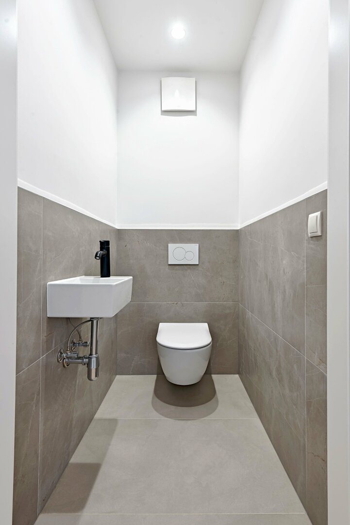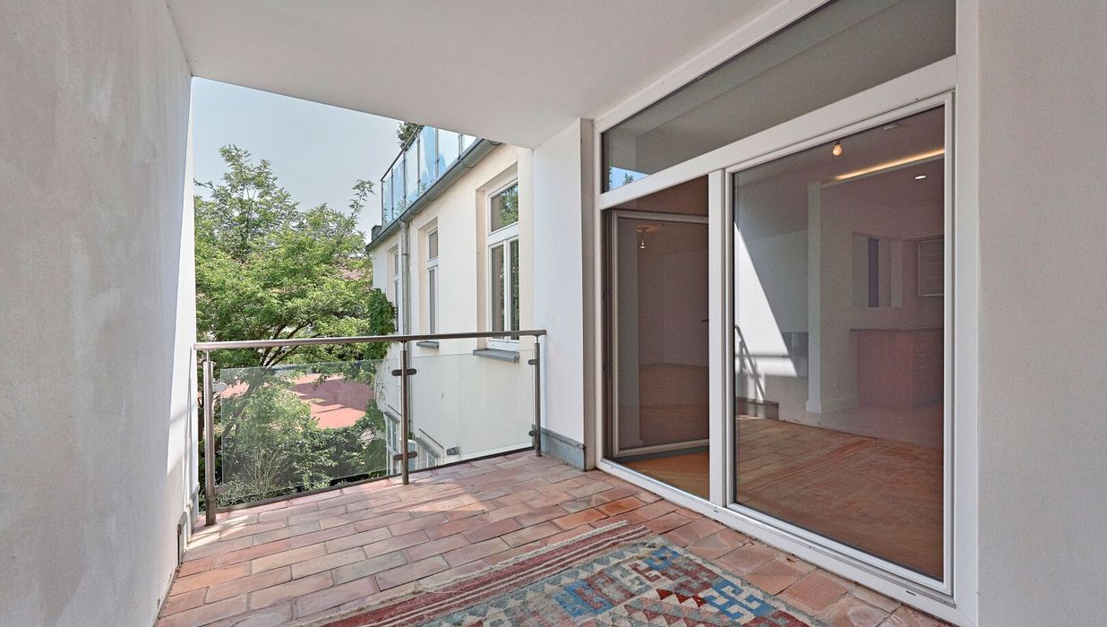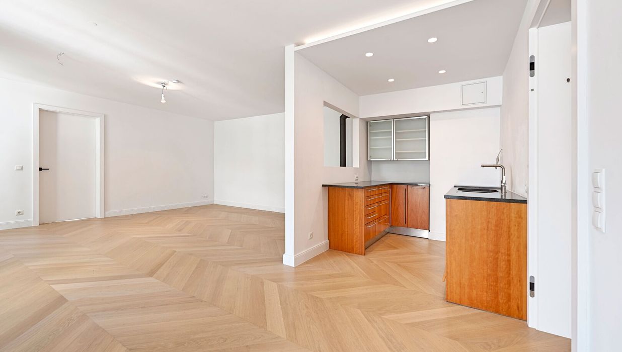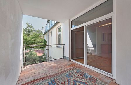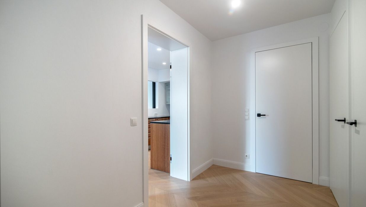 Die Wohnung wurde kürzlich einer umfassenden Generalsanierung unterzogen, wobei größter Wert auf eine gelungene Kombination aus Stil-Altbau-Elementen und Moderne auf höchstem Niveau gelegt wurde. So wurde im gesamten Wohnbereich ein hochwertiger Eichen-Fischgrät-Parkettboden verlegt und die Nassräume mit Feinsteinzug von schlichter Eleganz und stylisch anmutenden Armaturen versehen.