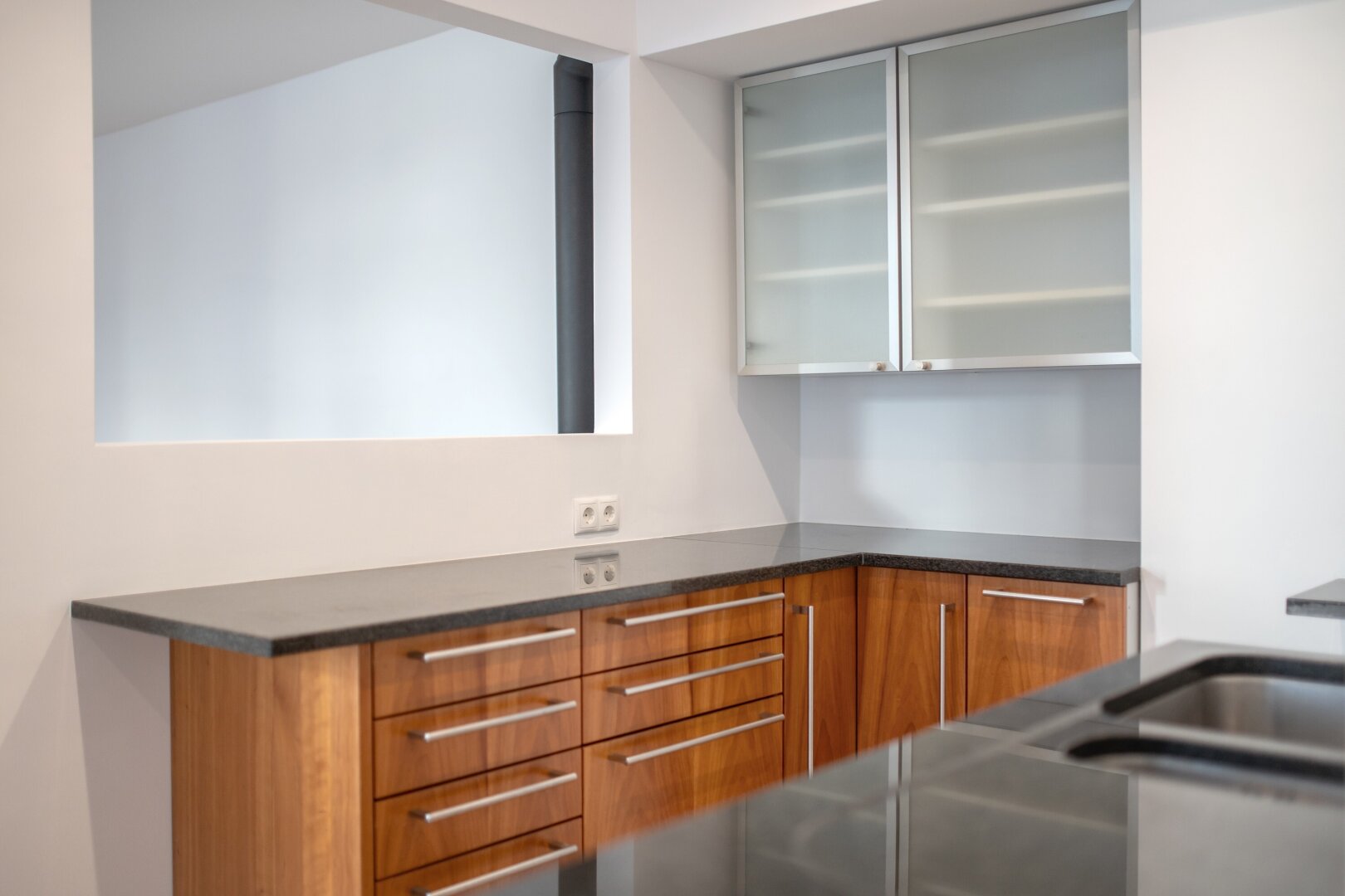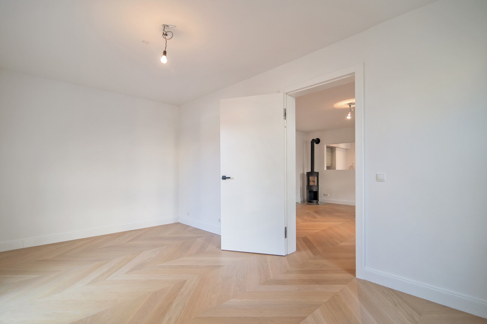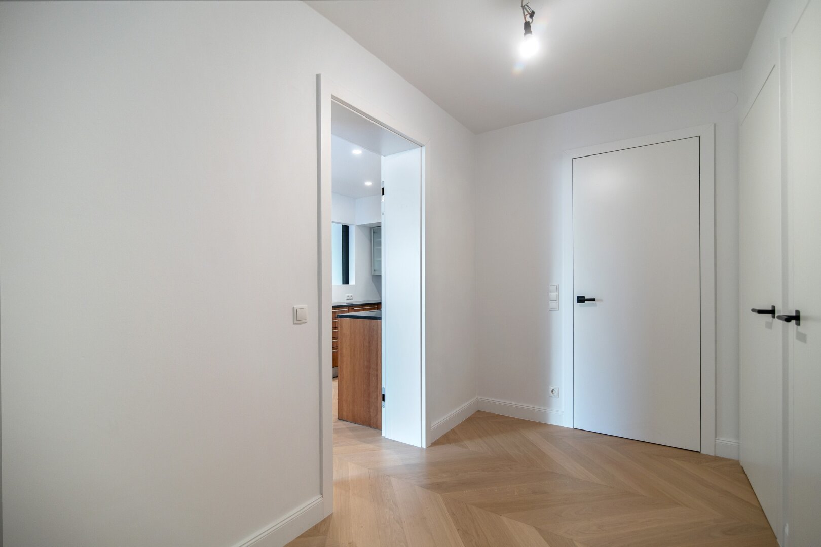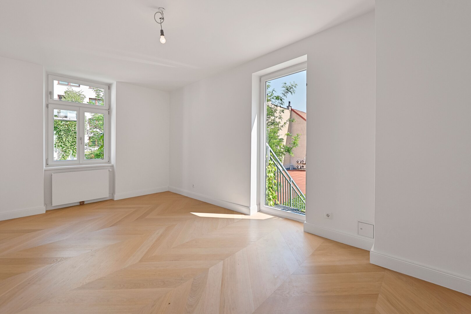 Die Wohnung wurde kürzlich einer umfassenden Generalsanierung unterzogen, wobei größter Wert auf eine gelungene Kombination aus Stil-Altbau-Elementen und Moderne auf höchstem Niveau gelegt wurde. So wurde im gesamten Wohnbereich ein hochwertiger Eichen-Fischgrät-Parkettboden verlegt und die Nassräume mit Feinsteinzug von schlichter Eleganz und stylisch anmutenden Armaturen versehen.
