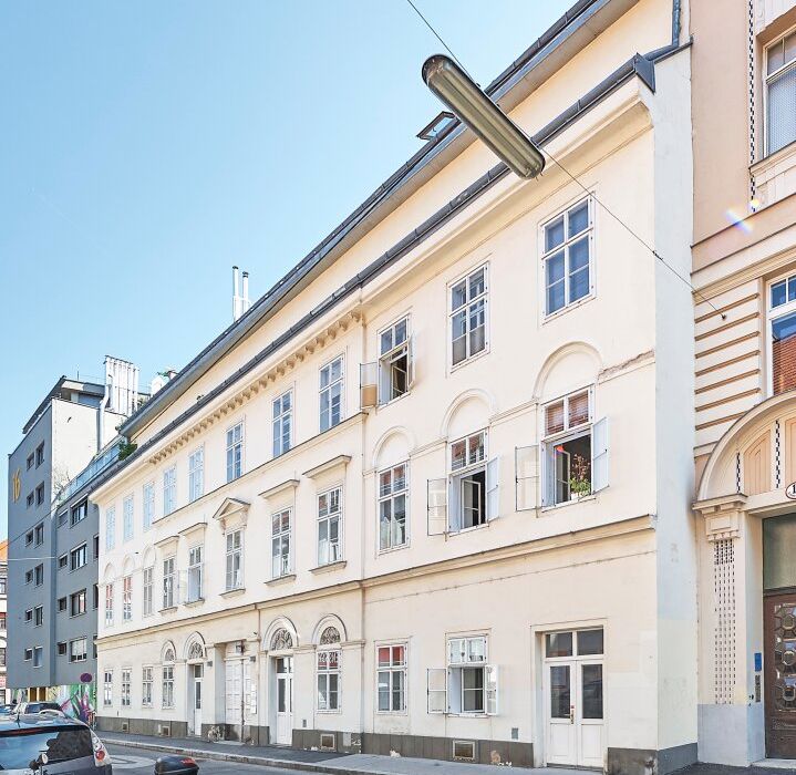 Die gepflegte Jahrhundertwendeliegenschaft befindet sich in der Franzensgasse, einer ruhigen Seitengasse zum Naschmarkt bzw. zur Schönbrunner Straße.